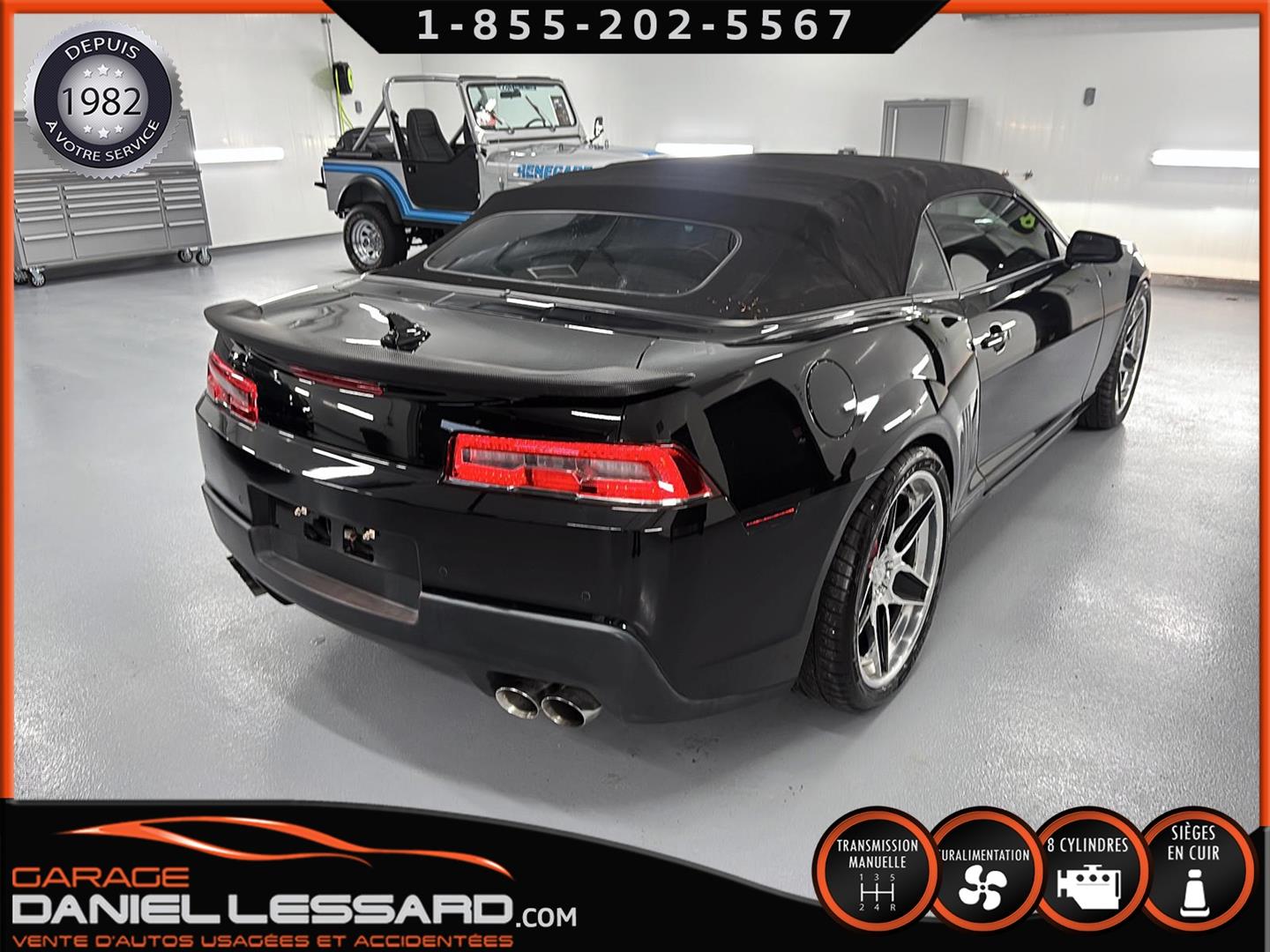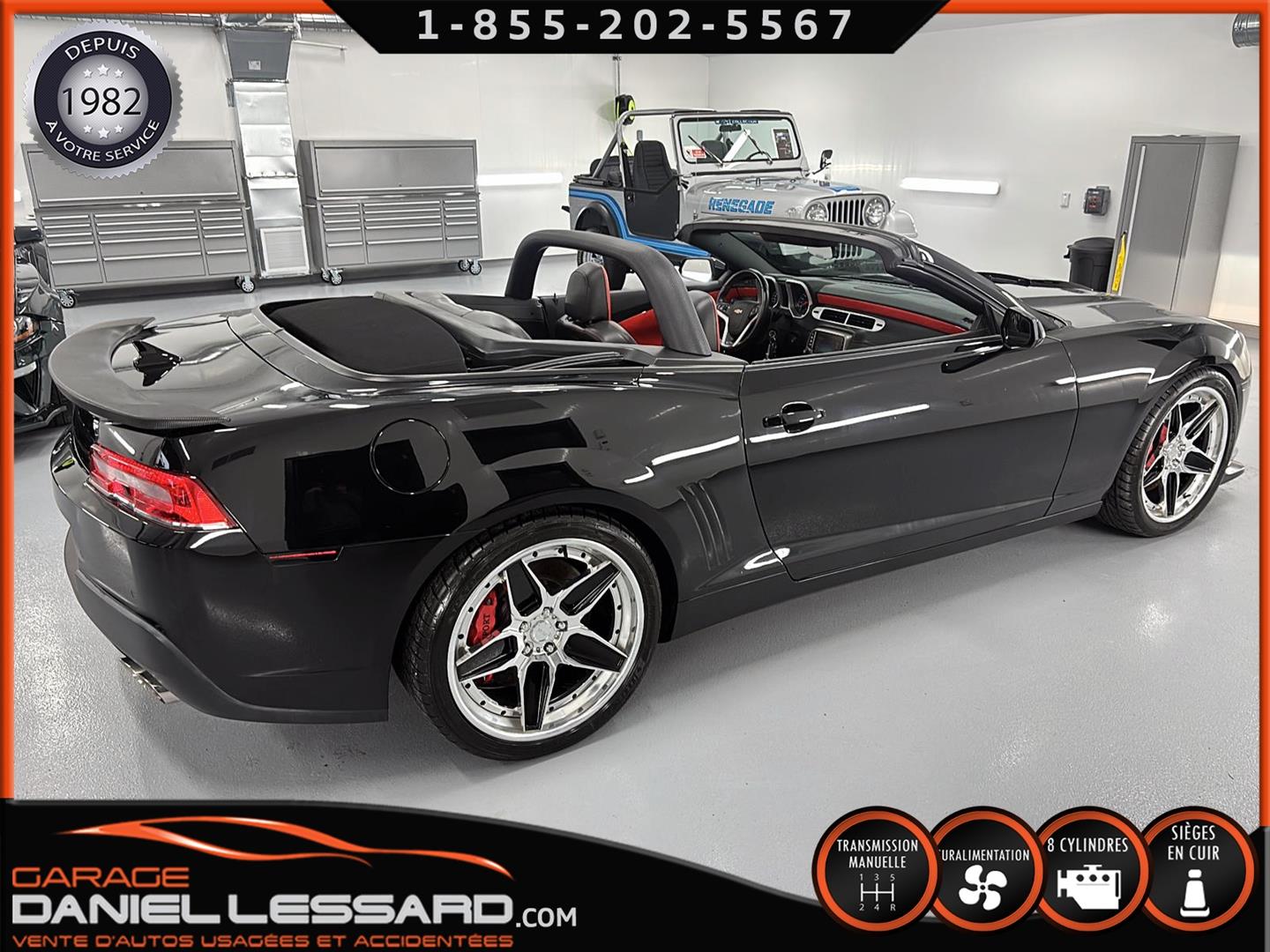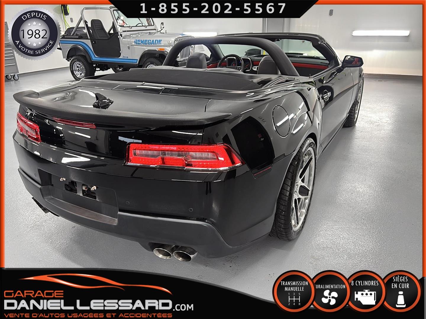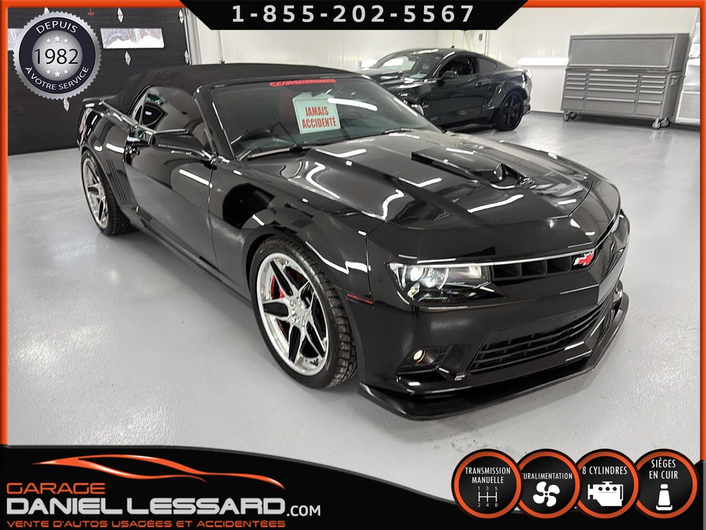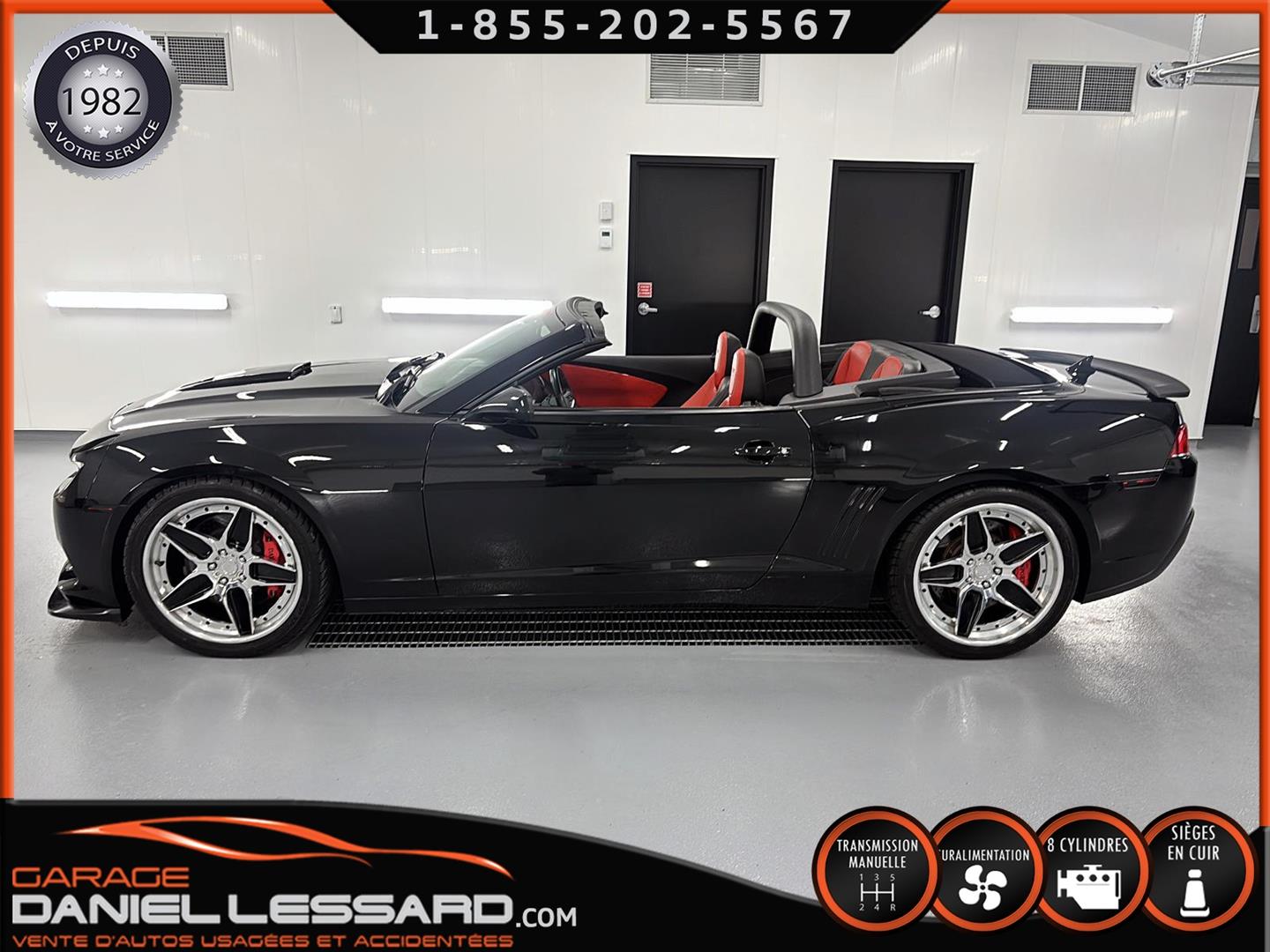 THIS UNIQUE CAMARO RS SS CONVERTIBLE. 35,695 KILOMETERS. SUPERCHARGED 6.2-LITER V8 ENGINE PRODUCING AN INCREDIBLE 780 HORSEPOWER (699 HORSEPOWER TO THE REAR WHEELS). SIX-SPEED MANUAL TRANSMISSION! "RS" AND "SS" OPTIONS! LEATHER INTERIOR. POWER SEATS. HEATED SEATS. TWO-TONE LEATHER INTERIOR OPTION. CONTRAST STITCHING THROUGHOUT THE INTERIOR. POWER SUNROOF, GPS NAVIGATION AND MAPPING SYSTEM. OPTIONAL HEAD-UP DISPLAY. LEATHER-WRAPPED STEERING WHEEL. LOWER CENTER CONSOLE WITH AUXILIARY GAUGE CLUSTER. BOSTON ACOUSTICS PREMIUM AUDIO SYSTEM. BLUETOOTH SYSTEM. THIS INCREDIBLE CAMARO RS SS HAS UNDERGONE A FULLY CUSTOMIZED STAGE 5 UPGRADE BY DAVENPORT MOTORSPORT, HIGH-PERFORMANCE SPECIALISTS IN THE BRAND, WHO FOCUSED ON ACHIEVING INCREDIBLE PERFORMANCE WHILE MAINTAINING RELIABILITY AND COMFORT. WHILE PRESERVING RELIABILITY AND COMFORT (IN PARTICULAR): MAGNUSON SUPERCHARGER TVS2300 HEARTBEAT, 12MM MULTI FIRE IGNITION 12MM, LINGENFELTER GT-9 CAMSHAFT, DUAL VALVE SPRINGS WITH TITANIUM RETAINERS, LPE 63LB INJECTORS, ROTO-FAB COLD AIR INTAKE, ROTO-FAB COLD AIR RADIATOR, ROTO-FAB RADIATOR COVER, BAER EXTREME 6-PISTON 15" TWO-PIECE BRAKE DISCS WITH CUSTOM FINISHED RED-PAINTED CALIBERS, ASV .1 005S TS CS. 21-INCH CUSTOM POLISHED TWO-TONE ALUMINUM WHEELS, DUNLOP S SPORT PERFORMANCE TIRES, DUNLOP S SPORT MAXX PERFORMANCE TIRES, ACS HOOD AIR INTAKE, ACS FRONT LOWER SEPARATOR, DUAL FUEL PUMPS IN TANK WITH FUEL RETURN SYSTEM, RPM BUILT DIFFERENTIAL, FUEL INJECTION SYSTEM. FUEL RETURN SYSTEM, RPM-BUILT DIFFERENTIAL WITH 3:91 RATIOS, WHITE LINE DIFFERENTIAL BEARINGS, PFADT REAR COUPLING BARS, PFADT SWING ARM BEARINGS, PFADT UNDERCHASS BEARINGS, CDC SPORT BAR WITH CARBON FIBER COATING, AIR DEFLECTOR AND MORE...THE UPGRADES ALONE TOTAL OVER $70,000++ NOT INCLUDING THIS SPECIAL CAMARO RS SS CONVERTIBLE. OTHER FEATURES INCLUDE A SHORT-THROW SHIFTER, REAR SPOILER WITH CARBON FIBER COATING, LOWERED SUSPENSION, ZL1 APPEARANCE KIT, TINTED WINDOWS, LED EXTERIOR LIGHTING, ETC. THE TINTED WINDOWS, LED EXTERIOR LIGHTING, BLACK EXTERIOR TRIM FROM THE BODY KIT, AND MORE ARE ALSO INCLUDED. A REAR TRUNK LINER, BOOKS, MANUALS, AND TWO MASTER KEYS ARE ALSO INCLUDED. ORIGINAL PAINT. LOVINGLY CARED FOR BY A LONG-TIME OWNER FOR EIGHT YEARS. 1 OF 1... THIS INCREDIBLY BUILT, INCREDIBLY BUILT, SIX-SPEED MANUAL RS SS CUSTOM CONVERTIBLE BY PERFORMANCE SPECIALIST DAVENPORT MOTORSPORTS REQUIRES OVER $125,000 IN TOTAL INVESTMENT. THE COLOR OF CHOICE... BLACK ON BLACK, WITH LEATHER INTERIOR AND INFERNO ORANGE STITCHING. INCREDIBLE SOUND... EVEN BETTER DRIVE. THE BODY PANELS ARE LASER STRAIGHT, THE TRIM AND WINDOWS ARE IN PERFECT CONDITION, AND THE LEATHER AND INTERIOR ARE NEARLY NEW. A UNIQUE CAR, AND A VERY SPECIAL OPPORTUNITY TO ACQUIRE A TRUE FOUR-SEATER CONVERTIBLE FOR A FRACTION OF THE COST OF THE VEHICLE AND BUILDING. CANADA'S BEST-SELLING CAR