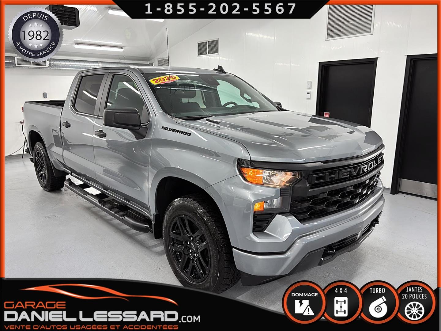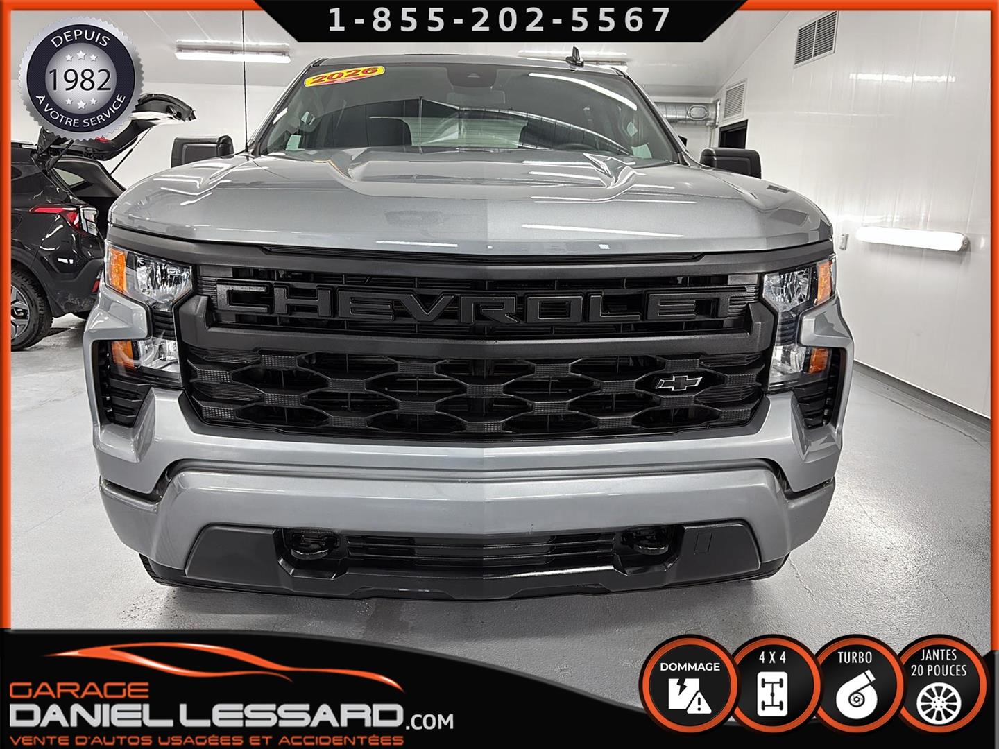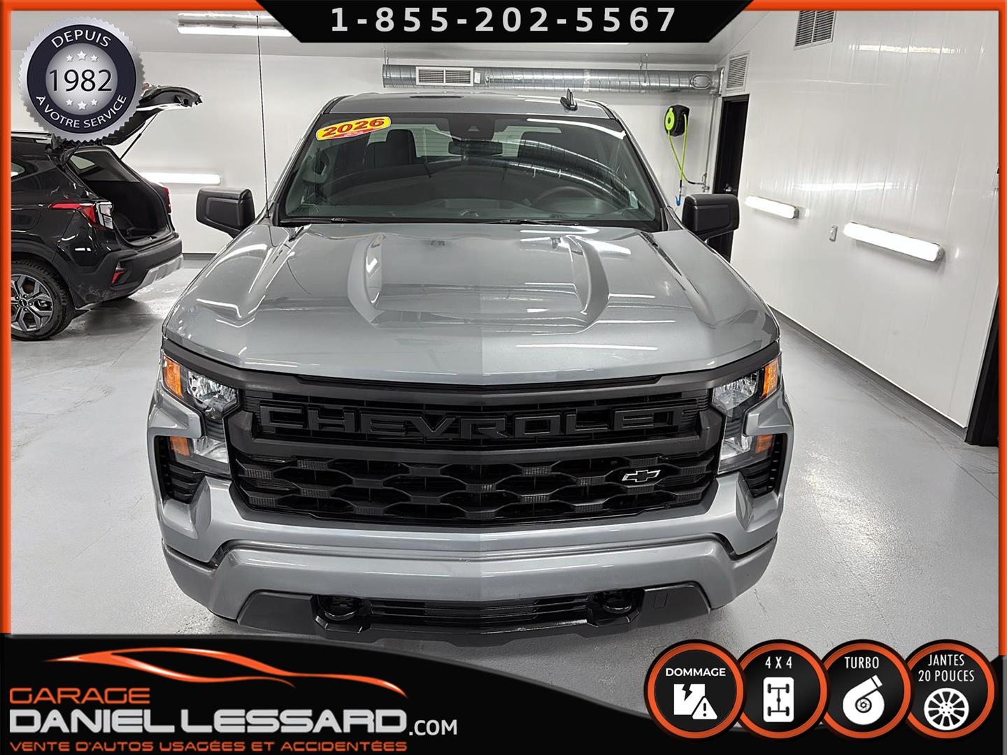 CHEVROLET SILVERADO 1500 2026 CUSTOM CREW CAB AVEC BOITE DE 6.6 AVEC FOND EN ENDUIT HO OUI AVEC SEULEMENT 773 KM AU COMPTEUR, 4X4, TRANSMISSION AUTOMATIQUE 10 VITESSES, CREWCAB AVEC BOITE DE 6.6 PIEDS, MOTEUR 4 CYLINDRE TURBO MAX 2.7 LITRES AVEC RATIO DE 3.42 A BLOCAGE, GROUPE ÉLECTRIQUE, SIÈGE ÉLECTRIQUE POUR LE CONDUCTEUR, AFFICHAGE SUR ÉCRAN DE BORD TACTILE DE 7 POUCES, CAMÉRA DE RECUL, APPLECARPLAY-ANDROIDAUTO, SYSTÈME ALLERTE-COLLISION, SYSTÈME MAINTIENT DE VOIES, AIR CLIMATISÉ 1 ZONE, BRAKE ÉLECTRIQUE MONTÉ D'ORIGINE AU TABLEAU DE BORD, HITCH AVEC ENTRÉ 4 BRINS ET 7 BRINS, MODE TOW HAUL, GARDE-BOUES AVANT, CHAUSSÉ SUR PNEUS HIVER GOODYEAR WINTERCOMMAND 275 / 60 / 20 , SUR MAGS 20 POUCES NOIR LUSTRÉ, TAPIS 4 SAISONS INCLUS, ENTRÉ SANS CLEF KEYLESS, NOUS AVONS UNE CLÉ EN MAIN