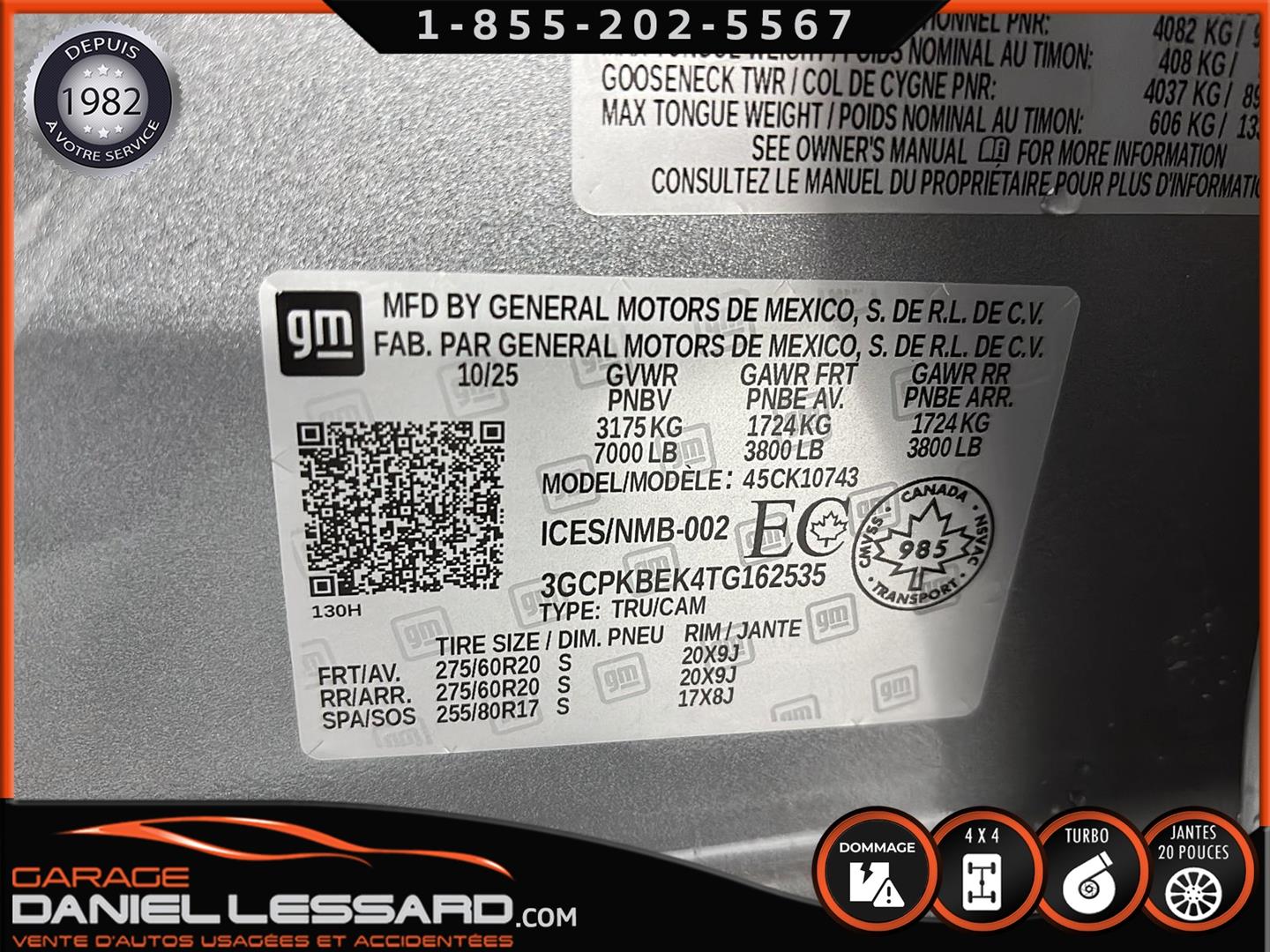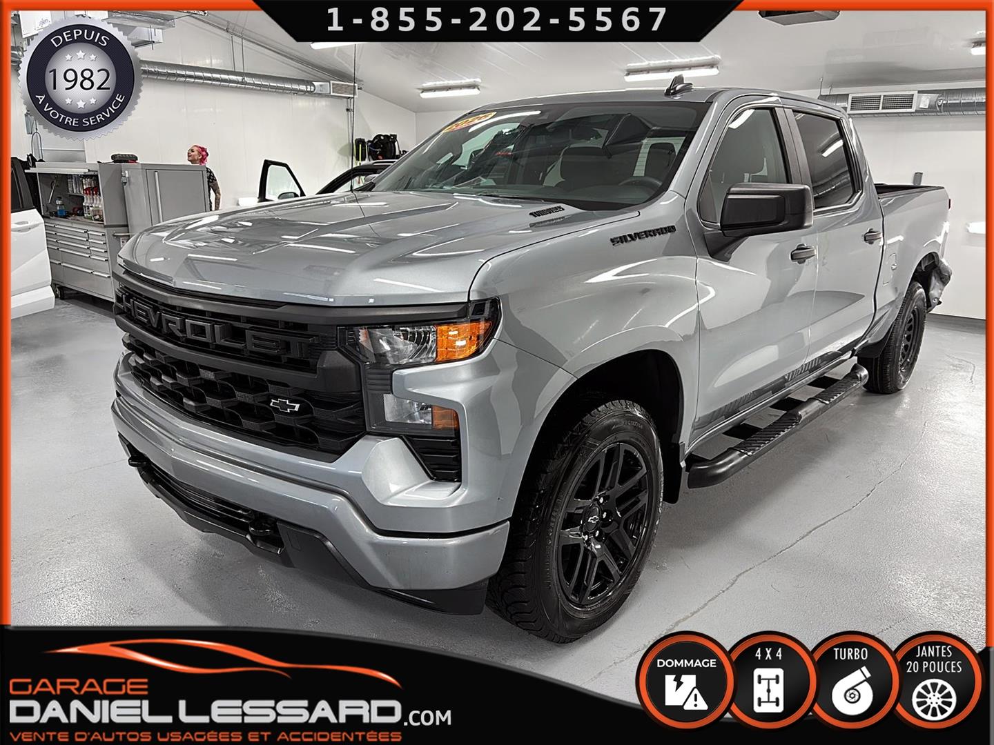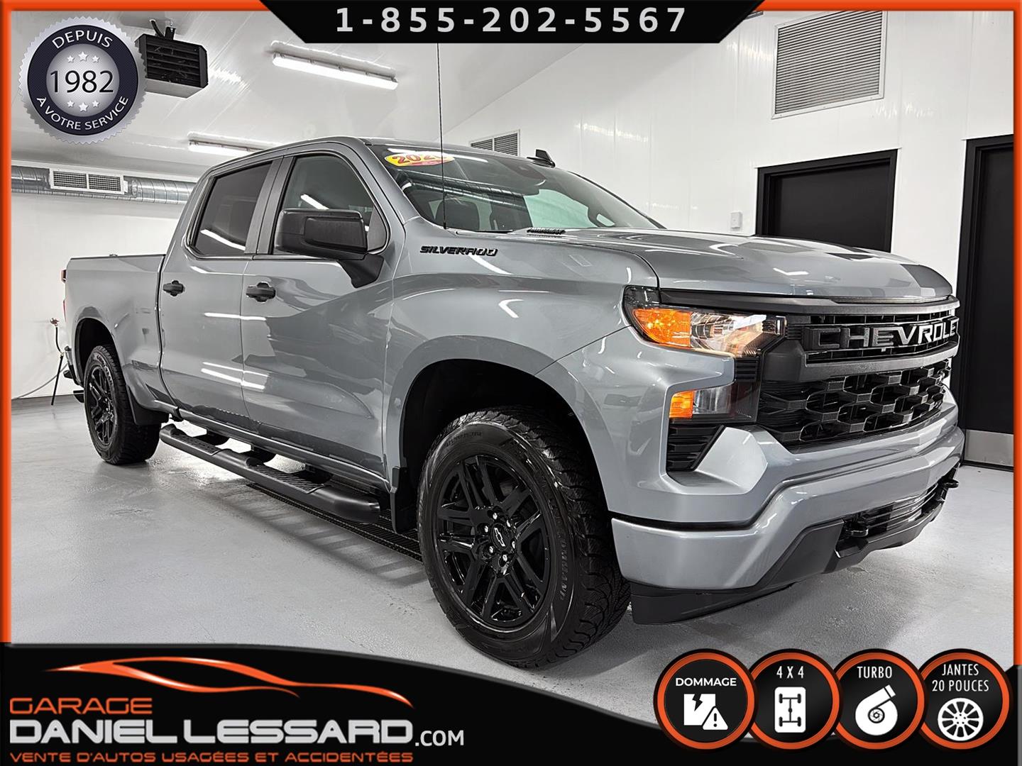 CHEVROLET SILVERADO 1500 2026 CUSTOM CREW CAB AVEC BOITE DE 6.6 AVEC FOND EN ENDUIT HO OUI AVEC SEULEMENT 773 KM AU COMPTEUR, 4X4, TRANSMISSION AUTOMATIQUE 10 VITESSES, CREWCAB AVEC BOITE DE 6.6 PIEDS, MOTEUR 4 CYLINDRE TURBO MAX 2.7 LITRES AVEC RATIO DE 3.42 A BLOCAGE, GROUPE ÉLECTRIQUE, SIÈGE ÉLECTRIQUE POUR LE CONDUCTEUR, AFFICHAGE SUR ÉCRAN DE BORD TACTILE DE 7 POUCES, CAMÉRA DE RECUL, APPLECARPLAY-ANDROIDAUTO, SYSTÈME ALLERTE-COLLISION, SYSTÈME MAINTIENT DE VOIES, AIR CLIMATISÉ 1 ZONE, BRAKE ÉLECTRIQUE MONTÉ D'ORIGINE AU TABLEAU DE BORD, HITCH AVEC ENTRÉ 4 BRINS ET 7 BRINS, MODE TOW HAUL, GARDE-BOUES AVANT, CHAUSSÉ SUR PNEUS HIVER GOODYEAR WINTERCOMMAND 275 / 60 / 20 , SUR MAGS 20 POUCES NOIR LUSTRÉ, TAPIS 4 SAISONS INCLUS, ENTRÉ SANS CLEF KEYLESS, NOUS AVONS UNE CLÉ EN MAIN