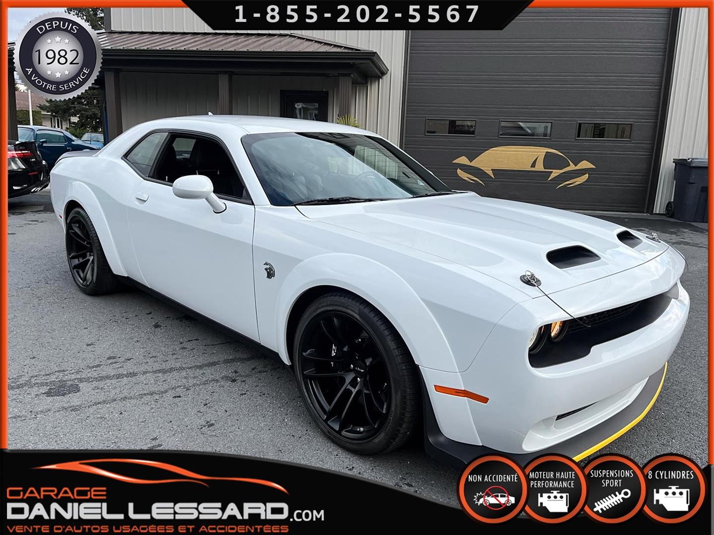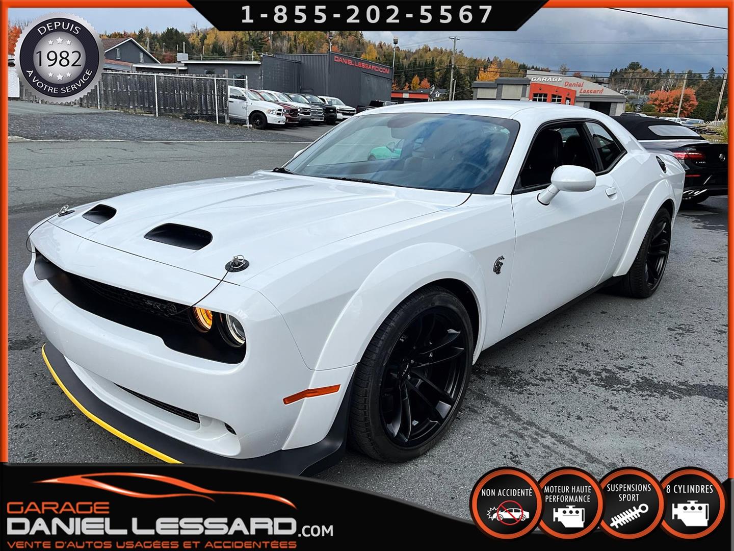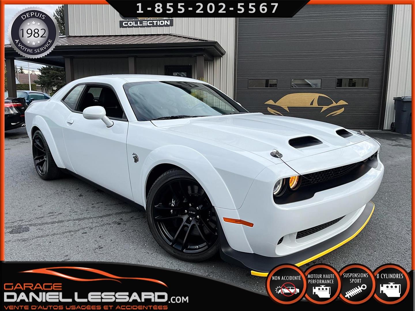 LAST CALL EDITION!!! 2023 DODGE CHALLENGER SRT HELLCAT REDEYE JAILBREAK ONLY 00,018 KM ON THE ODOMETER WITH SEVERAL ORIGINAL ADDITIONS SUCH AS THE ECLAIR 27D PACKAGE (VALUED AT $27,295!!!) INCLUDING THE WIDEBODY PACKAGE, WIDE-LOADED COMPETITION SUSPENSION, SRT JAILBREAK DASHBOARD PACKAGE, RED EYE EMBLEM AND MORE, ALSO THE LAGUNA LEATHER PACKAGE WITH HELLCAT EMBLEM IN THE SEATS, ALSO INCLUDES VENTILATED SEATS AND THE FULLY POWER GROUP, THE HIGH-END AUDIO PACKAGE WITH HARMAN/KARDON PREMIUM SOUND SYSTEM WITH 18 SPEAKERS PLUS THE AMPLIFIER, THE UCONNECT TOUCHSCREEN DASHBOARD DISPLAY WITH AN 8.4-INCH SCREEN AND FACTORY-INSTALLED GPS NAVIGATION, AND MUCH MORE—THE EQUIPMENT LIST IS ENDLESS. BASICALLY, THE FACTORY ADDITIONS REPRESENT OVER $38,000 + CAD TAX!!! LAGUNA LEATHER PACKAGE WITH HELLCAT EMBLEM, ECLAIR 27D PACKAGE, DRIVER CONVENIENCE PACKAGE, HARMAN KARDON AUDIO PACKAGE, 3.09 REAR AXLE RATIO, ADDITIONAL BLACK HOOD PINS, GLOSS BLACK SRT SPORT SPOILER, 8.4-INCH U CONNECT SYSTEM, 20-INCH CHARCOAL BLACK ALUMINUM WHEELS AND ORIGINAL PAINTED BLACK BRAKE CALIPERS, HIGH-END SPORTS VEHICLE EVEN MORE BEAUTIFUL IN PERSON, REGISTRATION DATED NOVEMBER 20, 2023, FITTED WITH 20-INCH WHEELS, CONTACT US FOR MORE INFO, VEHICLE IN AS-NEW CONDITION, NEVER BEEN IN AN ACCIDENT ONE OWNER, CARFAX INCLUDED, REGISTRATION DATED NOVEMBER 30, 2023, POWERFUL AND LEGENDARY 6.2-LITER SUPERCHARGED V-8 ENGINE DEVELOPING A WHOLE 807 HP! WOW, NOT FOR THE MILD! 8-SPEED AUTOMATIC TRANSMISSION WITH ROCK-UP PAD SHIFT, VENTILATED FRONT SEATS, FACTORY GPS NAVIGATION, MULTIPLE DRIVING MODES FOR A RACE OPTION WITH LAUNCH CONTROL, LINE LOCK, COOLER, AND MORE. IN SHORT, HOURS AND HOURS OF FUN! WE ACCEPT TRADE-INS. ASK US ABOUT OUR FINANCING OPTIONS!