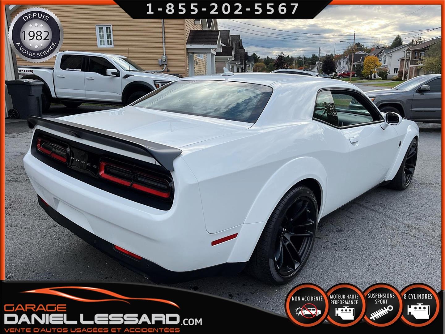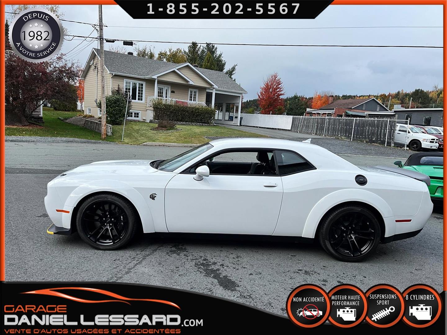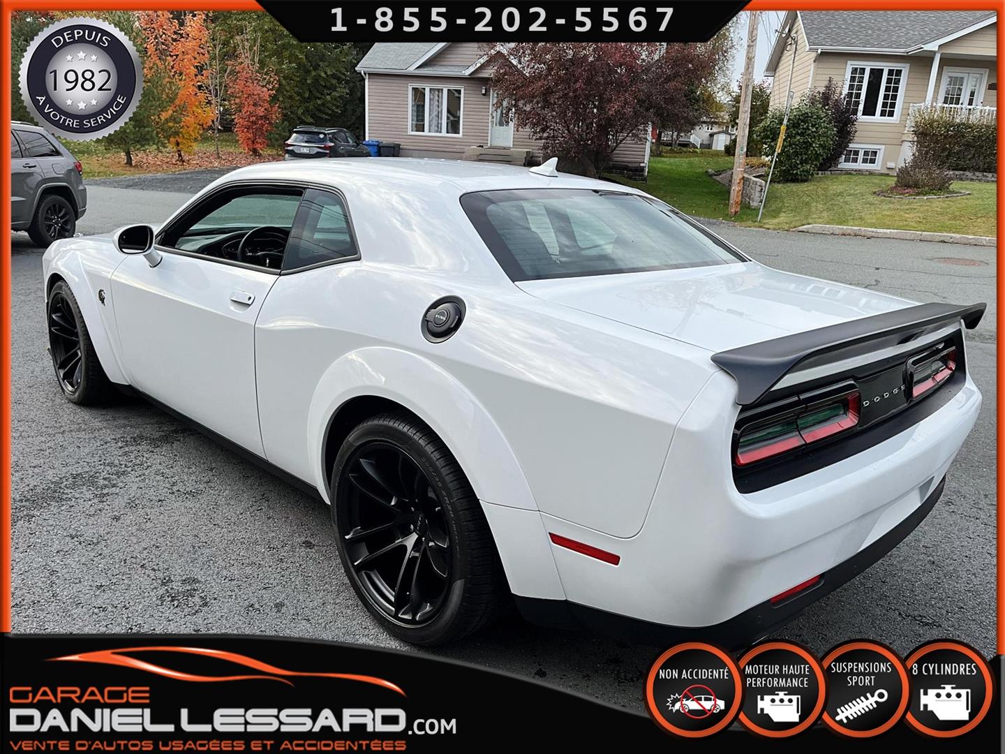 LAST CALL EDITION!!! 2023 DODGE CHALLENGER SRT HELLCAT REDEYE JAILBREAK ONLY 00,018 KM ON THE ODOMETER WITH SEVERAL ORIGINAL ADDITIONS SUCH AS THE ECLAIR 27D PACKAGE (VALUED AT $27,295!!!) INCLUDING THE WIDEBODY PACKAGE, WIDE-LOADED COMPETITION SUSPENSION, SRT JAILBREAK DASHBOARD PACKAGE, RED EYE EMBLEM AND MORE, ALSO THE LAGUNA LEATHER PACKAGE WITH HELLCAT EMBLEM IN THE SEATS, ALSO INCLUDES VENTILATED SEATS AND THE FULLY POWER GROUP, THE HIGH-END AUDIO PACKAGE WITH HARMAN/KARDON PREMIUM SOUND SYSTEM WITH 18 SPEAKERS PLUS THE AMPLIFIER, THE UCONNECT TOUCHSCREEN DASHBOARD DISPLAY WITH AN 8.4-INCH SCREEN AND FACTORY-INSTALLED GPS NAVIGATION, AND MUCH MORE—THE EQUIPMENT LIST IS ENDLESS. BASICALLY, THE FACTORY ADDITIONS REPRESENT OVER $38,000 + CAD TAX!!! LAGUNA LEATHER PACKAGE WITH HELLCAT EMBLEM, ECLAIR 27D PACKAGE, DRIVER CONVENIENCE PACKAGE, HARMAN KARDON AUDIO PACKAGE, 3.09 REAR AXLE RATIO, ADDITIONAL BLACK HOOD PINS, GLOSS BLACK SRT SPORT SPOILER, 8.4-INCH U CONNECT SYSTEM, 20-INCH CHARCOAL BLACK ALUMINUM WHEELS AND ORIGINAL PAINTED BLACK BRAKE CALIPERS, HIGH-END SPORTS VEHICLE EVEN MORE BEAUTIFUL IN PERSON, REGISTRATION DATED NOVEMBER 20, 2023, FITTED WITH 20-INCH WHEELS, CONTACT US FOR MORE INFO, VEHICLE IN AS-NEW CONDITION, NEVER BEEN IN AN ACCIDENT ONE OWNER, CARFAX INCLUDED, REGISTRATION DATED NOVEMBER 30, 2023, POWERFUL AND LEGENDARY 6.2-LITER SUPERCHARGED V-8 ENGINE DEVELOPING A WHOLE 807 HP! WOW, NOT FOR THE MILD! 8-SPEED AUTOMATIC TRANSMISSION WITH ROCK-UP PAD SHIFT, VENTILATED FRONT SEATS, FACTORY GPS NAVIGATION, MULTIPLE DRIVING MODES FOR A RACE OPTION WITH LAUNCH CONTROL, LINE LOCK, COOLER, AND MORE. IN SHORT, HOURS AND HOURS OF FUN! WE ACCEPT TRADE-INS. ASK US ABOUT OUR FINANCING OPTIONS!