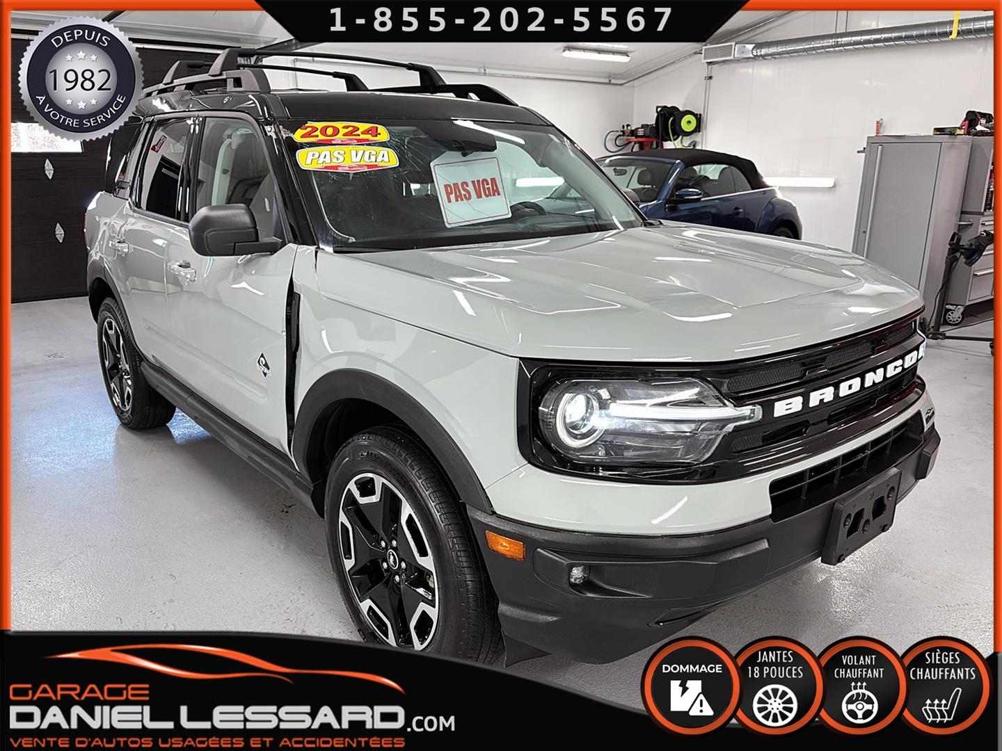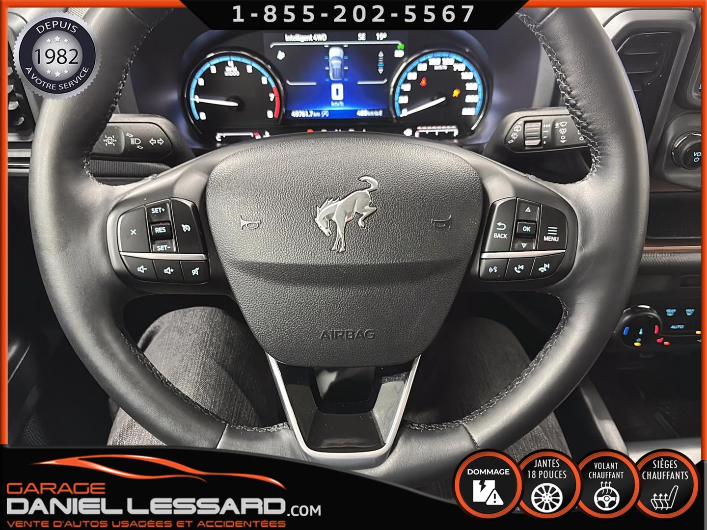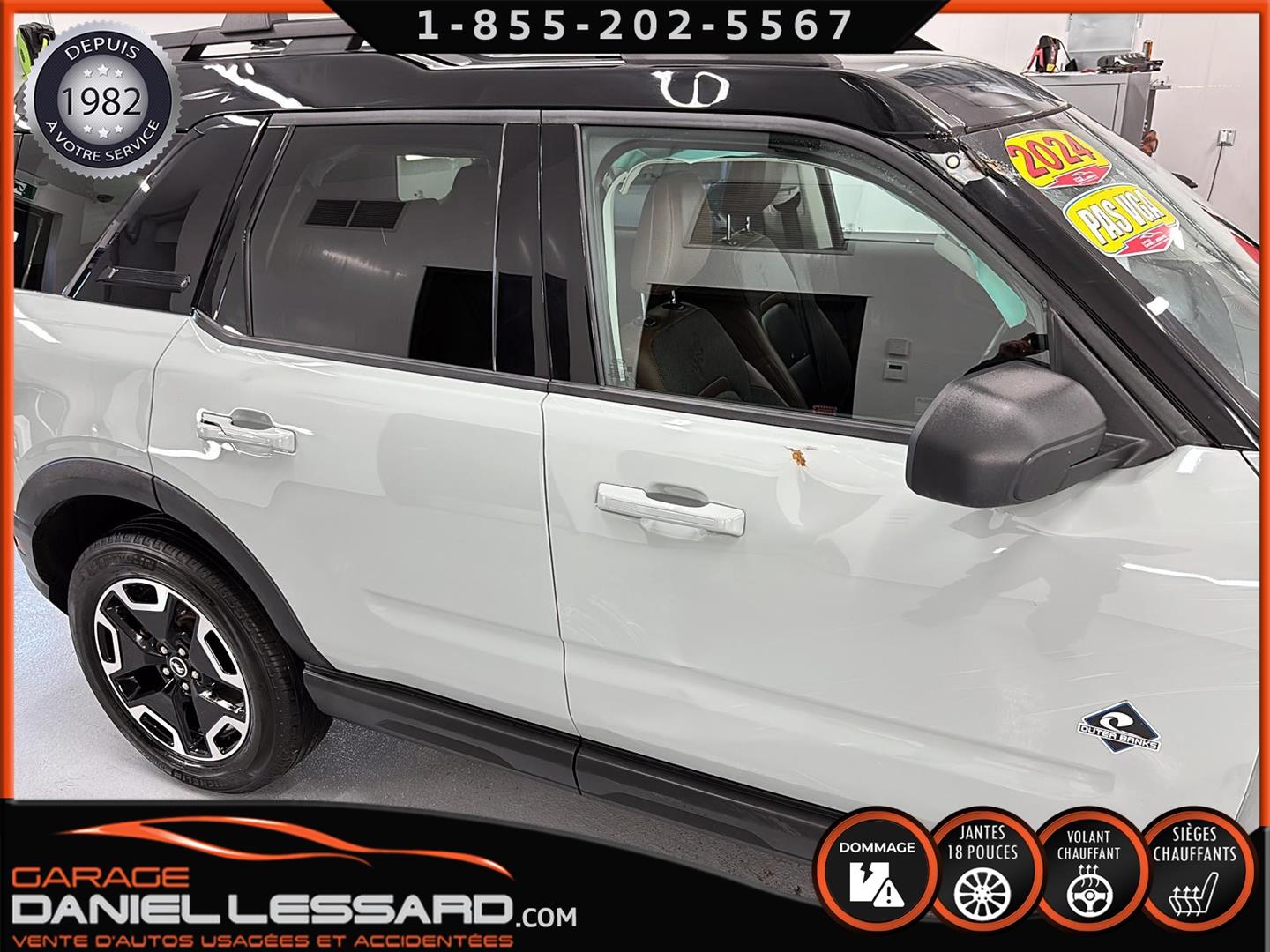 SUPERB 2024 BRONCO SPORT OUTER BANKS, 1.5L TURBOCHARGED INLINE 3-CYLINDER ENGINE, 8-SPEED AUTOMATIC TRANSMISSION, 18" MAG WHEELS ON MICHELIN PRIMACY A/S 225/60/18 TIRES, HEATED SEATS AND STEERING WHEEL, LEATHER SEATS, DUAL-ZONE CLIMATE CONTROL, BLIND SPOT MONITORING, REARVIEW CAMERA, WIRELESS CHARGER. WE HAVE ONLY ONE KEY WITH THE ORIGINAL REMOTE STARTER. THE IN-SERVICE DATE IS: JULY 5, 2024. CHECK WITH THE DEALER TO CONFIRM THE WARRANTY IS APPLICABLE TO THE VEHICLE.