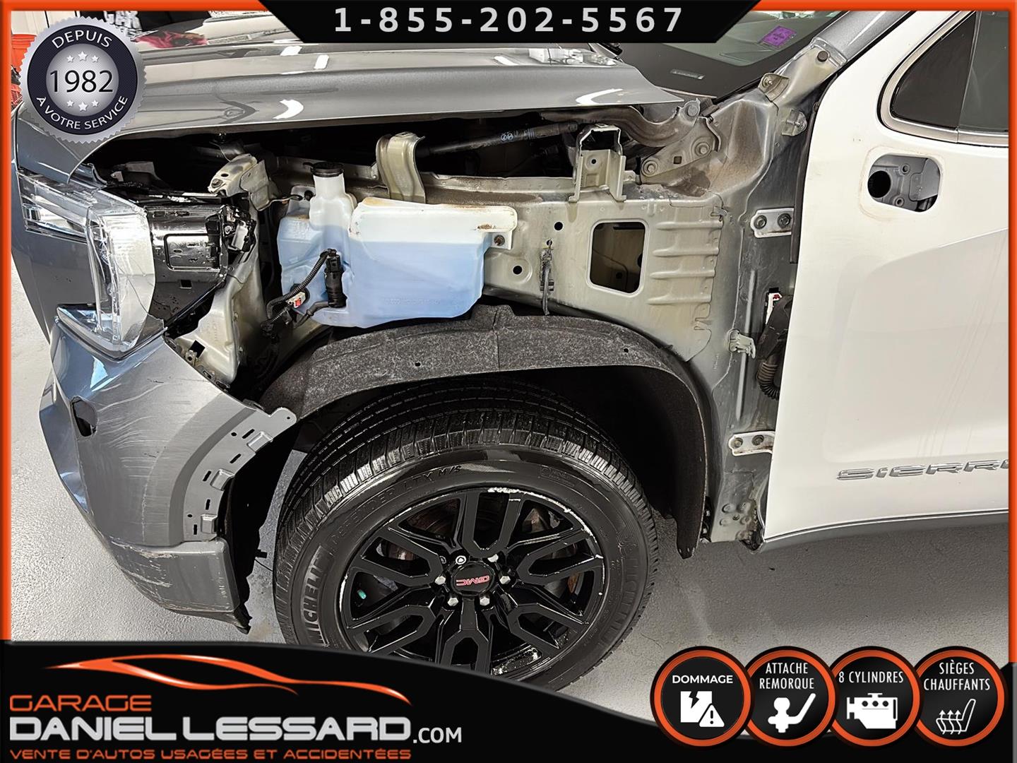 GMC SIERRA CREW CAB 4 X 4 2021, MOTEUR 5.3 LITRES, BOITE 6 PIEDS, BUCKET SEAT, BANC CONDUCTEUR ÉLECTRIQUE, BANC AVANT ET VOLANT CHAUFFANT, 4 X 4 AVEC MODE AUTO, 4HI, 2HI, GROUPE REMORQUAGE AVEC MODULE DE FREIN, SIRIUS, PUSH START, CONTROL AUDIO, TÉLÉPHONIQUE ET CRUISE CONTROL AU VOLANT, CLIMATISATION 2 ZONES, MAGS AVEC PNEU MICHELIN 275 / 55 / 20 AVEC 50% D'USURE, PANNEAU ARRIÈRE AVEC MARCHE, 2 CLÉS AVEC DÉMARREUR A DISTANCE,