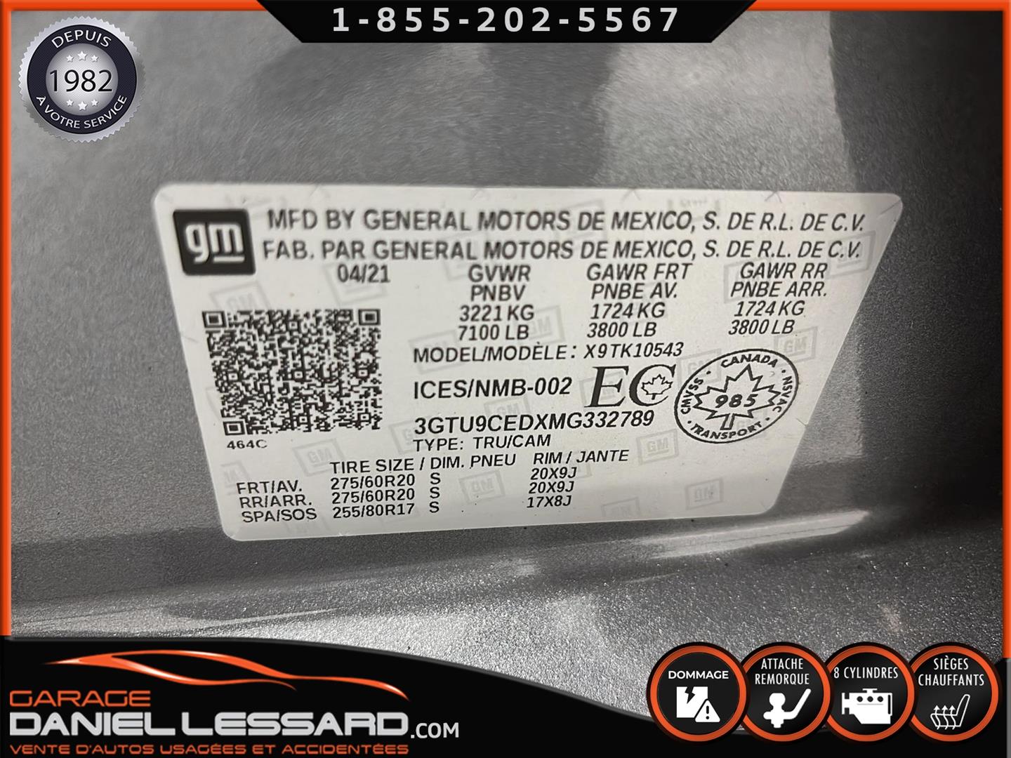 MODÈLE ELEVATION 4 X 4, MOTEUR 5.3 LITRES, BOITE DE 6 PIEDS, ACCIDENTÉ SUR LE CÔTÉ GAUCHE, PLUS DE DÉTAILS ET PHOTOS AU WWW.DANIELLESSARD.COM