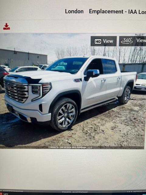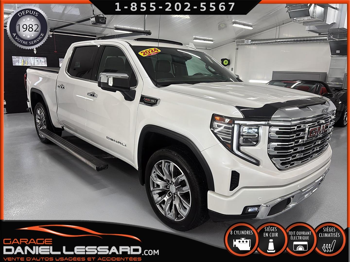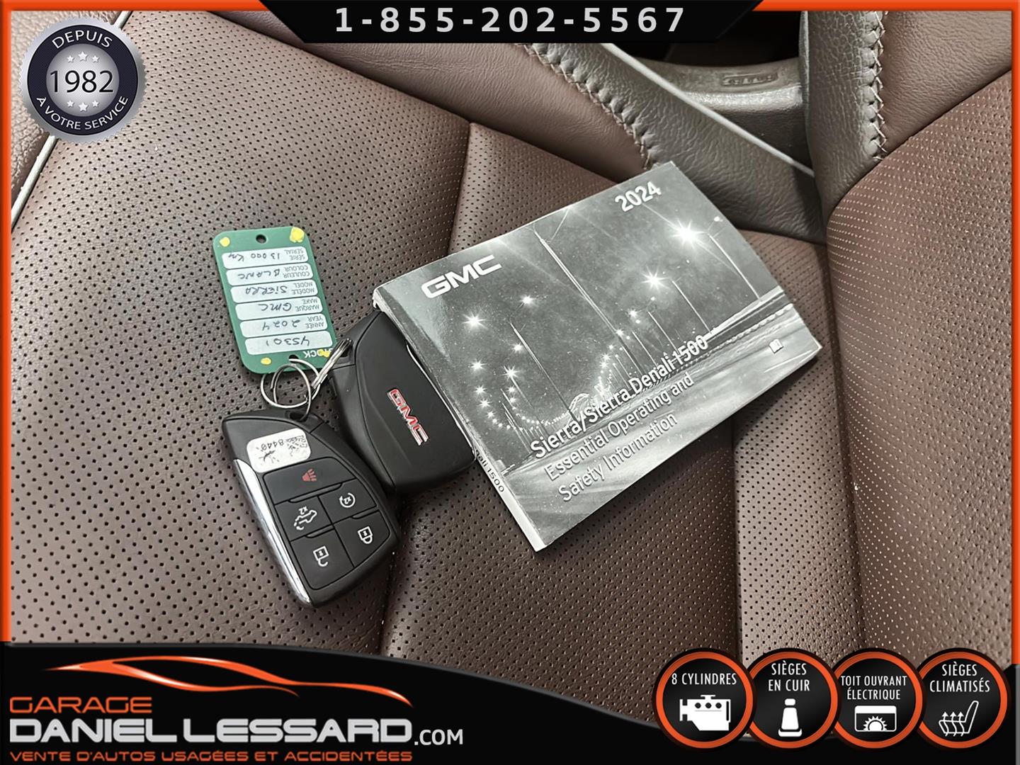 2024 GMC SIERRE 1500 ** DENALI ** 4WD, LOW KM, 6.2-LITER ENGINE, 5.5-FOOT BOX, FULL INTERIOR BROWN LEATHER, THE FRONT SEATS ARE ELECTRIC HEATED AND AIR CONDITIONED, HEATED STEERING WHEEL, DRIVER'S BENCH WITH MEMORY, BIG SCREEN, NAVIGATION, SATELLITE RADIO, SUNROOF, MIST LIGHT, ELECTRIC RUNNING BOARDS, AUDIO CONTROL, TELEPHONE, CRUISE CONTROL AND STEERING WHEEL SPEED, 4 X4 WITH 2HI, AUTO, 4 HI AND 4 LO MODE, 2 ZONE AIR CONDITIONING, MIST LIGHT, 3 GARAGE DOOR OPENER, BOSE SOUND SYSTEM, REVERSE CAMERA AND PROXIMITY SENSOR, 22 INCH ORIGINAL MAGS WITH BRIGESTONE SUMMER TYRES 275 / 50 / 22 WITH 20% WEAR, CANVAS ON BOX, TINTED WINDOW, SLIDING BACKGLASS, TOWING PACKAGE, BLIND SPOT, LINE X BOX INTERIOR, MUD GUARDS, 2 KEYS WITH REMOTE STARTER, 2 FRONT FABRIC FLOOR MATS AND FRONT AND REAR GMC RUBBER MATS