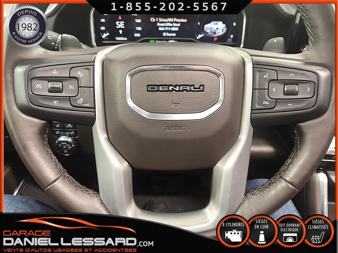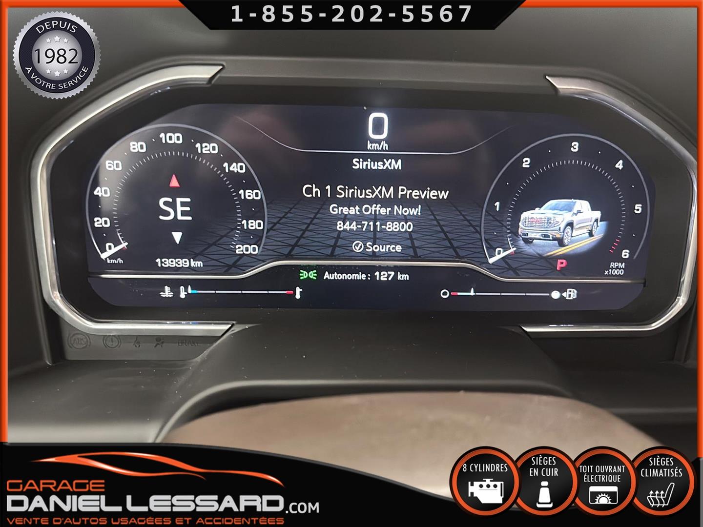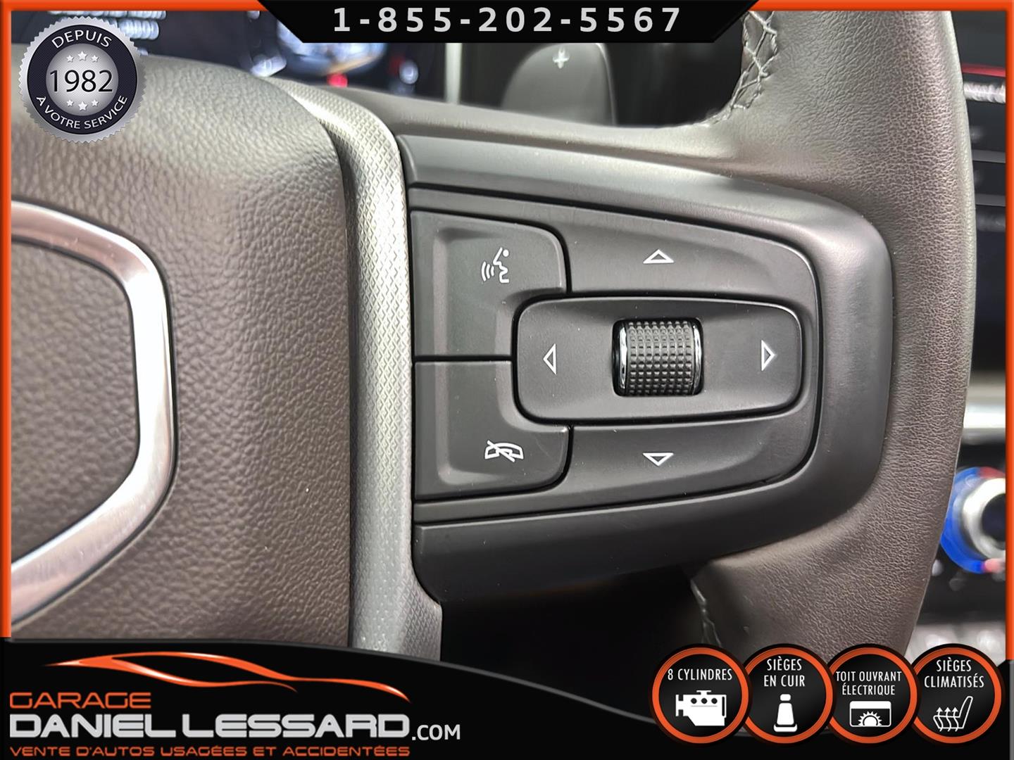 2024 GMC SIERRE 1500 ** DENALI ** 4WD, LOW KM, 6.2-LITER ENGINE, 5.5-FOOT BOX, FULL INTERIOR BROWN LEATHER, THE FRONT SEATS ARE ELECTRIC HEATED AND AIR CONDITIONED, HEATED STEERING WHEEL, DRIVER'S BENCH WITH MEMORY, BIG SCREEN, NAVIGATION, SATELLITE RADIO, SUNROOF, MIST LIGHT, ELECTRIC RUNNING BOARDS, AUDIO CONTROL, TELEPHONE, CRUISE CONTROL AND STEERING WHEEL SPEED, 4 X4 WITH 2HI, AUTO, 4 HI AND 4 LO MODE, 2 ZONE AIR CONDITIONING, MIST LIGHT, 3 GARAGE DOOR OPENER, BOSE SOUND SYSTEM, REVERSE CAMERA AND PROXIMITY SENSOR, 22 INCH ORIGINAL MAGS WITH BRIGESTONE SUMMER TYRES 275 / 50 / 22 WITH 20% WEAR, CANVAS ON BOX, TINTED WINDOW, SLIDING BACKGLASS, TOWING PACKAGE, BLIND SPOT, LINE X BOX INTERIOR, MUD GUARDS, 2 KEYS WITH REMOTE STARTER, 2 FRONT FABRIC FLOOR MATS AND FRONT AND REAR GMC RUBBER MATS