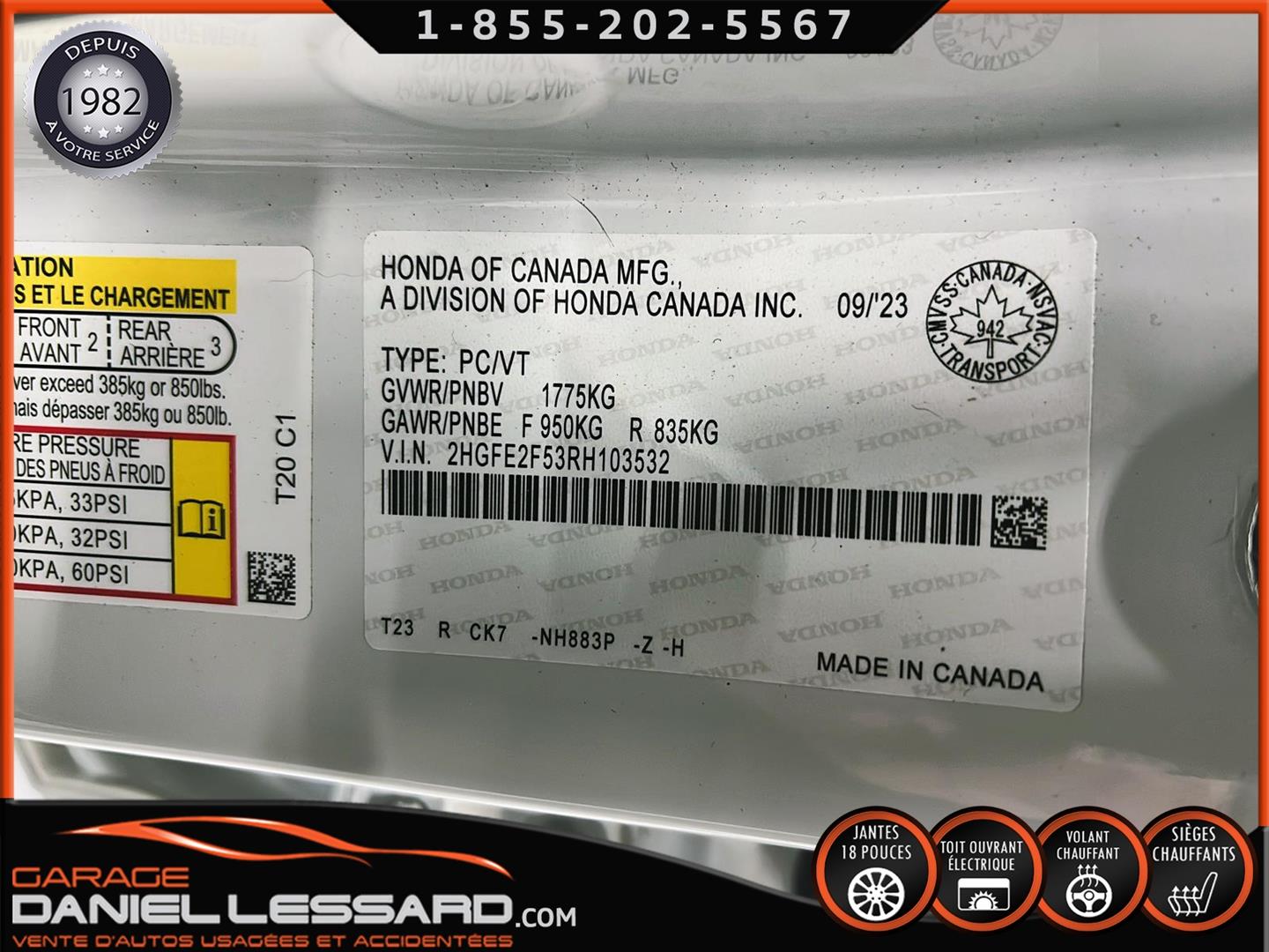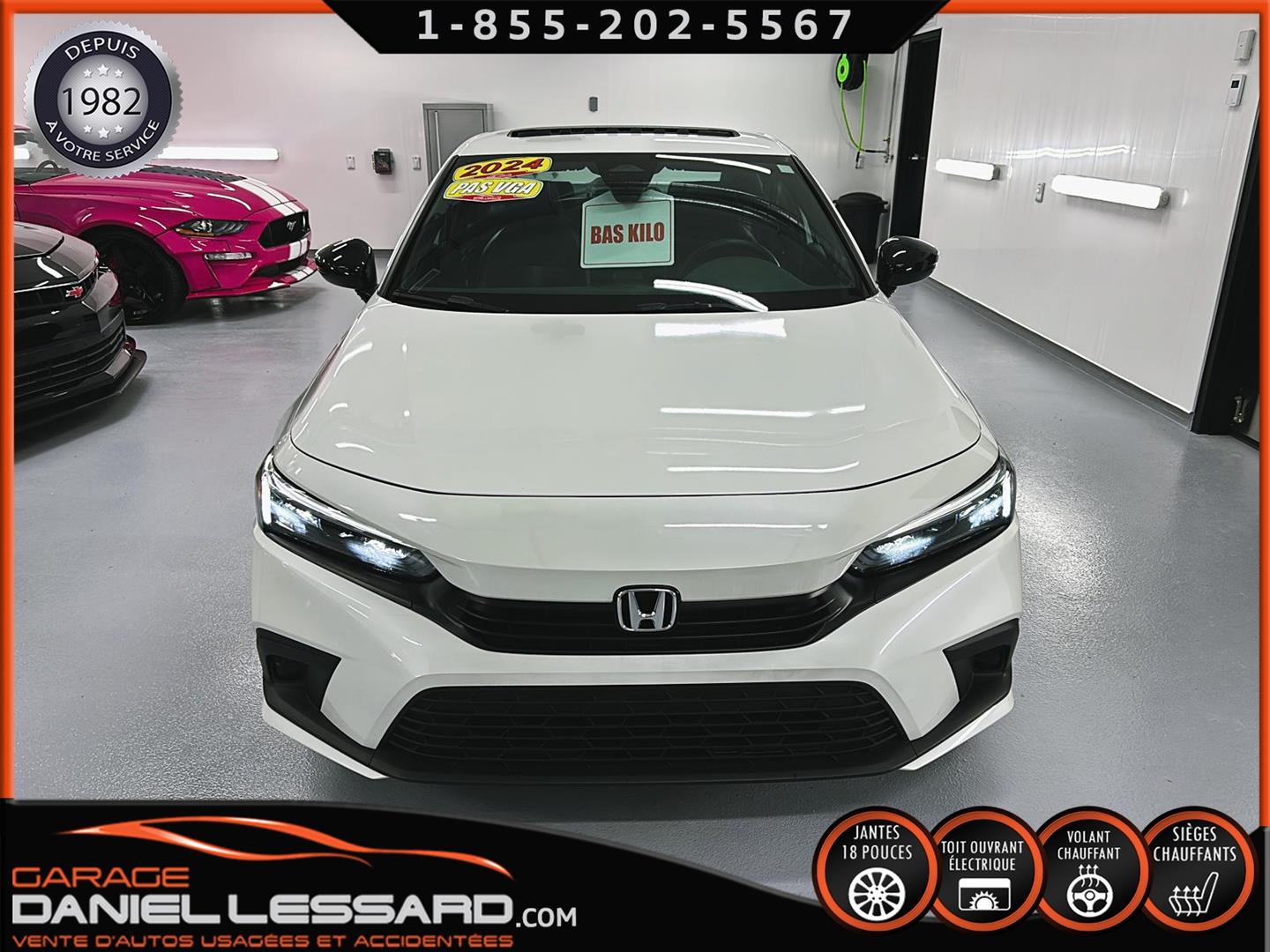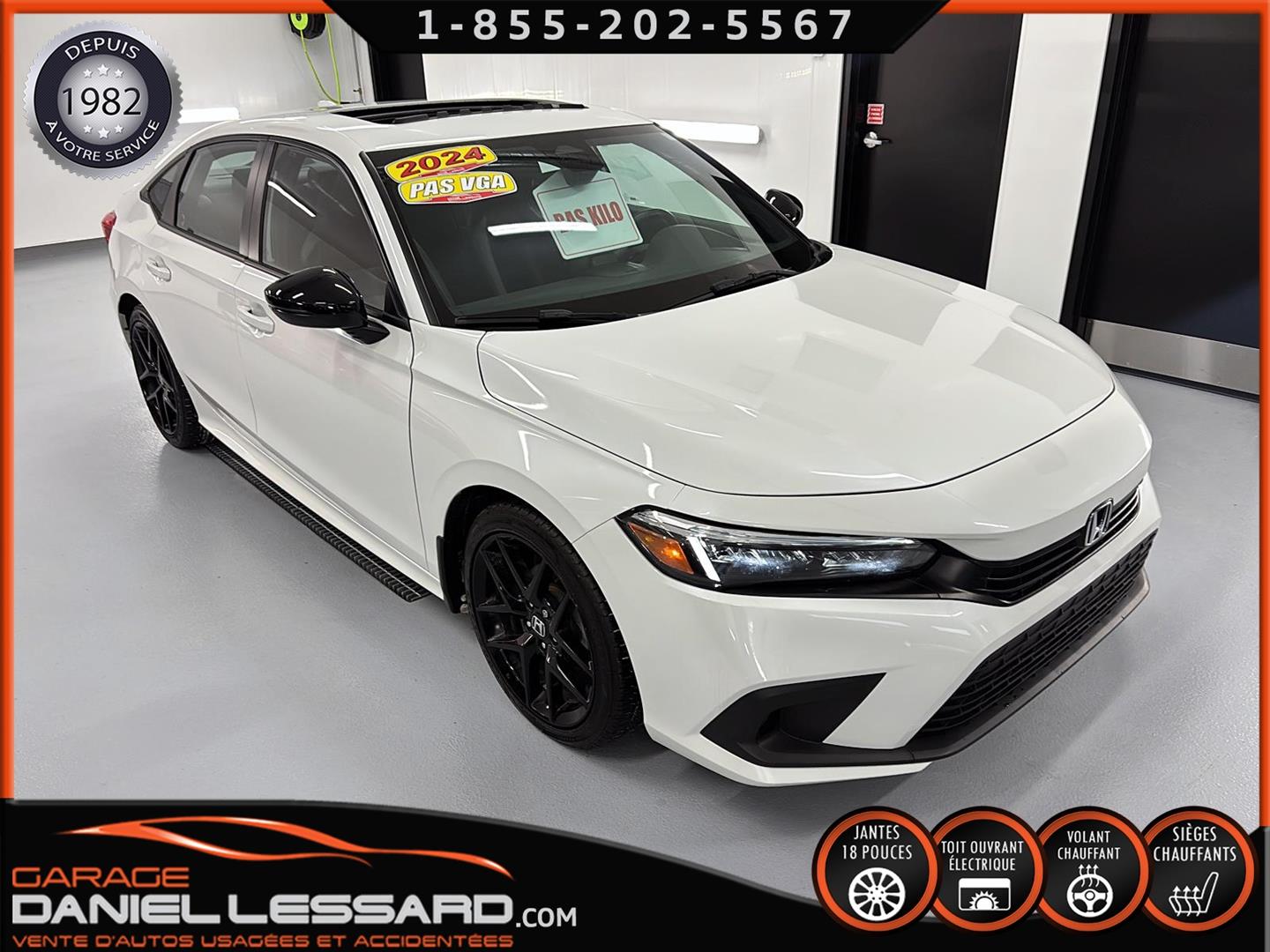 2024 HONDA CIVIC SPORT 4-DOOR SEDAN IN WHITE WITH ONLY 8,775 KM ON THE ODOMETER. WOW! AUTOMATIC TRANSMISSION WITH STEERING WHEEL-MOUNTED PADDLE SHIFTERS, RELIABLE AND ECONOMICAL 2.0-LITER 4-CYLINDER ENGINE, SPORTY MODEL WITH A VERY ATTRACTIVE LOOK AND EXCELLENT EQUIPMENT, HEATED SEATS, HEATED STEERING WHEEL, SUNROOF, POWER WINDOWS AND MIRRORS, BLIND SPOT MONITORING, BLACK CLOTH INTERIOR, ORIGINAL CLOTH FLOOR MATS INCLUDED, TOUCHSCREEN INSTRUMENT CLUSTER WITH REARVIEW CAMERA, STOP-GO, ADAPTIVE CRUISE CONTROL, BLUETOOTH AND OTHER STEERING WHEEL-MOUNTED CONTROLS, WELL-EQUIPPED WITH GOOD CONDITION 235/40/18 GOODYEAR SUMMER TIRES MOUNTED ON ORIGINAL 18-INCH BLACK ALLOY WHEELS, WE HAVE A SPARE KEY. MAIN, ORIGINAL INTEGRATED REMOTE STARTER, PUSH START, BEAUTIFUL CAR AVAILABLE NOW, CLEAN TITLE, NOT VGA, STOLEN AND RECOVERED, CARFAX INCLUDED!