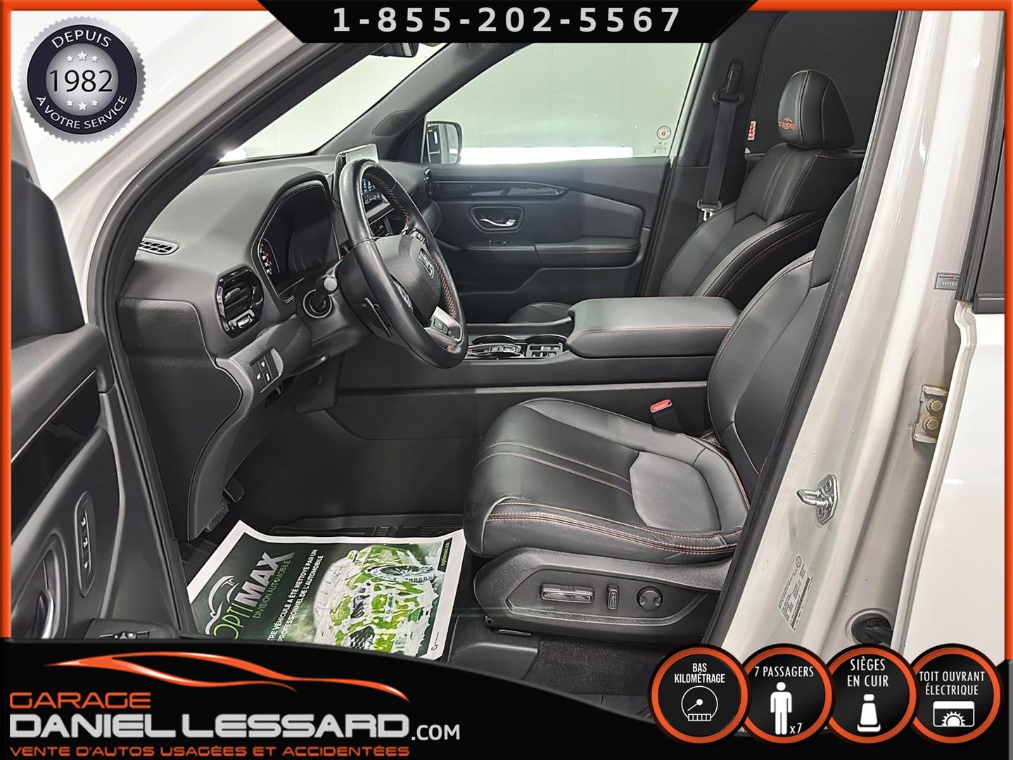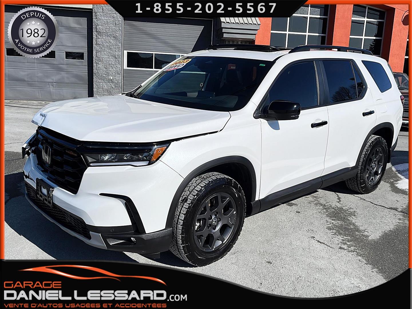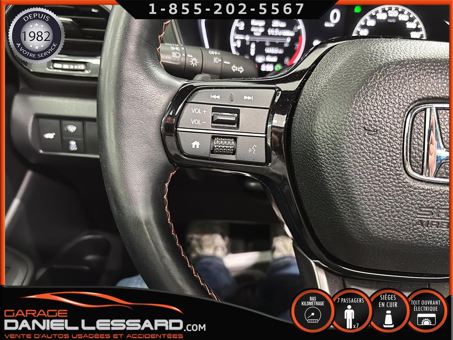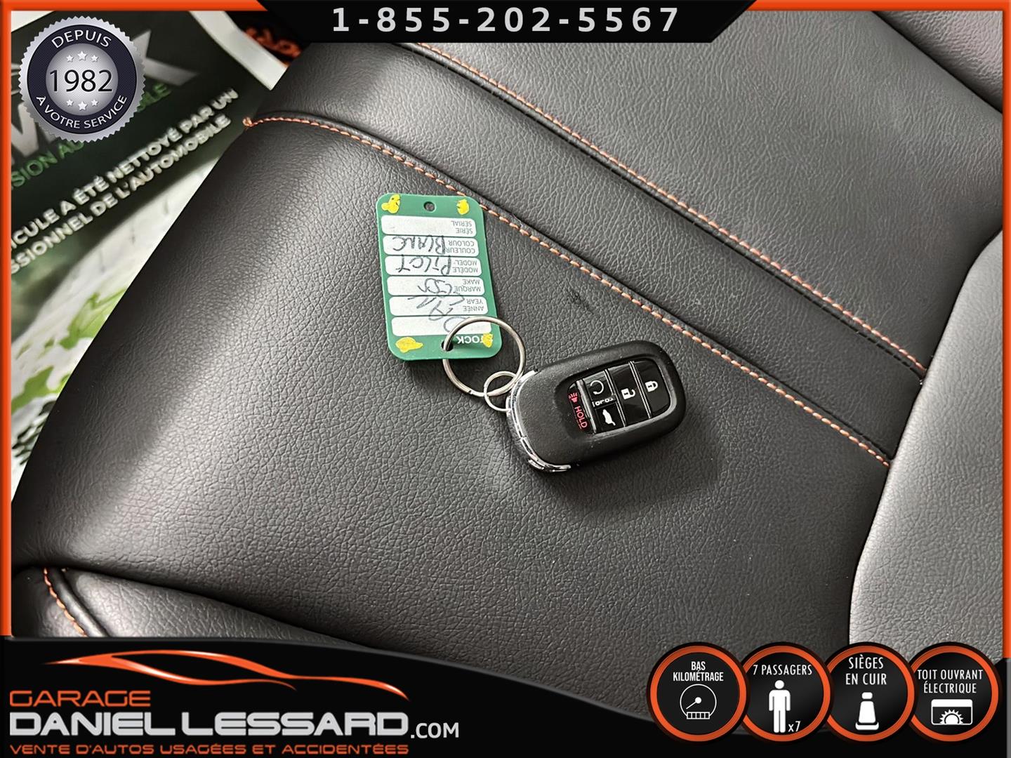 2023 HONDA PILOT ** TRAILSPORT AWD **, LEATHER INTERIOR, 7-SEATER BUCKET SEAT, HEATED POWER FRONT BENCH AND DRIVER'S SEAT WITH MEMORY, HEATED STEERING WHEEL AND WINDSHIELD, HEATED 2ND ROW SEAT, AUDIO CONTROL, TELEPHONE, CRUISE AND SPEED DETECTION, CRUISE ADAPTER, IMPACT ALERT, BLIND SPOT, SIRIUS, REAR VIEW CAMERA AND SENSOR, DUAL-ZONE CLIMATE CONTROL, 3 GARAGE DOOR OPENER, TAILGATE MECHANICAL, CELL PHONE CHARGING, ORIGINAL TRAIL EDITION MAGS WITH 265/60/18 CONTINENTAL SUMMER TIRES WITH 25% WEAR, LUGGAGE RACK, TOWING PACKAGE, 2 KEYS WITH REMOTE STARTER, ALREADY RUSTPROOFED.