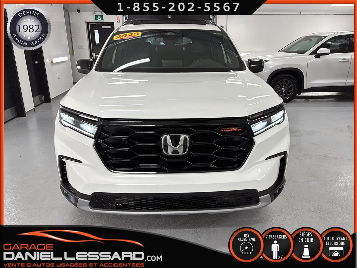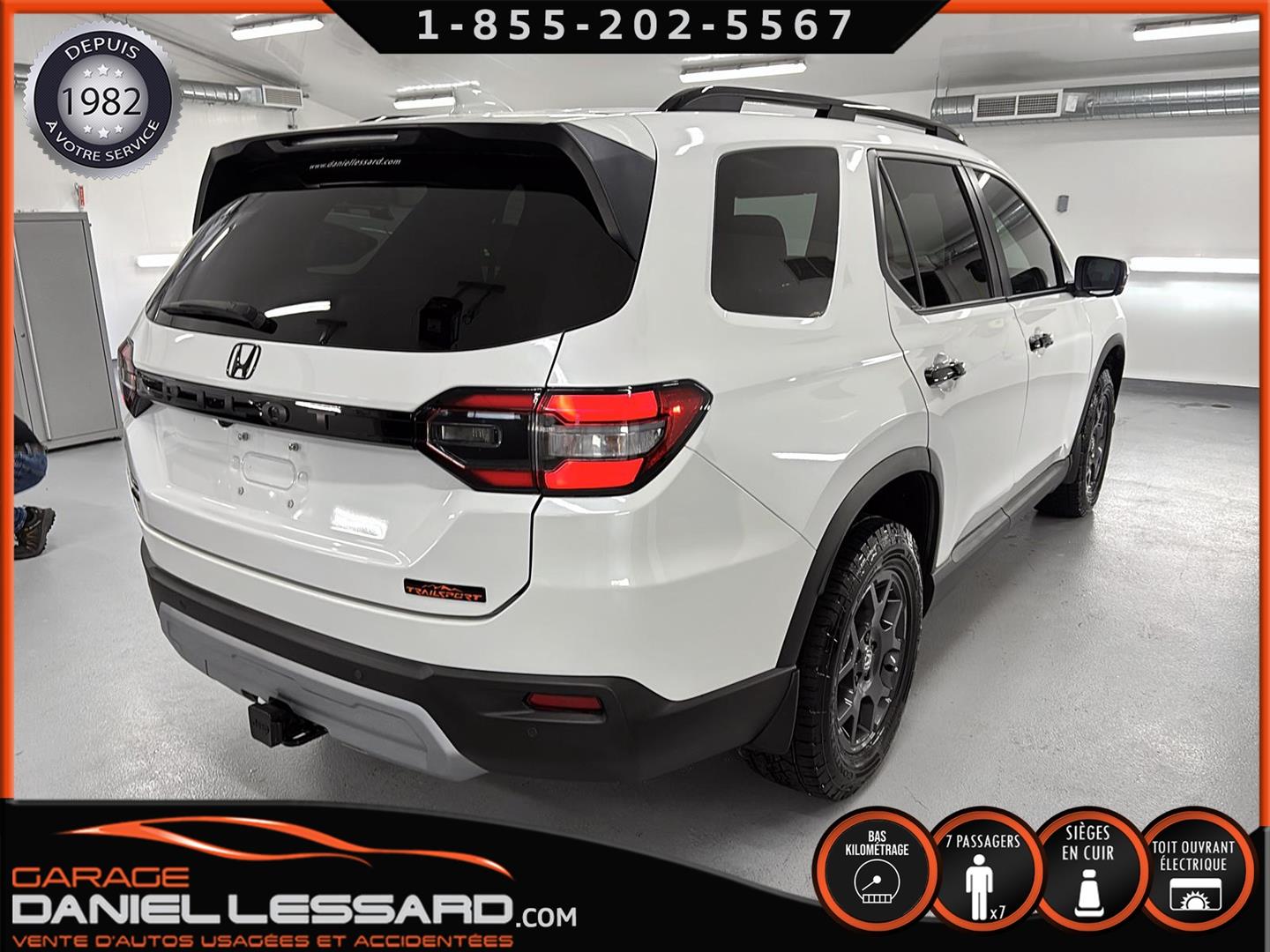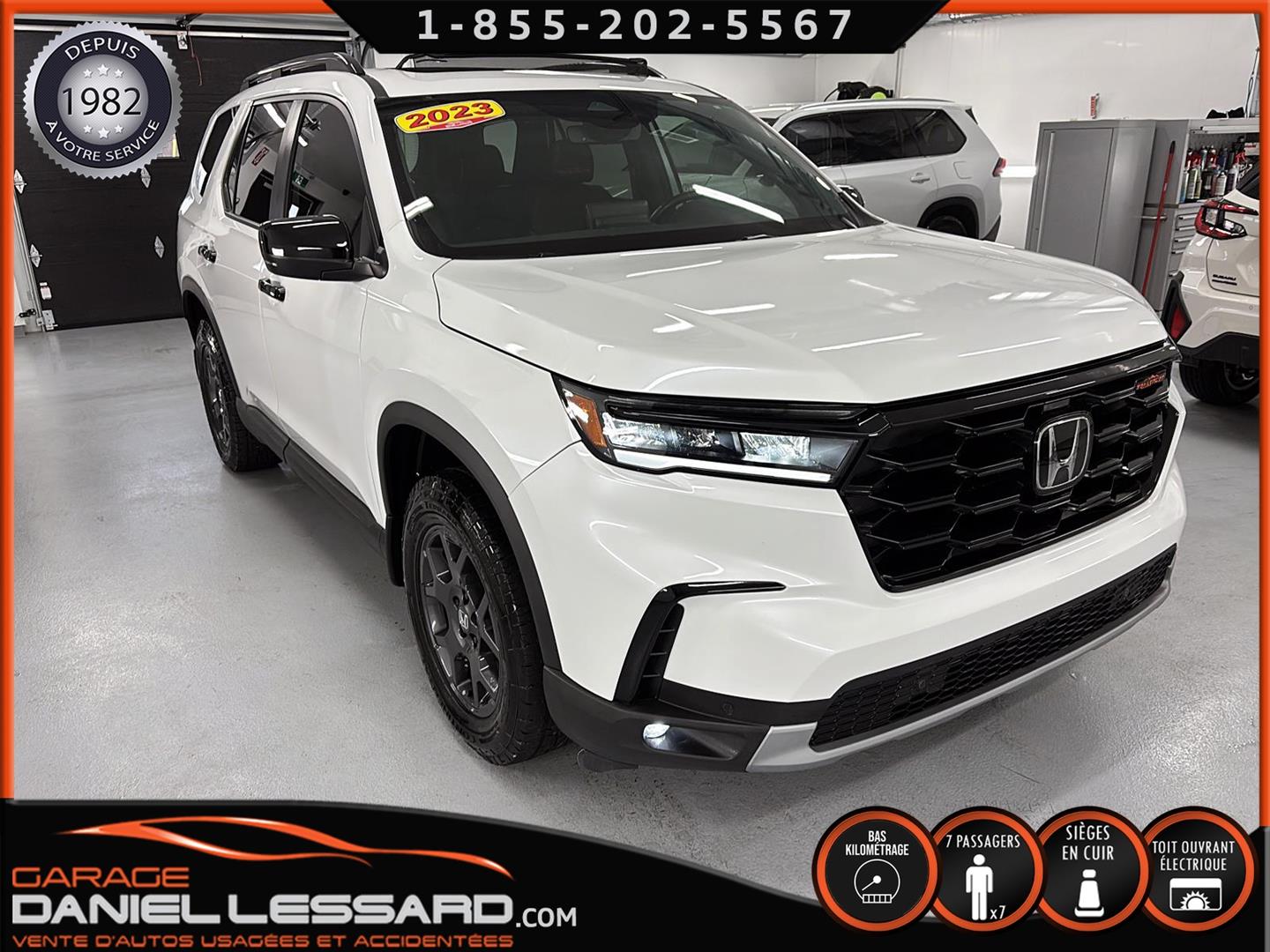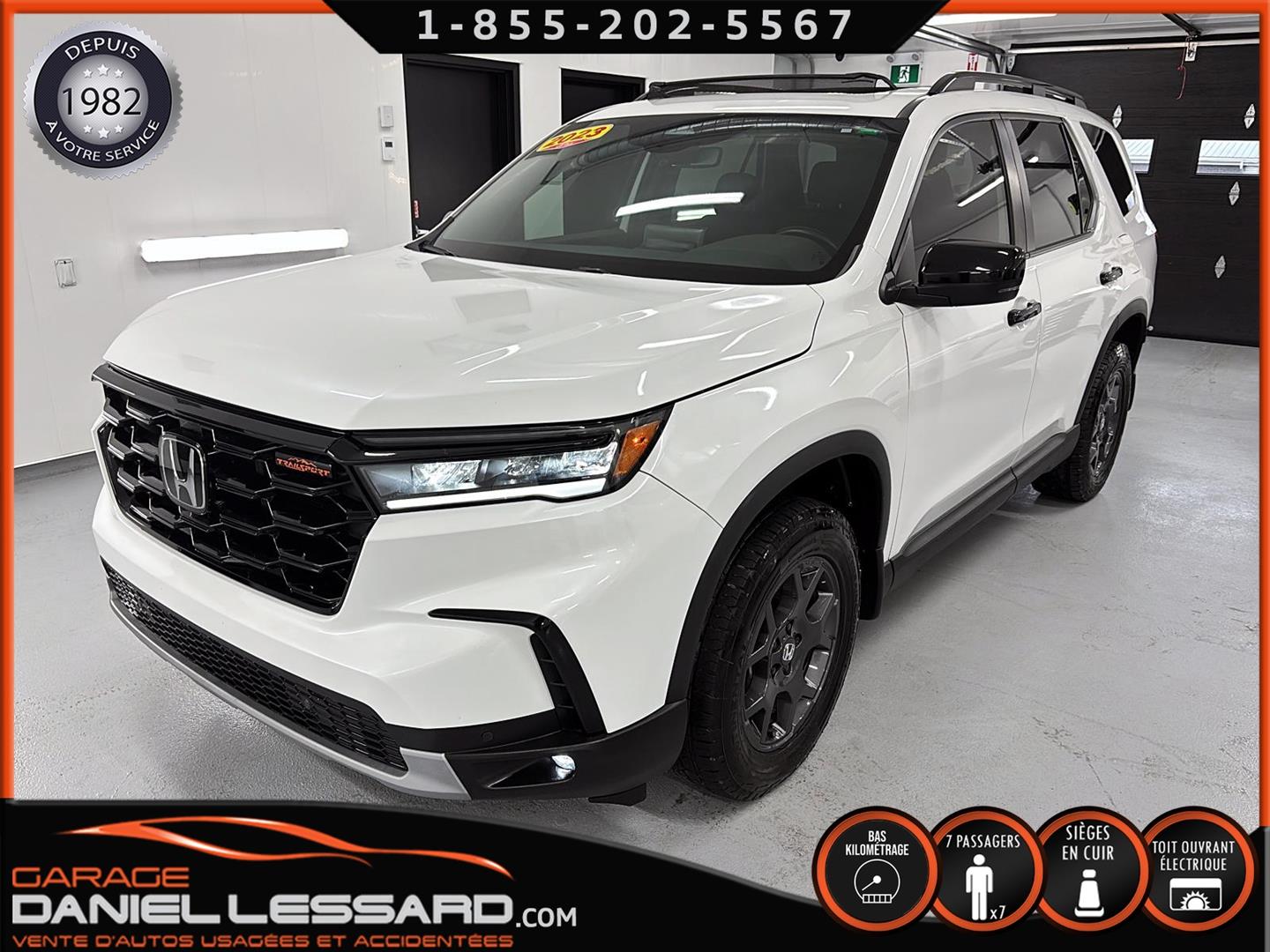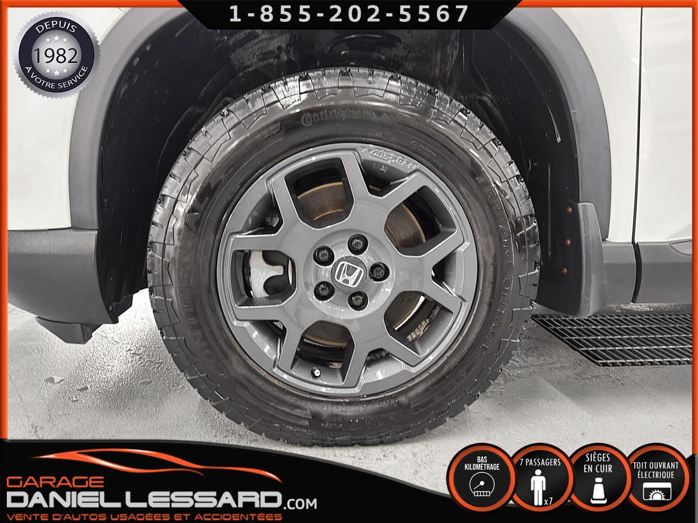 2023 HONDA PILOT ** TRAILSPORT AWD **, LEATHER INTERIOR, 7-SEATER BUCKET SEAT, HEATED POWER FRONT BENCH AND DRIVER'S SEAT WITH MEMORY, HEATED STEERING WHEEL AND WINDSHIELD, HEATED 2ND ROW SEAT, AUDIO CONTROL, TELEPHONE, CRUISE AND SPEED DETECTION, CRUISE ADAPTER, IMPACT ALERT, BLIND SPOT, SIRIUS, REAR VIEW CAMERA AND SENSOR, DUAL-ZONE CLIMATE CONTROL, 3 GARAGE DOOR OPENER, TAILGATE MECHANICAL, CELL PHONE CHARGING, ORIGINAL TRAIL EDITION MAGS WITH 265/60/18 CONTINENTAL SUMMER TIRES WITH 25% WEAR, LUGGAGE RACK, TOWING PACKAGE, 2 KEYS WITH REMOTE STARTER, ALREADY RUSTPROOFED.