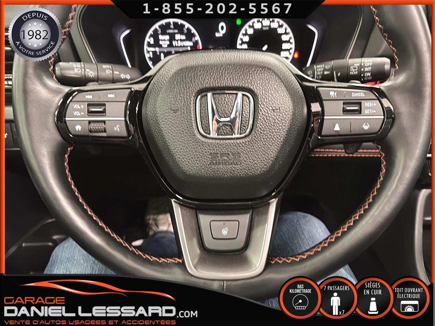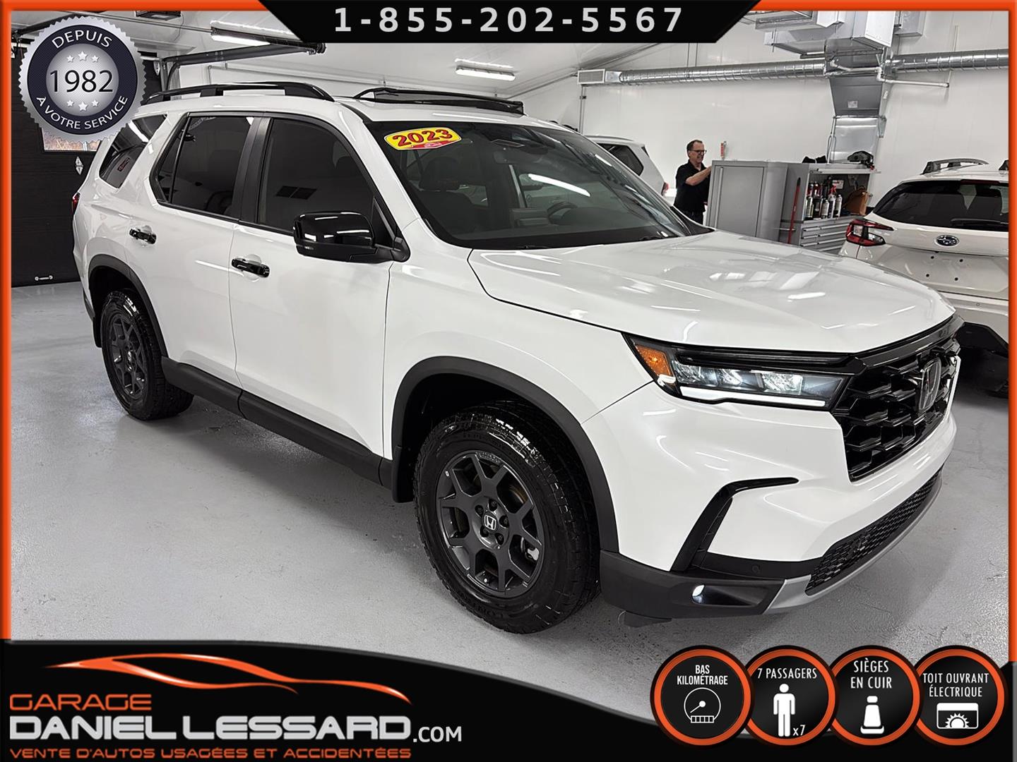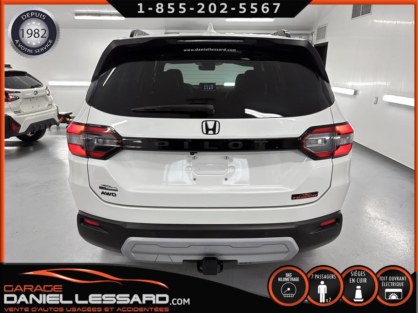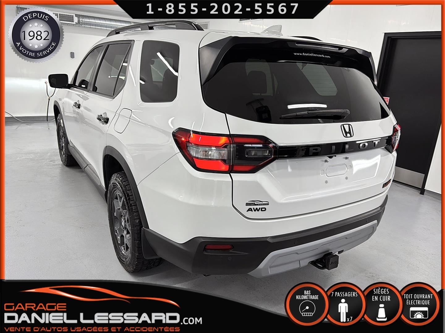 2023 HONDA PILOT ** TRAILSPORT AWD **, LEATHER INTERIOR, 7-SEATER BUCKET SEAT, HEATED POWER FRONT BENCH AND DRIVER'S SEAT WITH MEMORY, HEATED STEERING WHEEL AND WINDSHIELD, HEATED 2ND ROW SEAT, AUDIO CONTROL, TELEPHONE, CRUISE AND SPEED DETECTION, CRUISE ADAPTER, IMPACT ALERT, BLIND SPOT, SIRIUS, REAR VIEW CAMERA AND SENSOR, DUAL-ZONE CLIMATE CONTROL, 3 GARAGE DOOR OPENER, TAILGATE MECHANICAL, CELL PHONE CHARGING, ORIGINAL TRAIL EDITION MAGS WITH 265/60/18 CONTINENTAL SUMMER TIRES WITH 25% WEAR, LUGGAGE RACK, TOWING PACKAGE, 2 KEYS WITH REMOTE STARTER, ALREADY RUSTPROOFED.