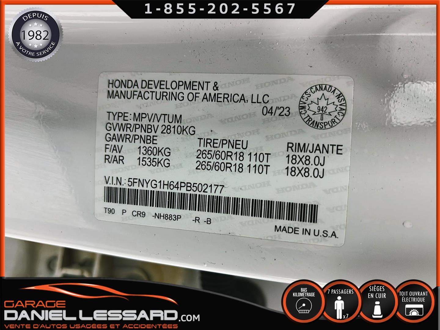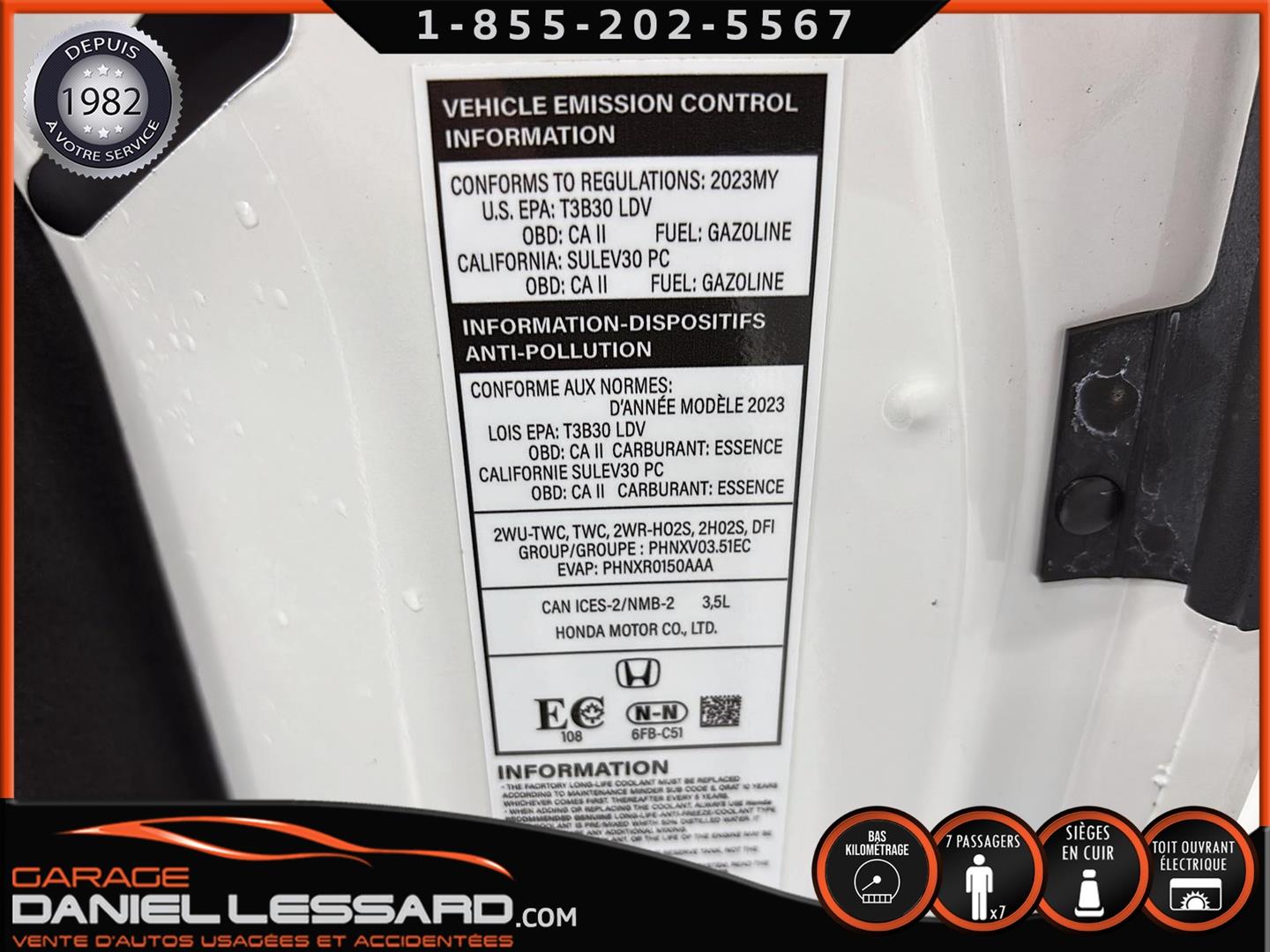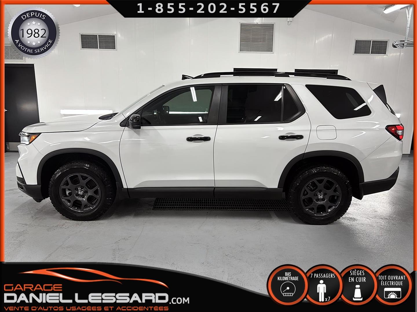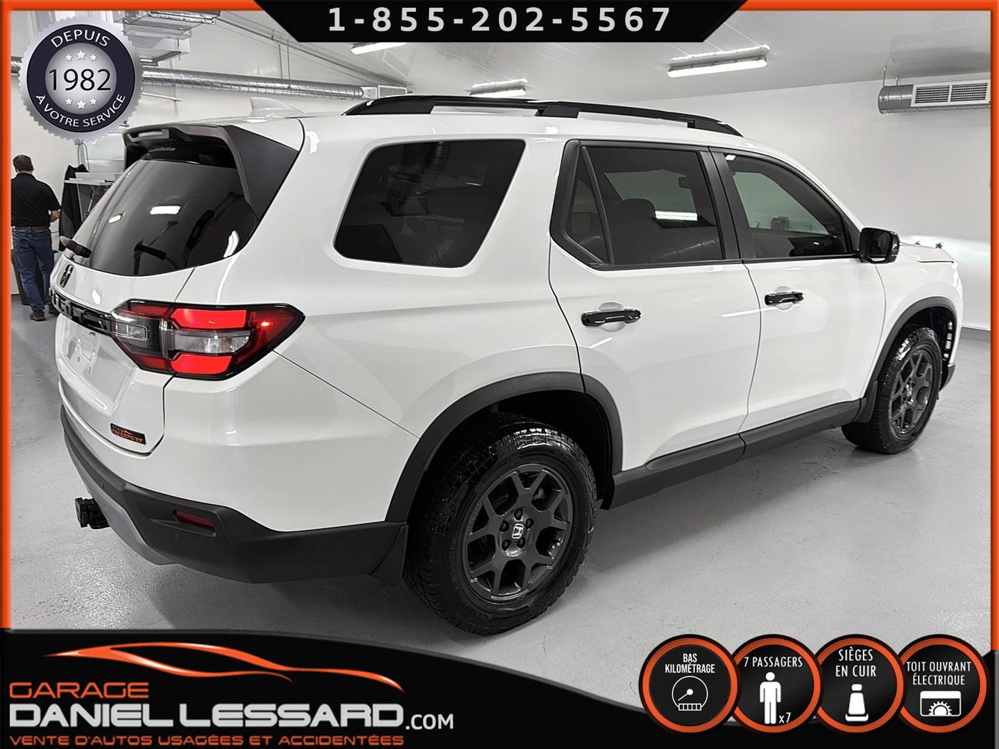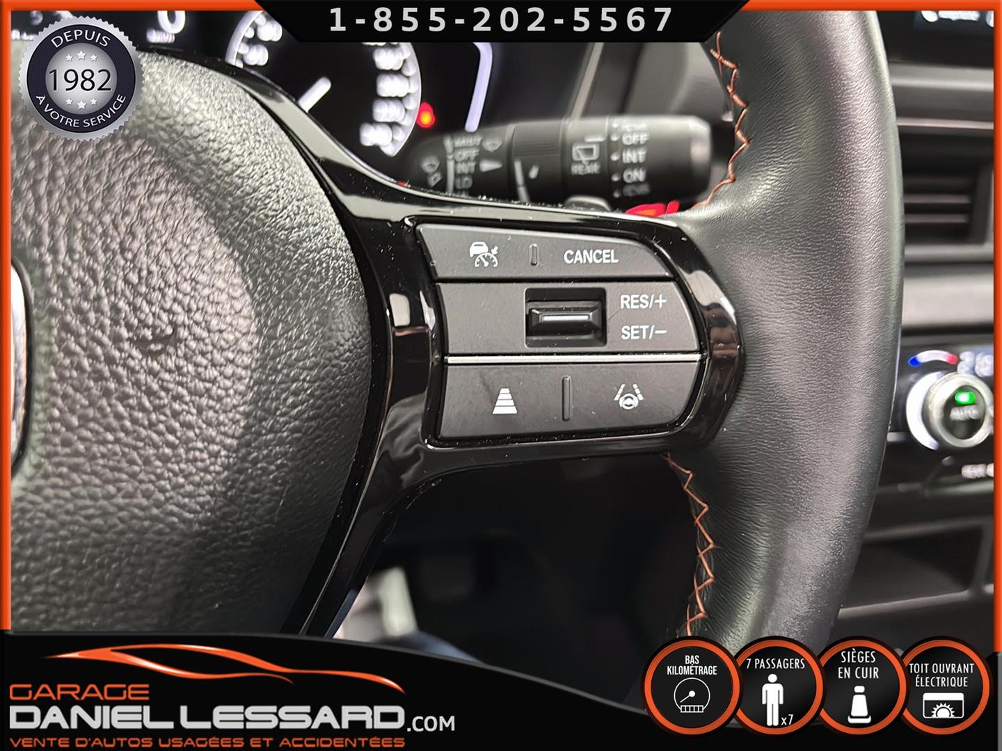 2023 HONDA PILOT ** TRAILSPORT AWD **, LEATHER INTERIOR, 7-SEATER BUCKET SEAT, HEATED POWER FRONT BENCH AND DRIVER'S SEAT WITH MEMORY, HEATED STEERING WHEEL AND WINDSHIELD, HEATED 2ND ROW SEAT, AUDIO CONTROL, TELEPHONE, CRUISE AND SPEED DETECTION, CRUISE ADAPTER, IMPACT ALERT, BLIND SPOT, SIRIUS, REAR VIEW CAMERA AND SENSOR, DUAL-ZONE CLIMATE CONTROL, 3 GARAGE DOOR OPENER, TAILGATE MECHANICAL, CELL PHONE CHARGING, ORIGINAL TRAIL EDITION MAGS WITH 265/60/18 CONTINENTAL SUMMER TIRES WITH 25% WEAR, LUGGAGE RACK, TOWING PACKAGE, 2 KEYS WITH REMOTE STARTER, ALREADY RUSTPROOFED.