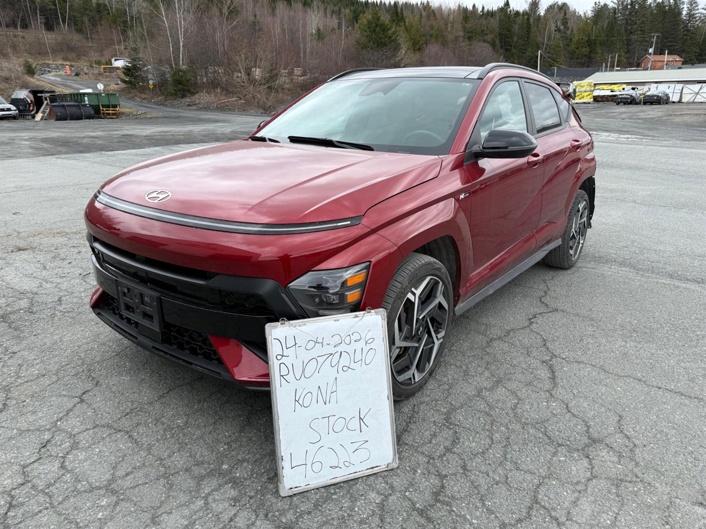 2024 HYUNDAI KONA N LINE IN ULTIMATE RED, ALL-WHEEL DRIVE, EXCLUSIVE N LINE FRONT BUMPER, EXCLUSIVE N LINE REAR BUMPER WITH DIFFUSER AND GRILLE, EXCLUSIVE N LINE REAR SPOILER, HEATED FRONT SEATS AND STEERING WHEEL, LEATHER AND SUEDE SEATS WITH EXCLUSIVE N LINE EMBROIDERY AND STITCHING, LEATHER-WRAPPED HEATED STEERING WHEEL WITH RED STITCHING, BLIND SPOT MONITORING, DUAL-ZONE AUTOMATIC CLIMATE CONTROL, METAL SPORT PEDALS, AM/FM/XM AUDIO SYSTEM, 12.3-INCH TOUCHSCREEN, WIRELESS ANDROID AUTO AND APPLE CARPLAY, ADAPTIVE CRUISE CONTROL, DRIVING ASSISTANCE BRAKING SYSTEM, LANE HOLD-ON SYSTEM. 19-INCH ALUMINUM WHEELS WITH 235/45ZR19 KUMHO SUMMER TIRES. WE HAVE ONE KEY.