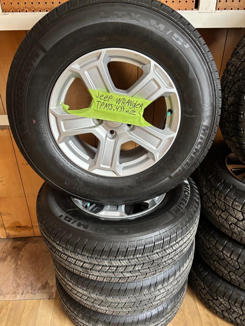 ENSEMBLE DE MAGS ET PNEUS D'ÉTÉ PROVIENT D'UN JEEP WRANGLER 2017, BOULONNAGE 5X127 ET MOYEU 71.5, ENSEMBLE DE 4, PNEUS D'ÉTÉ MICHELIN LTX M/S2 MONTÉ SUR MAGS D'ORIGINE 17 POUCES ARGENT, VIENT AVEC TPMS (NUMERO 433 M/Z) DEUX PNEUS SONT ENTRE 6/32 ET 7/32, ET DEUX PNEUS SONT TRÈS BON ENTRE 9/32 ET 11/32 , TOUT EST DEJA MONTÉ ET BALANCÉ, PRET A INSTALLER SUR VOTRE JEEP ! ON VENDS PAS JUSTE LES PNEUS OU JUSTE LES MAGS, LE TOUT EST A VENDRE TEL QUEL ! ON NE FAIT PAS D'INSTALLATION. CONTACTEZ-NOUS POUR UNE MISE DE COTÉ OU PASSER NOUS VOIR !
