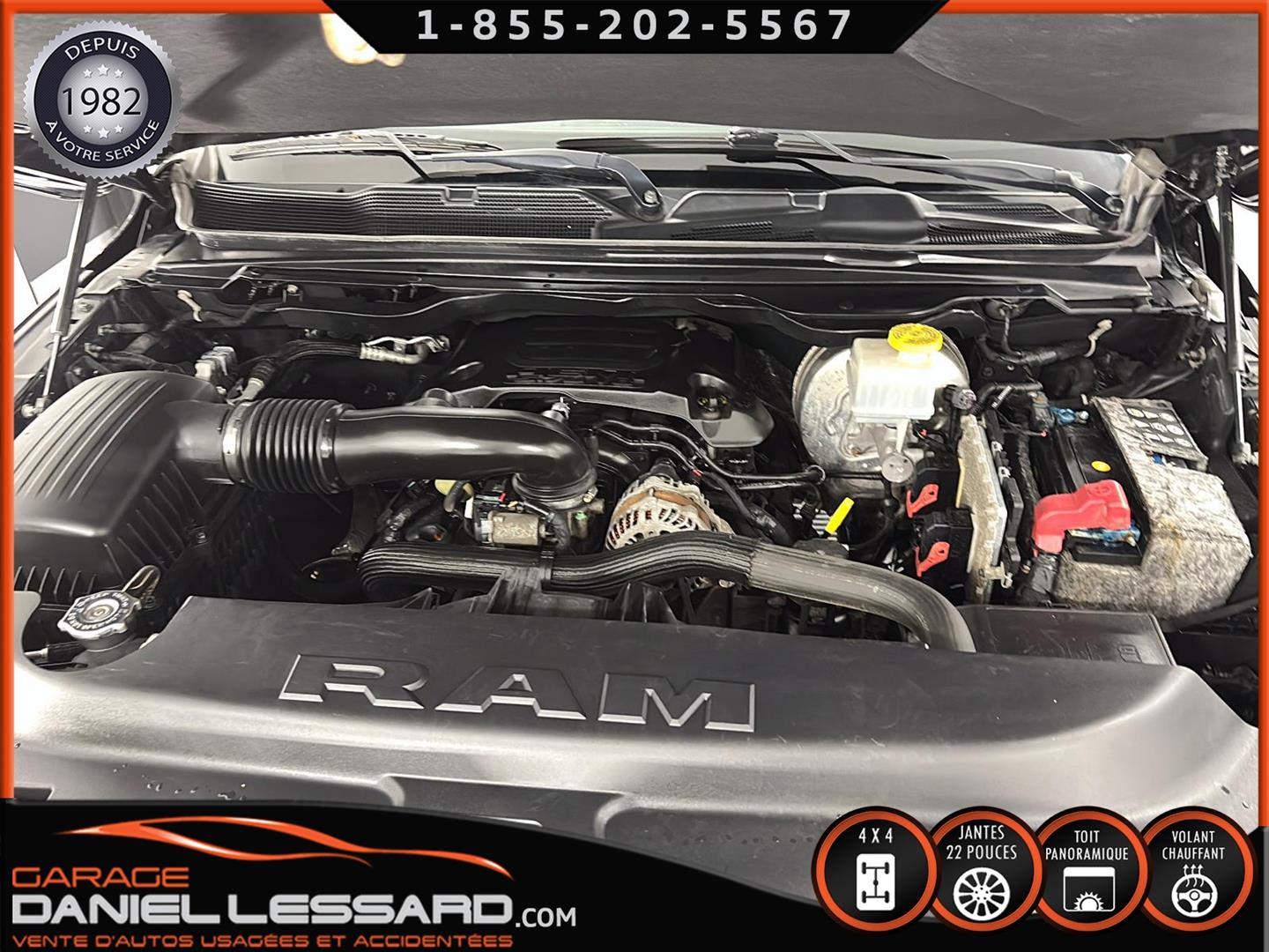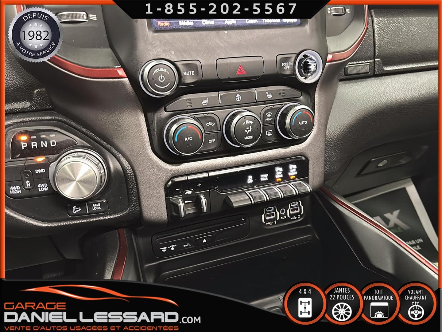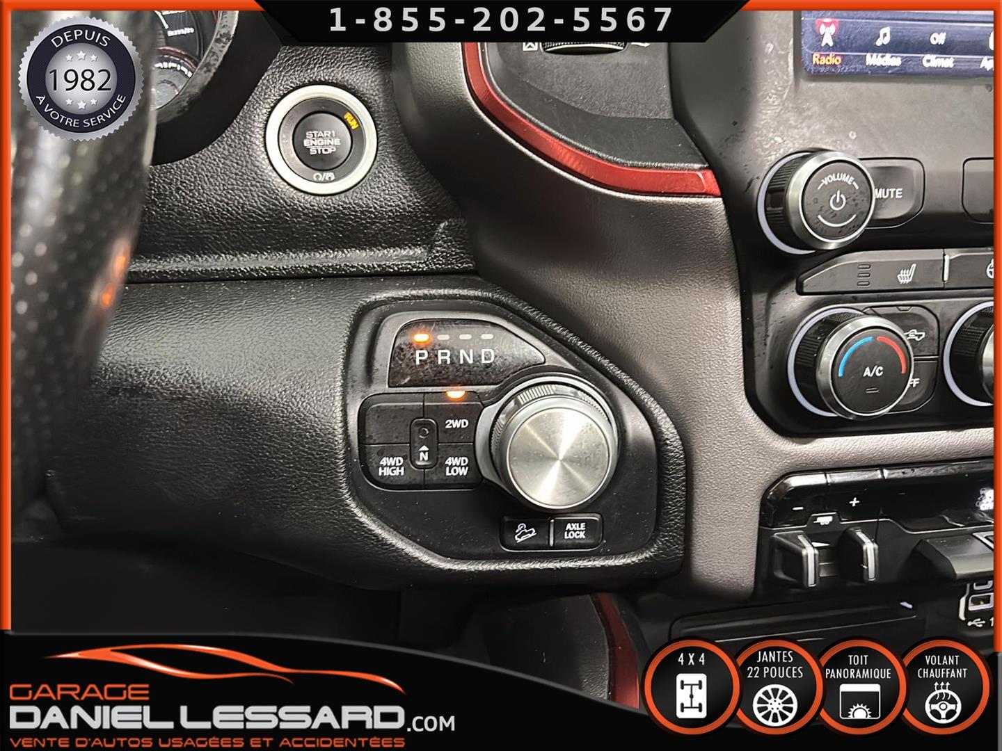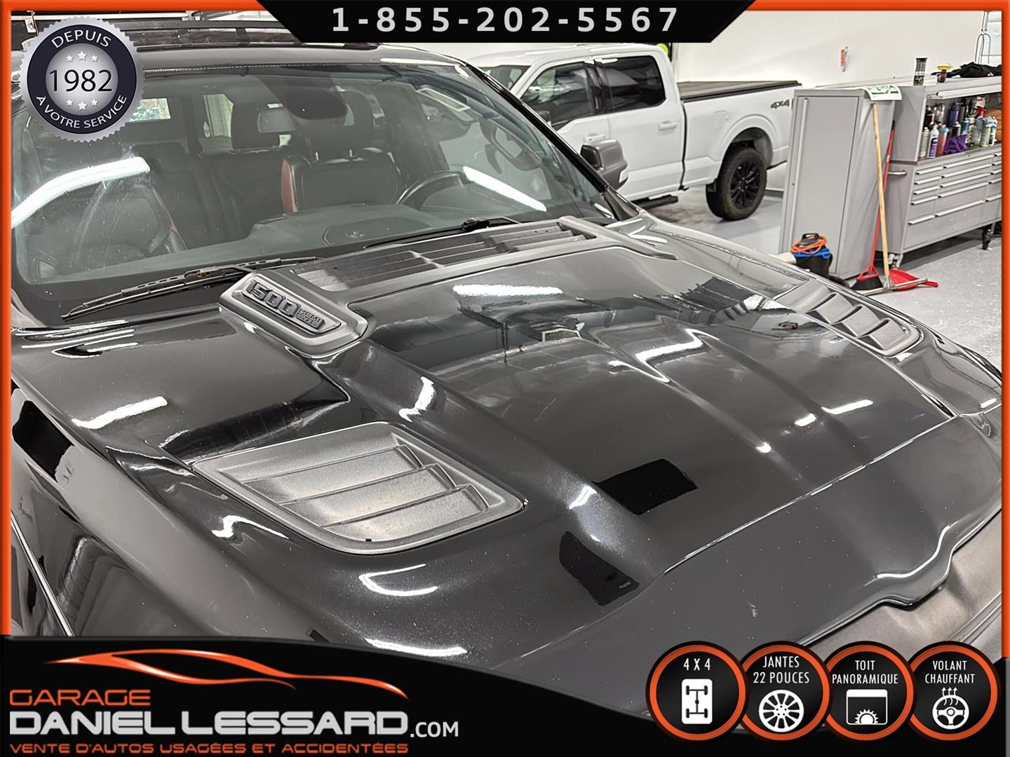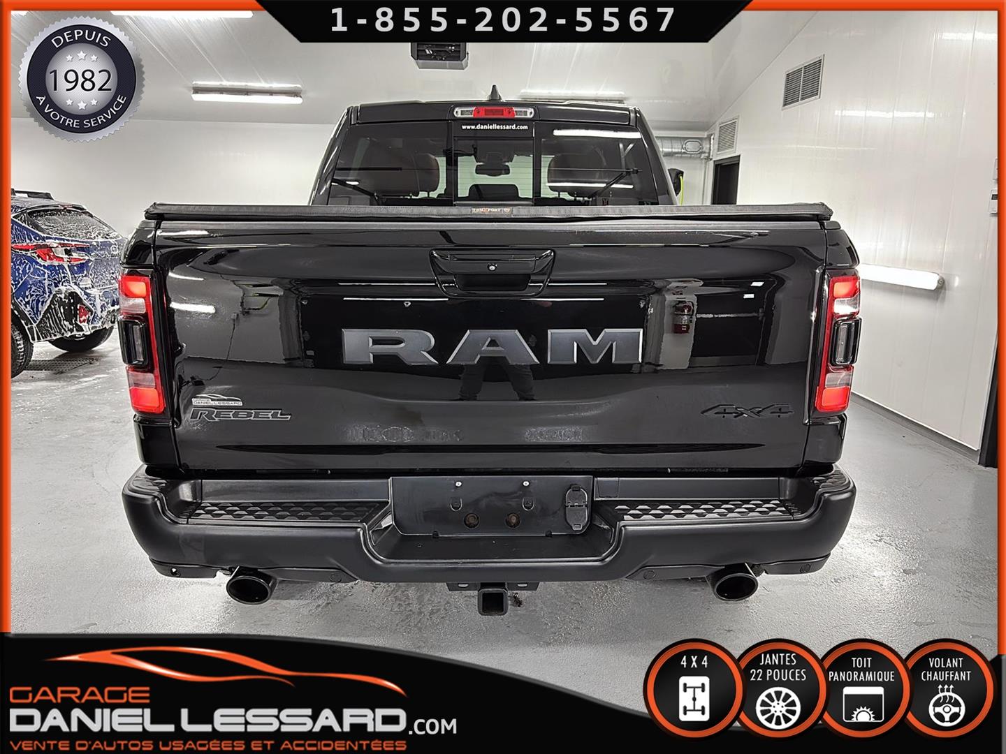 2019 RAM 1500 **REBEL** WITH 136 HP. 562 KM ON THE ODOMETER, CREWCAB WITH 4 FULL DOORS AND 5.7-FOOT BOX, BOX COVER INCLUDED, 5.7-LITER HEMI V-8 ENGINE, TWO-TONE BLACK AND RED LEATHER AND SUEDE INTERIOR, HEATED FRONT SEATS, HEATED STEERING WHEEL, LARGE PANORAMIC SUNROOF, PREMIUM ALPINE SOUND SYSTEM, 8.4-INCH TOUCHSCREEN DISPLAY, REARVIEW CAMERA WITH FRONT AND REAR PARKING SENSORS, DUAL-ZONE CLIMATE CONTROL, BLIND SPOT MONITORING, HIGH-INTENSITY HEADLIGHTS, FULL POWER GROUP FOR THE DRIVER, ORIGINAL TOW HITCH WITH 4-PIN WIRING INLET AND 7-STRAND BRAKES, FACTORY-INSTALLED ELECTRIC BRAKE CONTROL MOUNTED ON THE DASHBOARD, FITTED WITH 22-INCH ALLOY WHEELS AND ROYAL BLACK SPIDER R/T ALL-SEASON TIRES (35 X 12.50 R 22 LT), EXTERIOR RUNNING BOARDS, READY TO DRIVE, FACTORY-INSTALLED REMOTE STARTER, AND MUCH MORE! A VERY NICE TRUCK AVAILABLE NOW, UP-TO-DATE MAINTENANCE, 1-MONTH/1700 KM WARRANTY INCLUDED. FINANCING AVAILABLE, CONTACT US FOR MORE INFORMATION OR TO SCHEDULE AN APPOINTMENT!