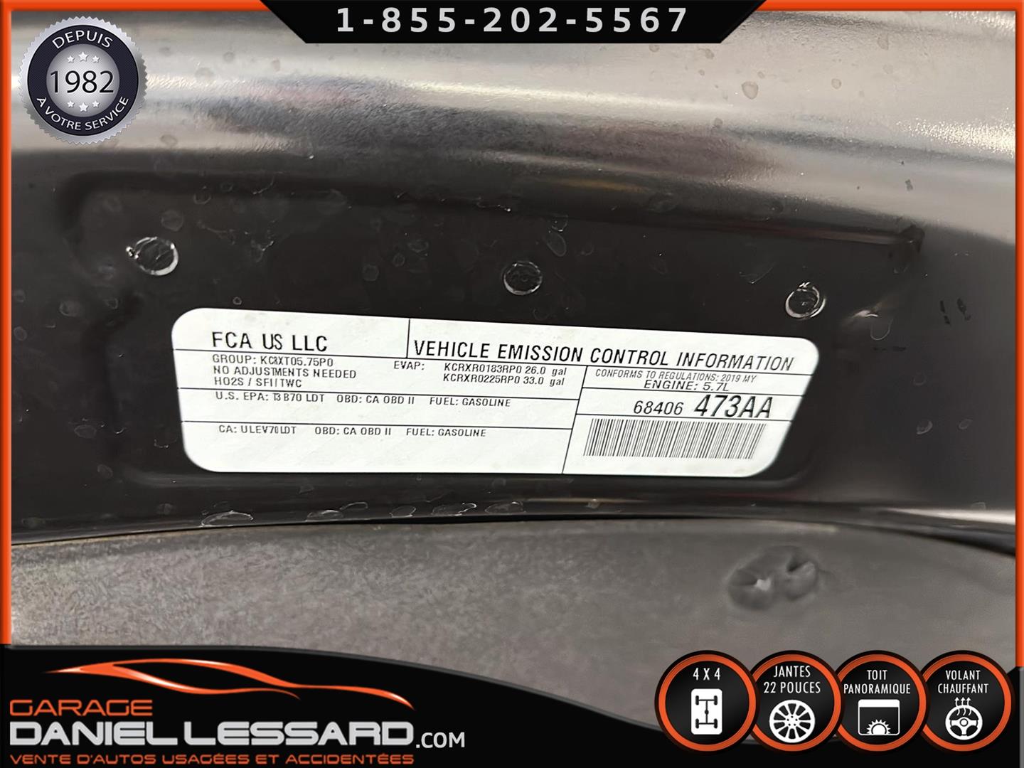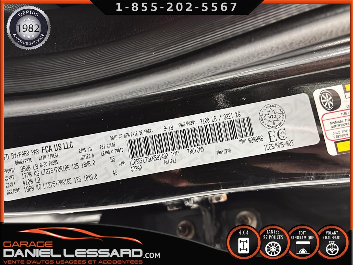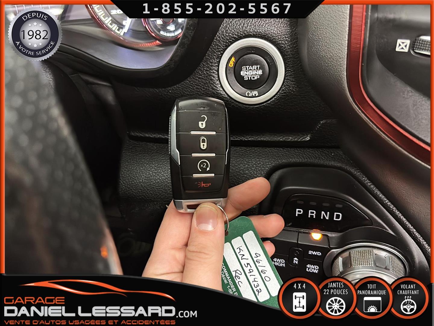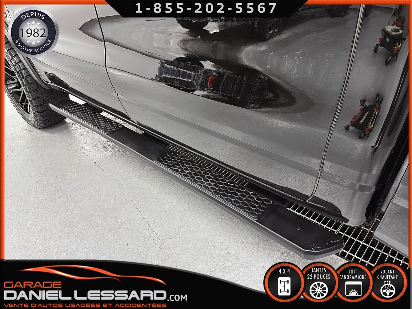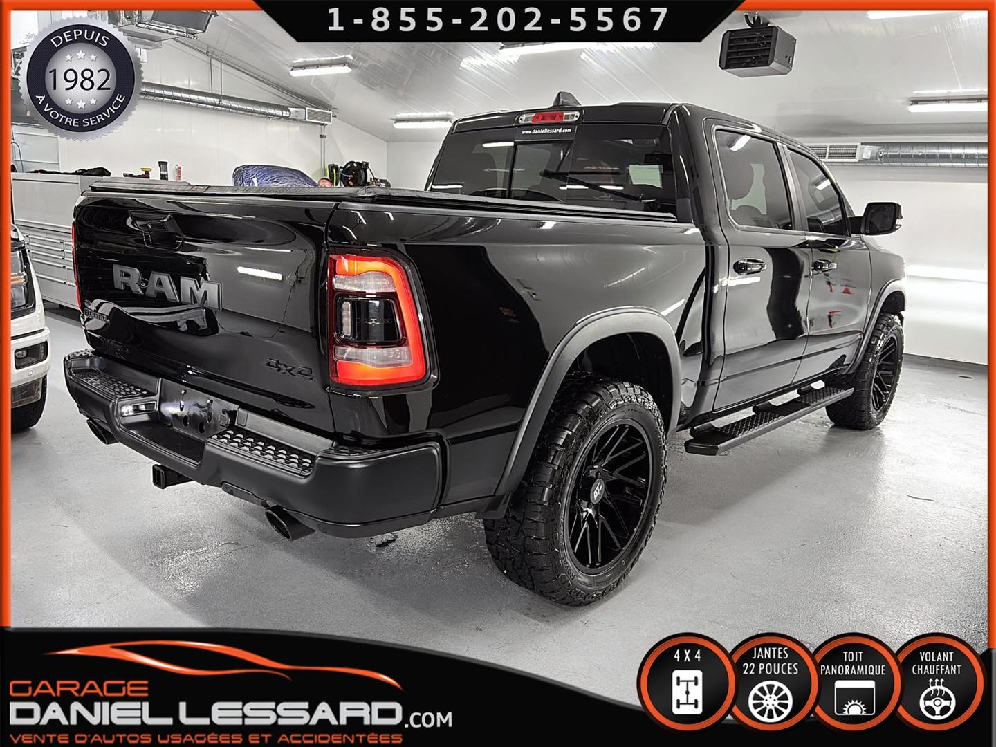 2019 RAM 1500 **REBEL** WITH 136 HP. 562 KM ON THE ODOMETER, CREWCAB WITH 4 FULL DOORS AND 5.7-FOOT BOX, BOX COVER INCLUDED, 5.7-LITER HEMI V-8 ENGINE, TWO-TONE BLACK AND RED LEATHER AND SUEDE INTERIOR, HEATED FRONT SEATS, HEATED STEERING WHEEL, LARGE PANORAMIC SUNROOF, PREMIUM ALPINE SOUND SYSTEM, 8.4-INCH TOUCHSCREEN DISPLAY, REARVIEW CAMERA WITH FRONT AND REAR PARKING SENSORS, DUAL-ZONE CLIMATE CONTROL, BLIND SPOT MONITORING, HIGH-INTENSITY HEADLIGHTS, FULL POWER GROUP FOR THE DRIVER, ORIGINAL TOW HITCH WITH 4-PIN WIRING INLET AND 7-STRAND BRAKES, FACTORY-INSTALLED ELECTRIC BRAKE CONTROL MOUNTED ON THE DASHBOARD, FITTED WITH 22-INCH ALLOY WHEELS AND ROYAL BLACK SPIDER R/T ALL-SEASON TIRES (35 X 12.50 R 22 LT), EXTERIOR RUNNING BOARDS, READY TO DRIVE, FACTORY-INSTALLED REMOTE STARTER, AND MUCH MORE! A VERY NICE TRUCK AVAILABLE NOW, UP-TO-DATE MAINTENANCE, 1-MONTH/1700 KM WARRANTY INCLUDED. FINANCING AVAILABLE, CONTACT US FOR MORE INFORMATION OR TO SCHEDULE AN APPOINTMENT!