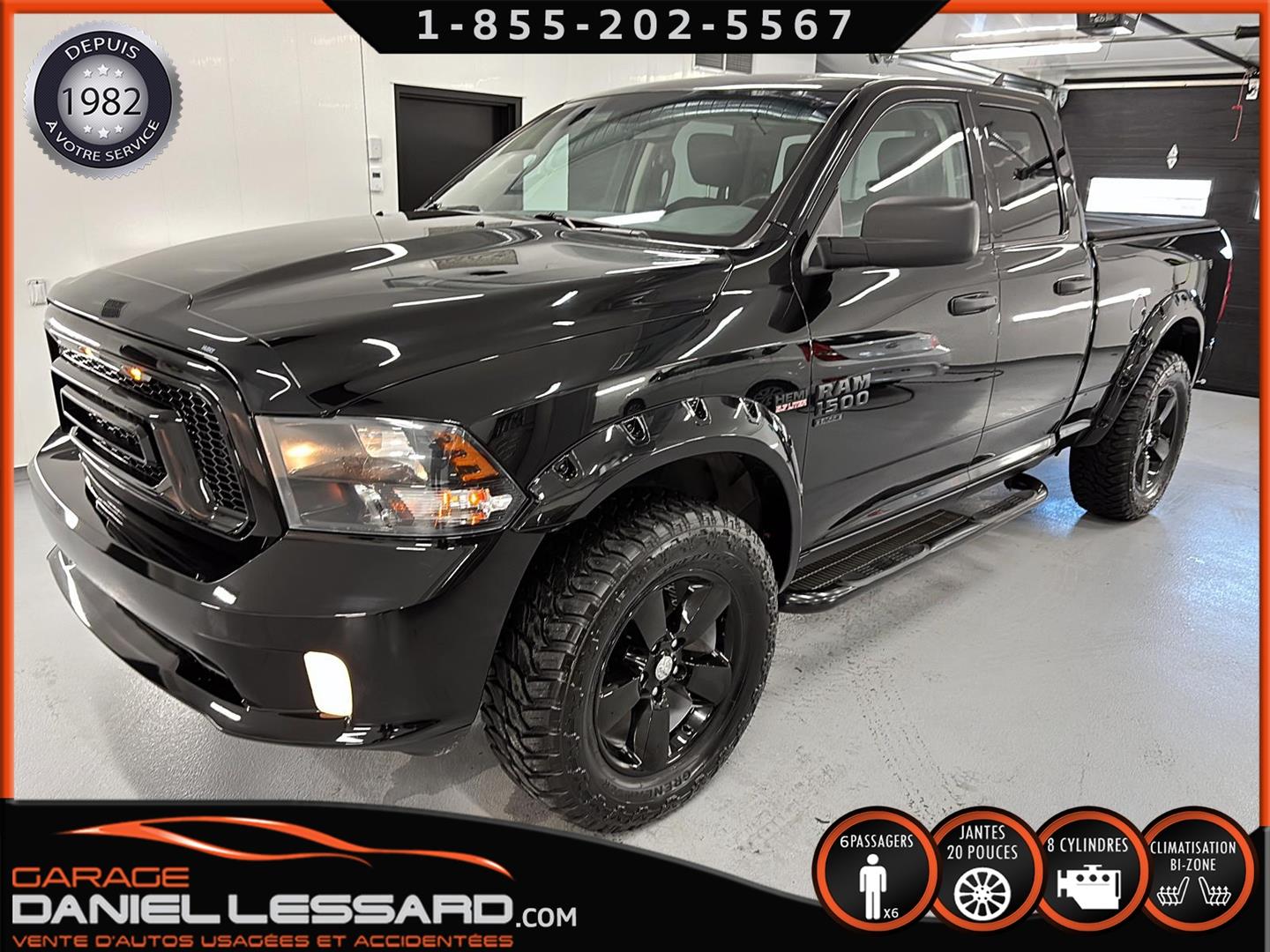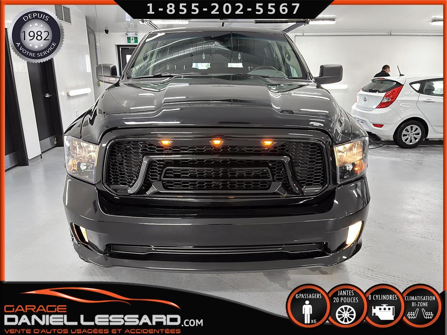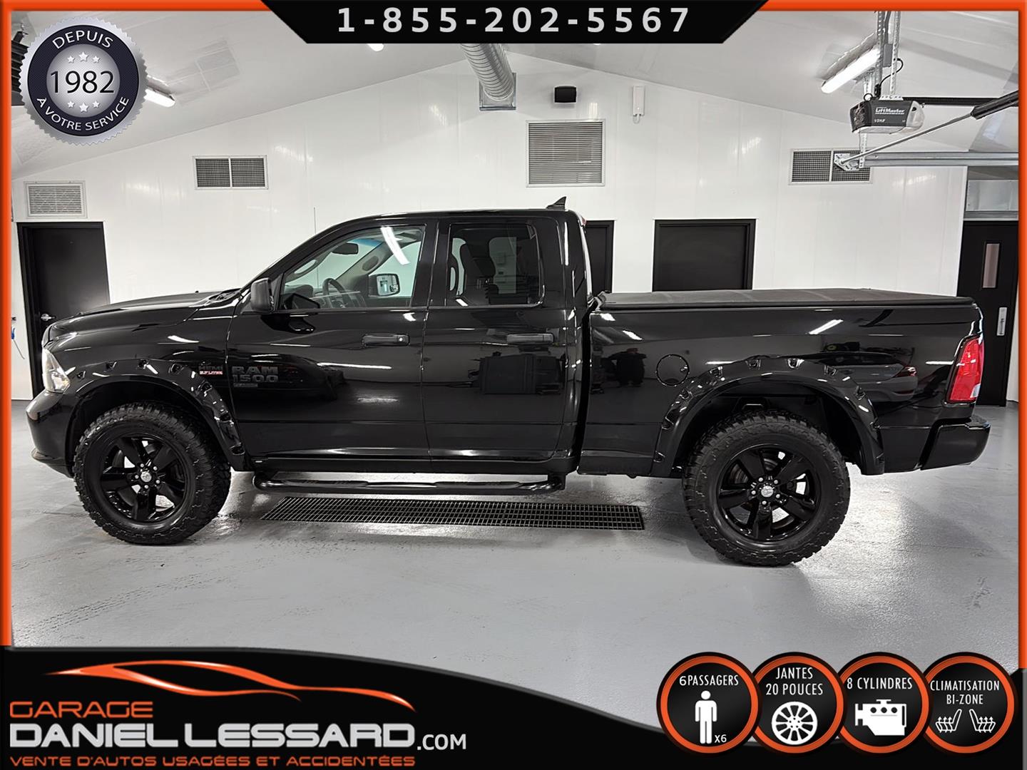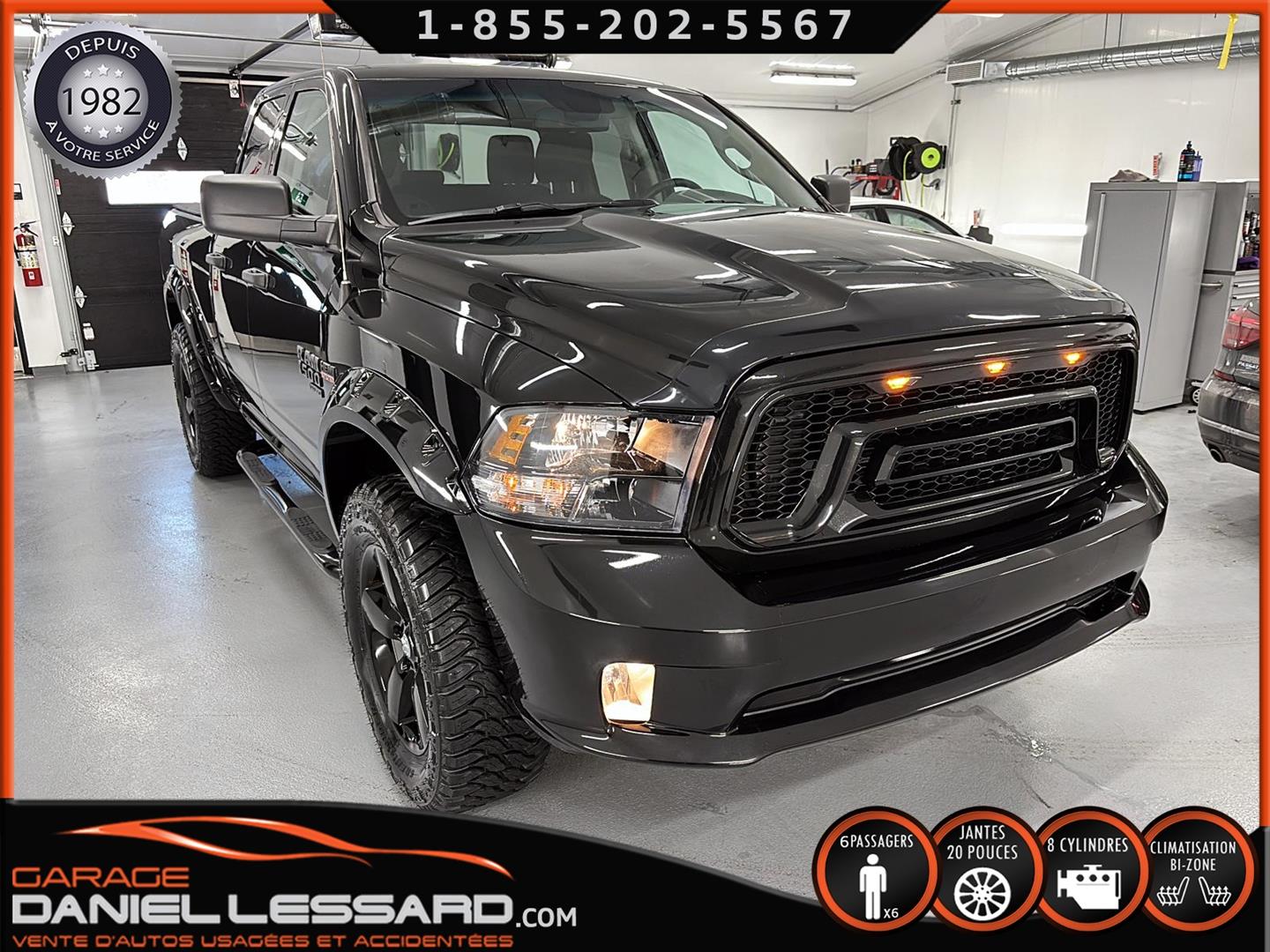 RAM 1500 CLASSIC EXPRESS QUAD CAB 4X4 NIGHT EDITION, DE COULEUR NOIR, MOTEUR V8 HEMI 5,7 L, TRANSMISSION AUTOMATIQUE TORQUEFLITE À 8 VITESSES, AVEC 120073KM GROUPE ÉLECTRIQUE, CAMION 6 PLACES AVEC CONSOLE 40-20-40 MARCHEPIEDS LATÉRAUX TUBULAIRES NOIRS ARIES, ÉCRAN TACTILE DE 8,4 POUCES, CLIMATISATION AVEC RÉGLAGE AUTOMATIQUE BI-ZONE, APPLE CARPLAY, ANDROID AUTO, CAMÉRA DE RECUL PARKVIEW, ATTELAGE REMORQUE AVEC FILAGE 4 ET 7 BRINS MUNIE AUSSI DE LA BOITE DE FREIN ÉLECTRIQUE DE CIE , NOUS AVONS JUSTE UNE CLÉ, PETIT LEVELIG KIT, TOUR D'AILE POCKET STYLE PEINT, PROTÈGE ROCKER HUSKY, SPACER DE ROUE, MAG 20 POUCE GRIS AVEC CAP NOIR LUSTRÉ AVEC SUR PNEUS HOMOLOGUER GRENLANDER PREDATOR M/T 35X12.50R20LT,