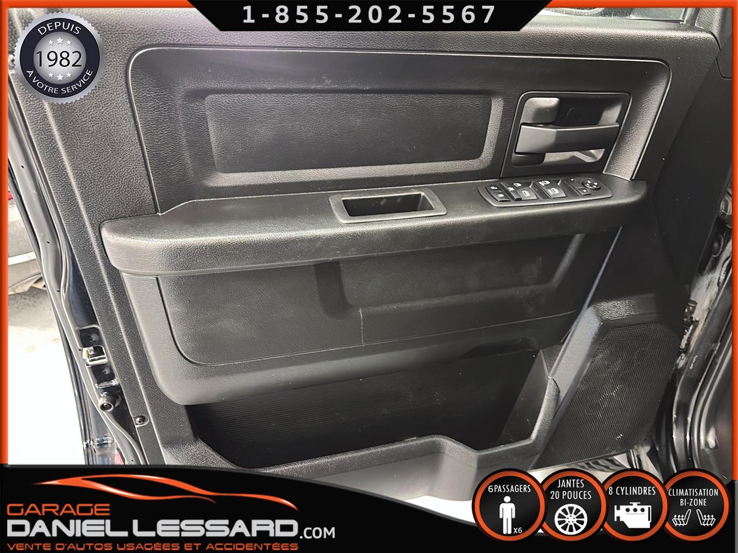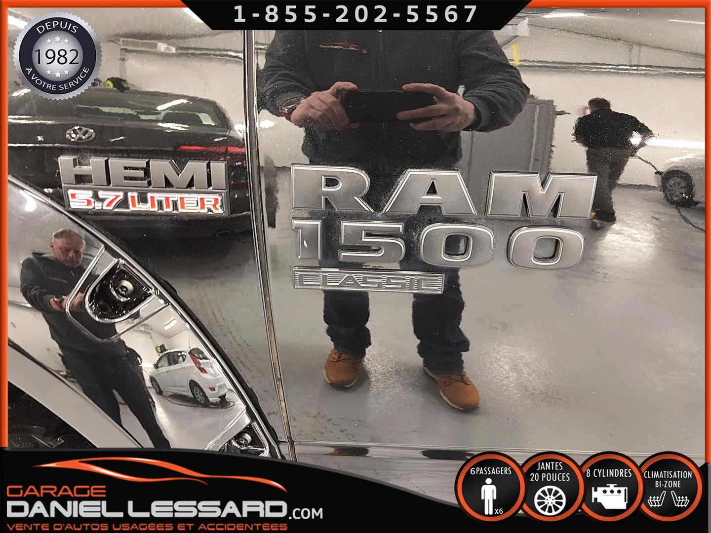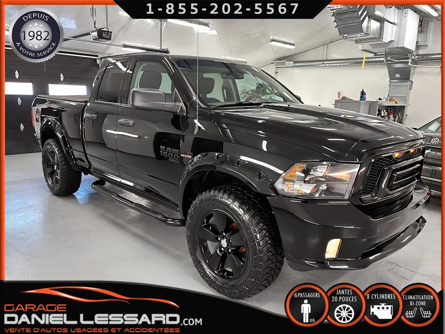 RAM 1500 CLASSIC EXPRESS QUAD CAB 4X4 NIGHT EDITION, DE COULEUR NOIR, MOTEUR V8 HEMI 5,7 L, TRANSMISSION AUTOMATIQUE TORQUEFLITE À 8 VITESSES, AVEC 120073KM GROUPE ÉLECTRIQUE, CAMION 6 PLACES AVEC CONSOLE 40-20-40 MARCHEPIEDS LATÉRAUX TUBULAIRES NOIRS ARIES, ÉCRAN TACTILE DE 8,4 POUCES, CLIMATISATION AVEC RÉGLAGE AUTOMATIQUE BI-ZONE, APPLE CARPLAY, ANDROID AUTO, CAMÉRA DE RECUL PARKVIEW, ATTELAGE REMORQUE AVEC FILAGE 4 ET 7 BRINS MUNIE AUSSI DE LA BOITE DE FREIN ÉLECTRIQUE DE CIE , NOUS AVONS JUSTE UNE CLÉ, PETIT LEVELIG KIT, TOUR D'AILE POCKET STYLE PEINT, PROTÈGE ROCKER HUSKY, SPACER DE ROUE, MAG 20 POUCE GRIS AVEC CAP NOIR LUSTRÉ AVEC SUR PNEUS HOMOLOGUER GRENLANDER PREDATOR M/T 35X12.50R20LT,