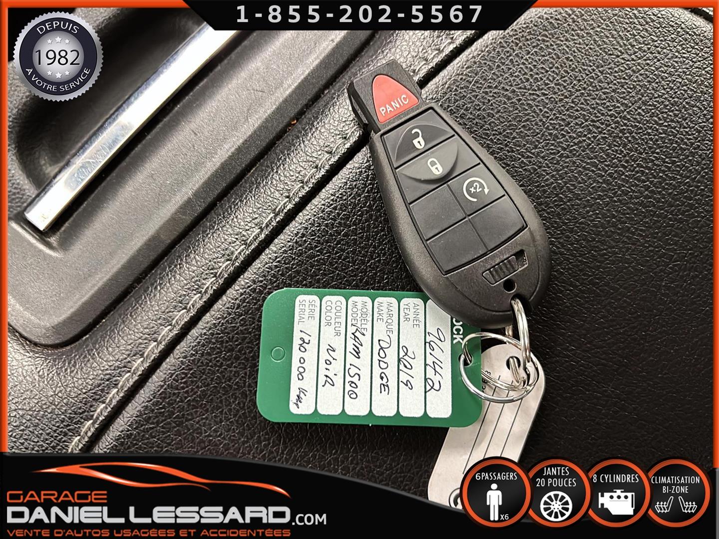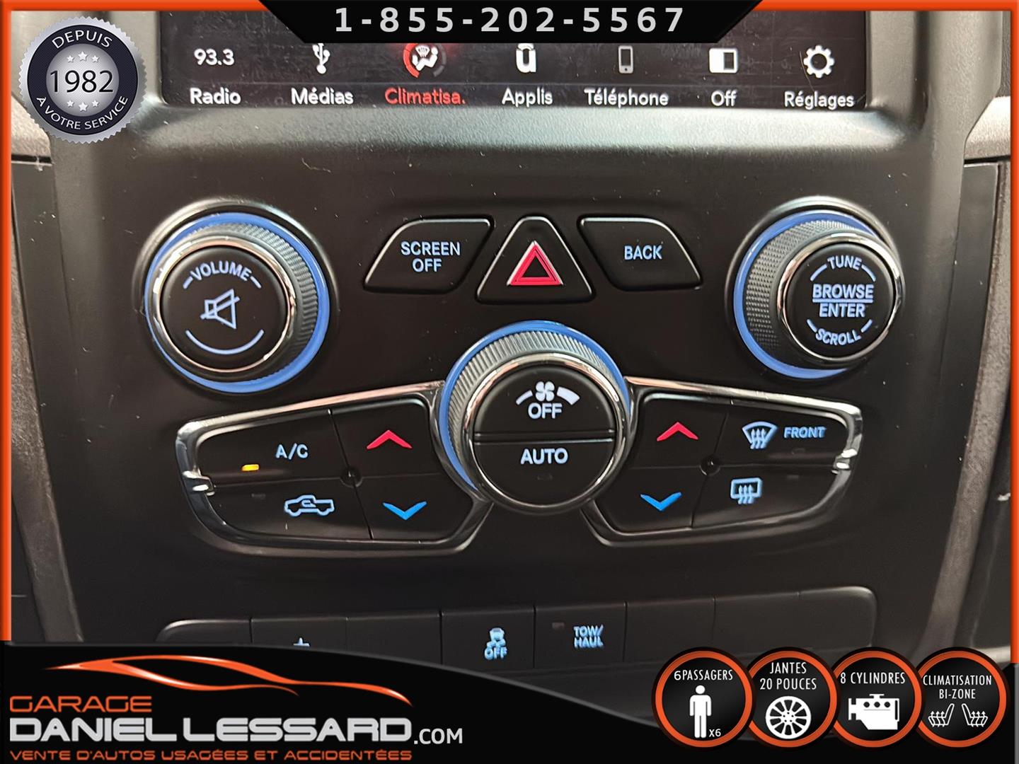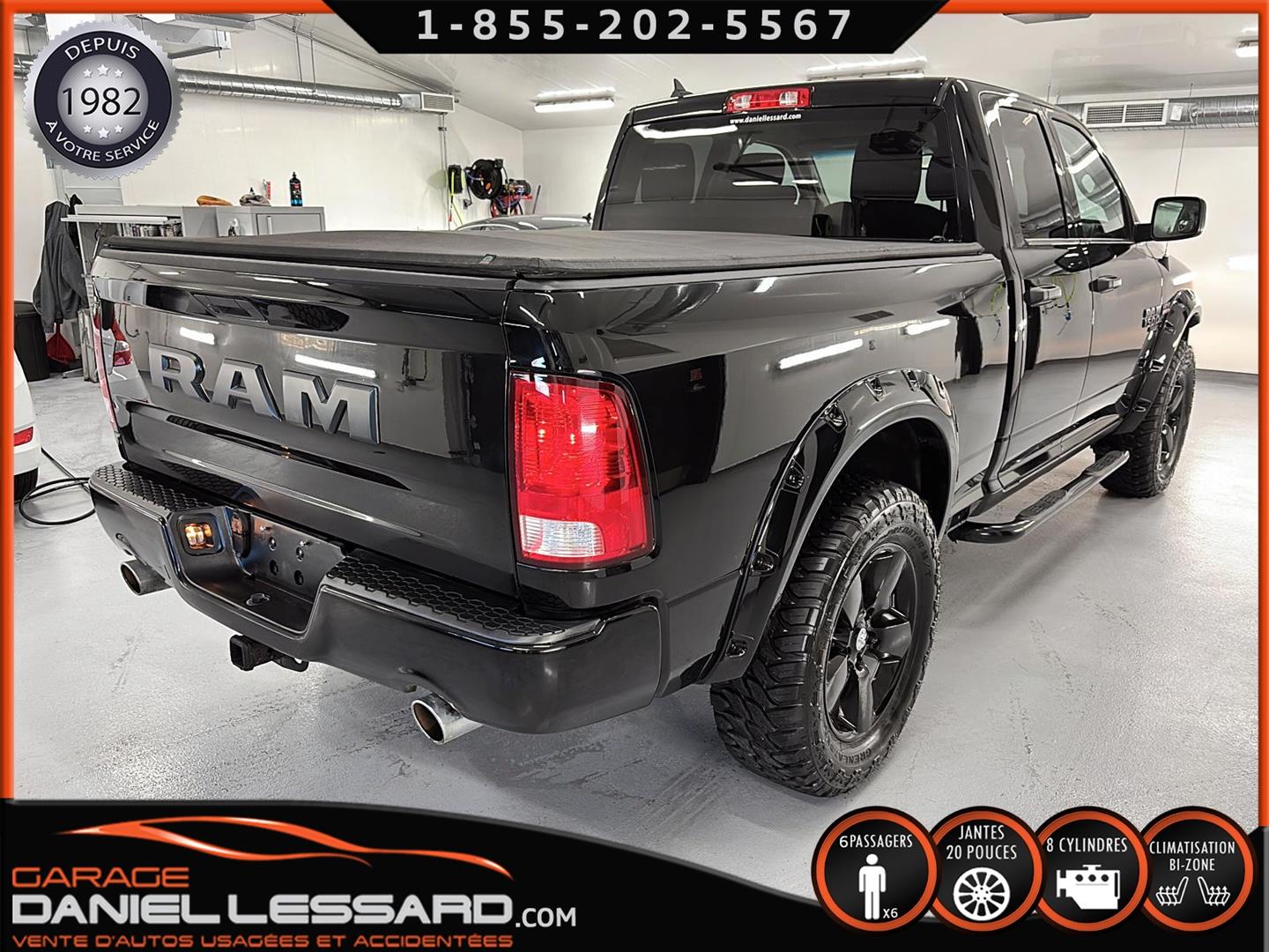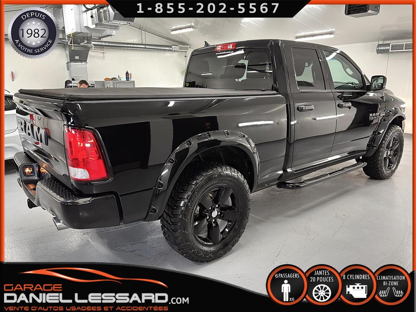 RAM 1500 CLASSIC EXPRESS QUAD CAB 4X4 NIGHT EDITION, DE COULEUR NOIR, MOTEUR V8 HEMI 5,7 L, TRANSMISSION AUTOMATIQUE TORQUEFLITE À 8 VITESSES, AVEC 120073KM GROUPE ÉLECTRIQUE, CAMION 6 PLACES AVEC CONSOLE 40-20-40 MARCHEPIEDS LATÉRAUX TUBULAIRES NOIRS ARIES, ÉCRAN TACTILE DE 8,4 POUCES, CLIMATISATION AVEC RÉGLAGE AUTOMATIQUE BI-ZONE, APPLE CARPLAY, ANDROID AUTO, CAMÉRA DE RECUL PARKVIEW, ATTELAGE REMORQUE AVEC FILAGE 4 ET 7 BRINS MUNIE AUSSI DE LA BOITE DE FREIN ÉLECTRIQUE DE CIE , NOUS AVONS JUSTE UNE CLÉ, PETIT LEVELIG KIT, TOUR D'AILE POCKET STYLE PEINT, PROTÈGE ROCKER HUSKY, SPACER DE ROUE, MAG 20 POUCE GRIS AVEC CAP NOIR LUSTRÉ AVEC SUR PNEUS HOMOLOGUER GRENLANDER PREDATOR M/T 35X12.50R20LT,