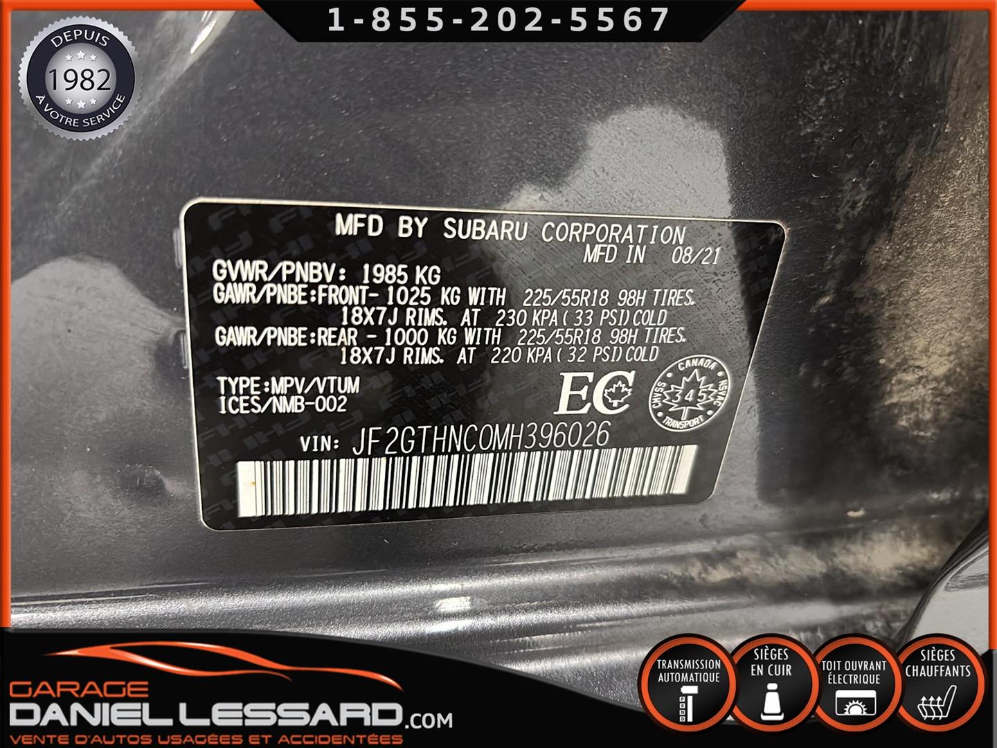 2021 SUBARU CROSSTREK LIMITED AWD, 2.5-LITER ENGINE, AUTOMATIC, LEATHER INTERIOR, POWER DRIVER'S SEAT, HEATED FRONT SEATS, AUDIO CONTROL, PHONE, CRUISE CONTROL AND STEERING WHEEL SHIFTERS, DUAL-ZONE CLIMATE CONTROL, SUNROOF, NAVIGATION, BACKUP CAMERA, SIRIUS, X-MODE, STOP & GO, HARMAN/KARDON SOUND SYSTEM, ORIGINAL ALLOY WHEELS WITH TIRES TOYO OBSERVE GSI 6 WINTER 225/55/18 WITH 30% WEAR, FOG LIGHTS, TINTED WINDOWS, LUGGAGE RACK, TRACTION CONTROL, ONE KEY AND ONE REMOTE STARTER, OWNER'S BOOK, CLOTH CARMAT AND LUGGAGE COVER