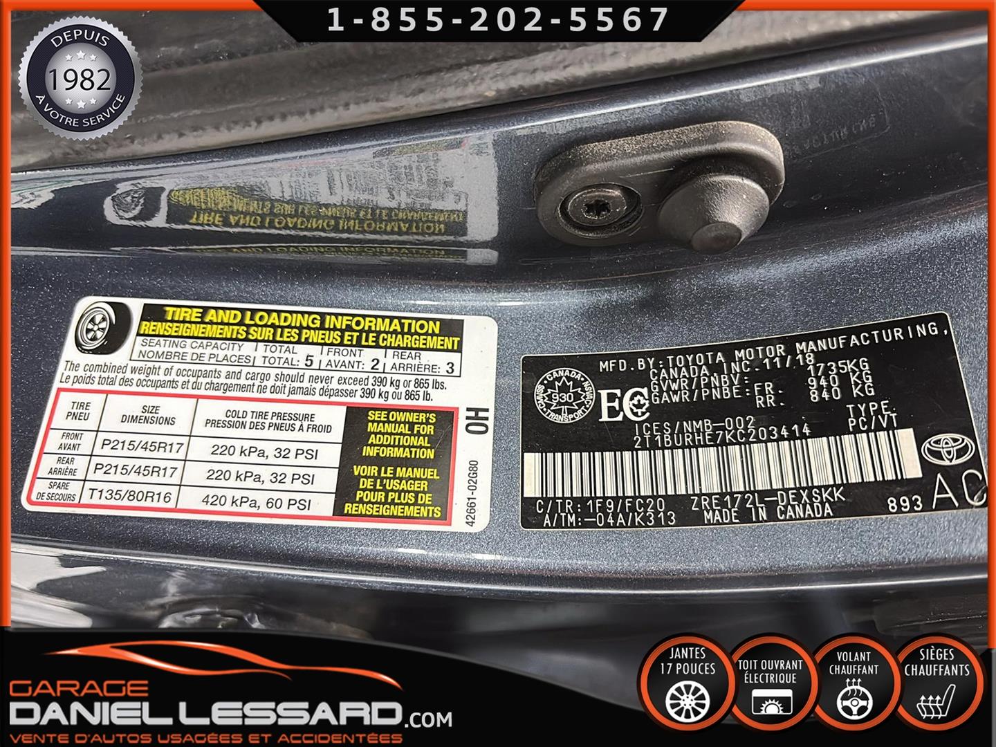 TOYOTA COROLLA SE UPGRADE, TRANSMISSION AUTOMATIQUE, MAG 17" SUR PNEUS GT RADIAL CHAMPIRO TOURING 215/45/17, MOTEUR 1.8 LITRES, AIR CLIMATISÉ, CRUISE CONTROLE, SIÈGES AVANT SPORT CHAUFFANTS AVEC LE REVÊTEMENT EN TISSU SPORT AVEC GARNITURE EN SIMILICUIR, TOIT OUVRANT, VOLANT CHAUFFANT, BLUETOOTH, NOUS AVONS SEULEMENT 1 CLÉ, VÉHICULE PRÊT À PARTIR, FINANCEMENT DISPONIBLE!!