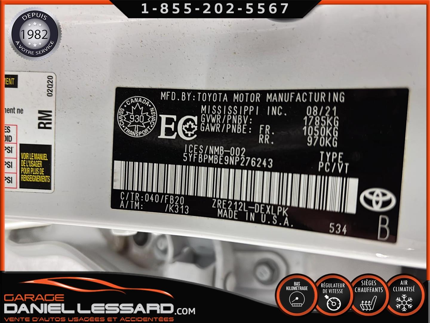2022 LE MODEL, POWER GROUP, NO VGA / NO MENTION ON VEHICLE RECORDS (SEE LAST 4 PHOTOS BEFORE REPAIR). HAS BEEN IN AN ACCIDENT IN THE PAST, SEE ATTACHED CARFAX, FULLY INSPECTED BY OUR TECHNICIANS, 3 MONTH OR 5000 KM WARRANTY, FINANCING AVAILABLE, MORE DETAILS AND PHOTOS AT WWW.DANIELLESSARD.COM
