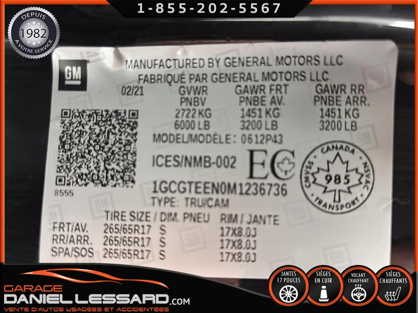 CONTACTEZ L'UN DE NOS CONSEILLERS QUALIFIÉS POUR PLUS DE DÉTAILS ! PLUSIEURS VÉHICULES DE TOUTES MARQUES DISPONIBLES AU WWW.DANIELLESSARD.COM, LA PLACE POUR MAGASINER VOTRE VÉHICULE JAMAIS ACCIDENTÉ, RÉPARÉ OU ENDOMMAGÉ. PLUS DE 100 VÉHICULES DISPONIBLES. ARRIVAGES QUOTIDIENS !!! FINANCEMENT ET GARANTIE PROLONGÉE DISPONIBLES ! NOUS REPRENONS LES ÉCHANGES. NOUS AVONS UN LARGE RÉSEAU DE CARROSSIERS EXPERTS À VOTRE DISPOSITION POUR VOTRE SERVICE DE RÉPARATION CLÉ EN MAIN. NOS VÉHICULES PRÊTS À PARTIR SONT INSPECTÉS AU COMPLET PAR NOUS ET LA SAAQ, VENDUS AVEC GARANTIE. NOUS SOMMES OUVERTS DU LUNDI AU VENDREDI 8:00 À 17:00 ET LE SAMEDI AU 9:00 À 12:00. VISITEZ NOTRE PAGE FACEBOOK ! AU PLAISIR DE VOUS RENCONTRER!.