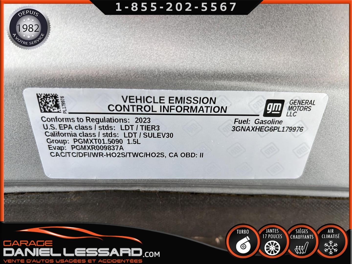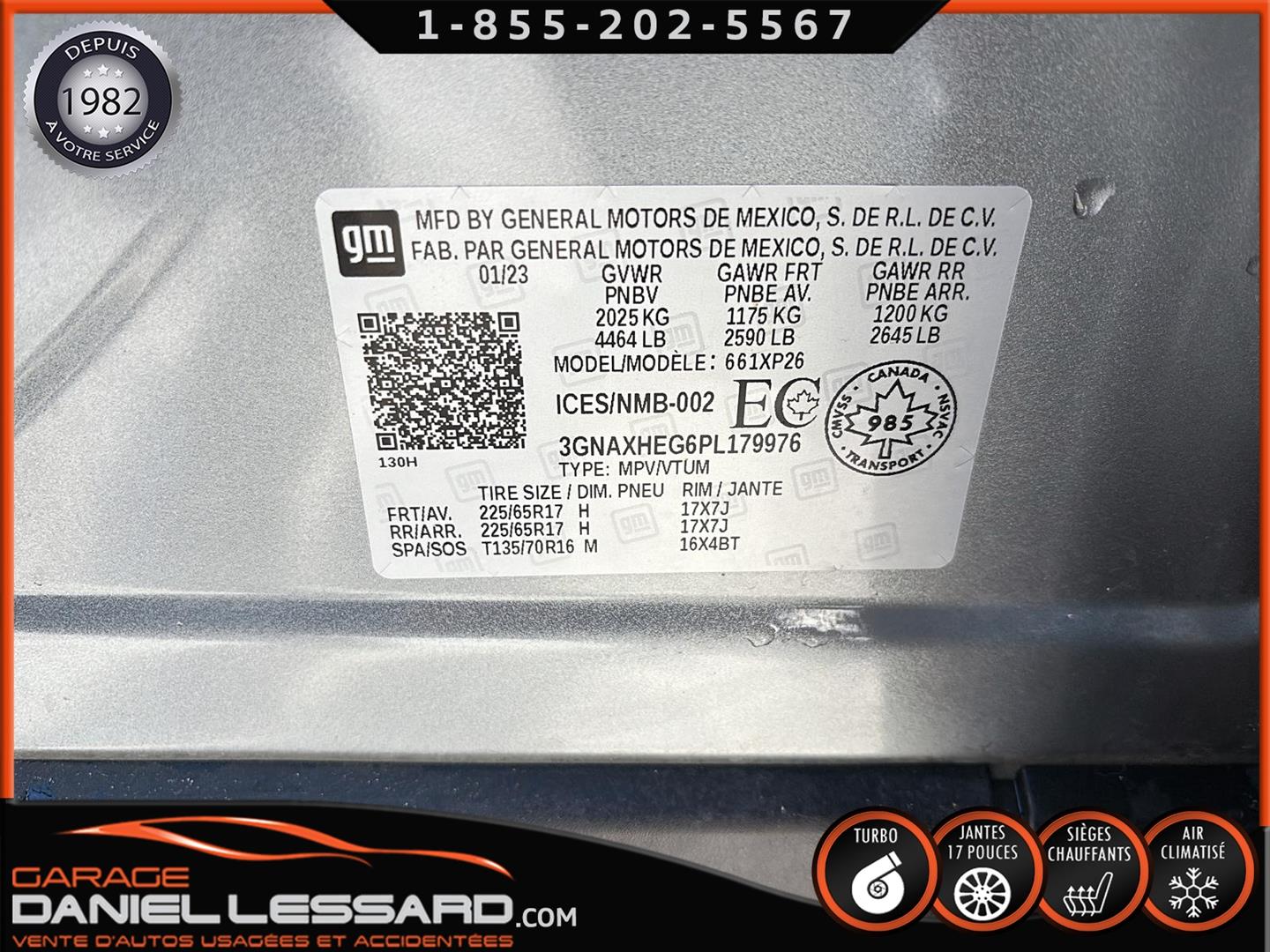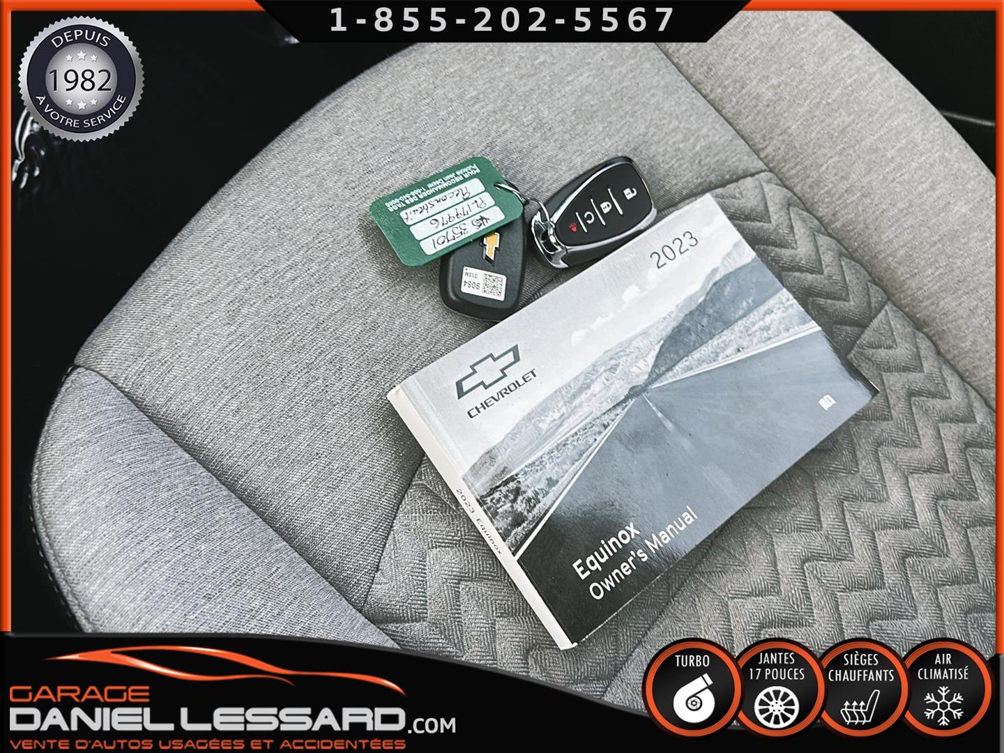 CHEVROLET EQUINOX LS TRACTION AVANT 2023, GROUPE D'ÉQUIPEMENTS PRIVILÉGIÉS 1LS, COULEUR GRIS STERLING MÉTALLISÉ, MOTEUR TURBO DOHC 4 CYLINDRES DE 1,5 L, TRANSMISSION AUTOMATIQUE ÉLECTRONIQUE À 6 VITESSES, JANTES EN ALUMINIUM DE 17 POUCES AVEC PNEUS MICHELIN PRIMACY 225/65/17, ASSISTANCE AU MAINTIEN DE VOIE, AVERTISSEMENT DE SORTIE DE VOIE, ALERTE DE COLLISION FRONTALE, SIÈGES AVANT CHAUFFANTS, CLIMATISATION, APPLE CARPLAY ET ANDROID AUTO POUR TÉLÉPHONES COMPATIBLES, BLUETOOTH POUR TÉLÉPHONE, DÉMARRAGE À DISTANCE DU VÉHICULE. NOUS POSSÉDONS LES DEUX CLÉS ET LE MANUEL DU PROPRIÉTAIRE..