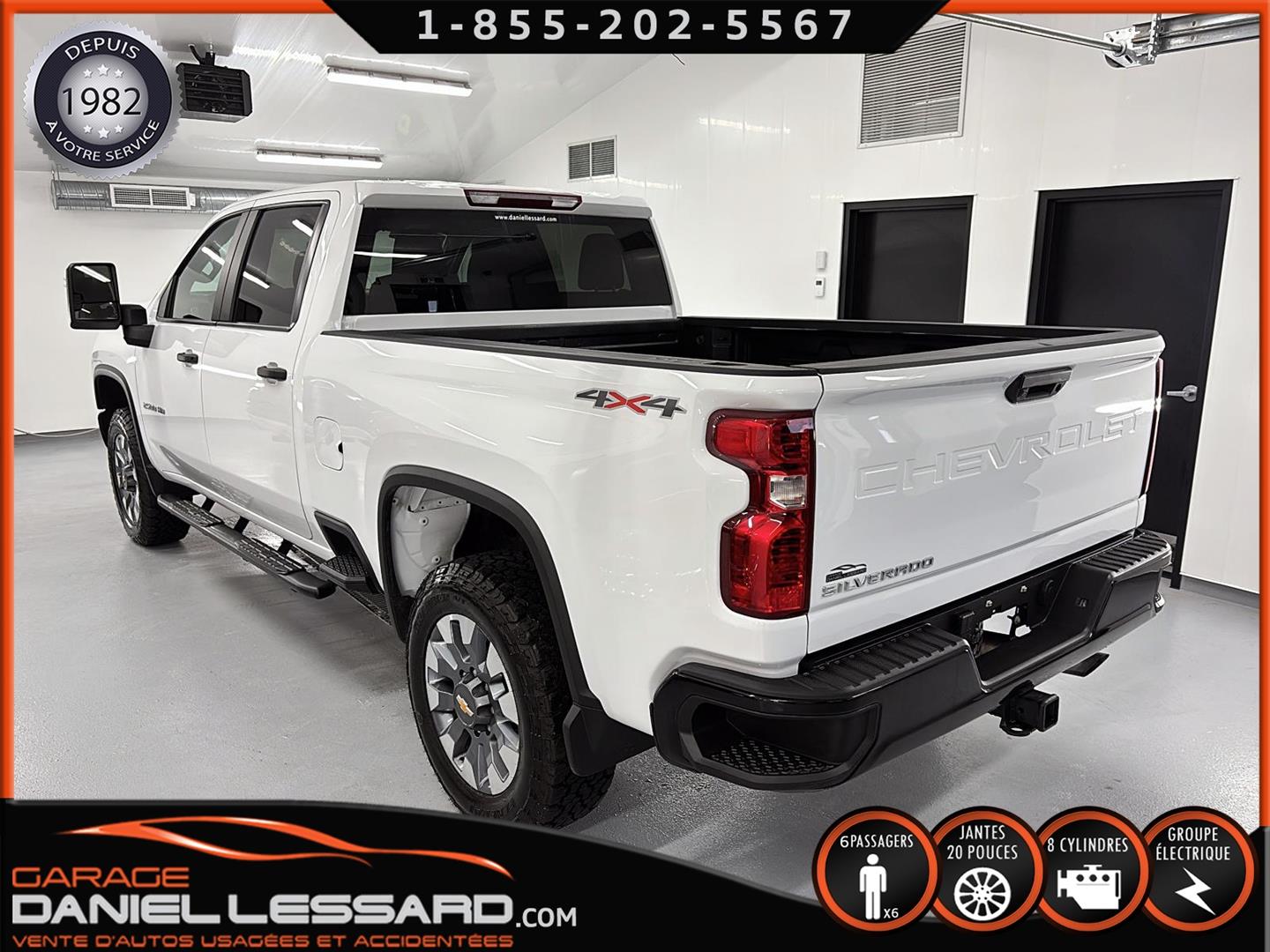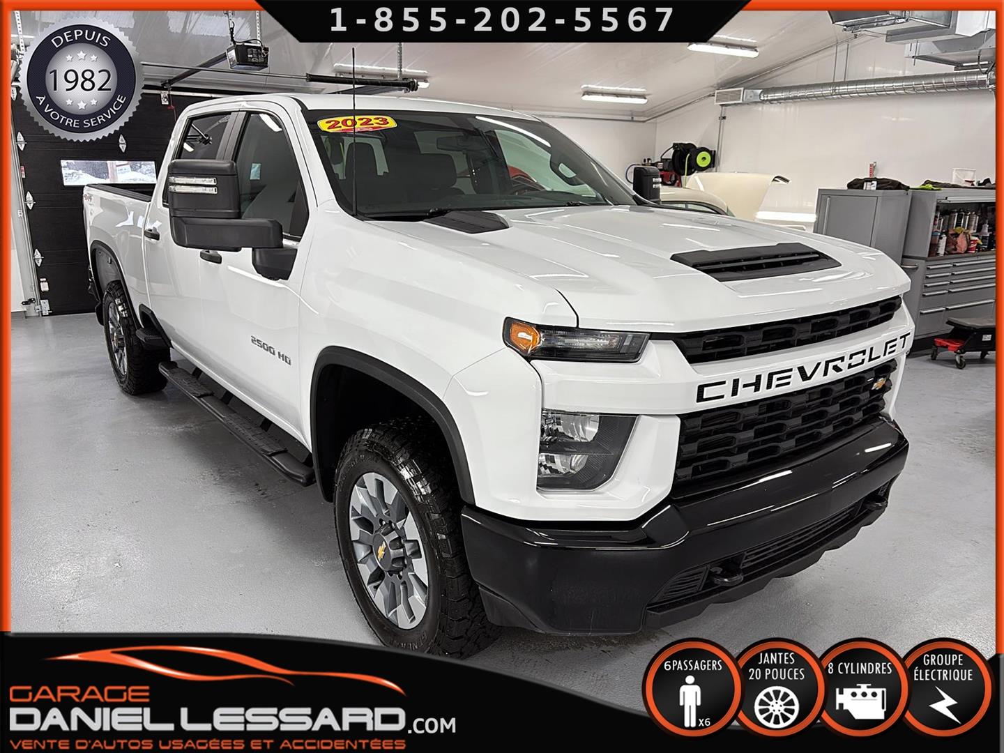 CHEVROLET SILVERADO 2500 CUSTOM 2023 CREW CAB BOITE DE 6.5', 4X4, MOTEUR V8 DE 6.6 LITRES AU GAZ, TRANSMISSION 6 VITESSES, RATIO 3.73, CAPACITÉ DE REMORQUAGE JUSQU'À 14500 LBS, MAGS 20'' AVEC PNEUS NEUFS HOMOLOGER GENERAL GRABBER A/T X LT275/65/20, MARCHE PIED, MIROIR EXTENSIBLE, HITCH ET BOITE DE FREIN ÉLECTRIQUE, AIR CLIMATISÉ, RADIO COMPATIBLE APPLE CARPLAY, CAMÉRA DE RECUL, BOITE EN LINER SHOOTER, 6 PLACES, PRISE USB-A ET USB-C, NOUS AVONS 1 CLÉ ET LE MANUEL DU PROPRIÉTAIRE