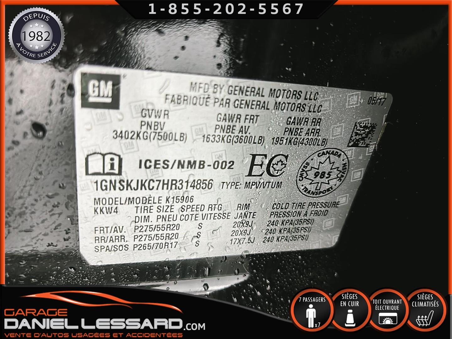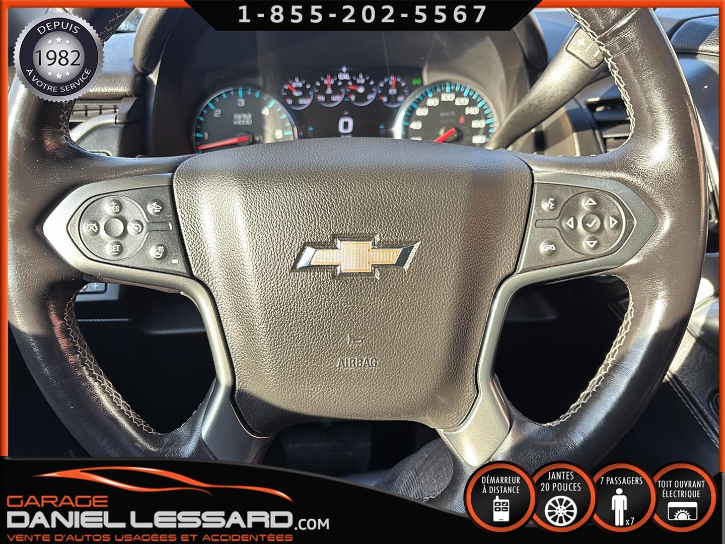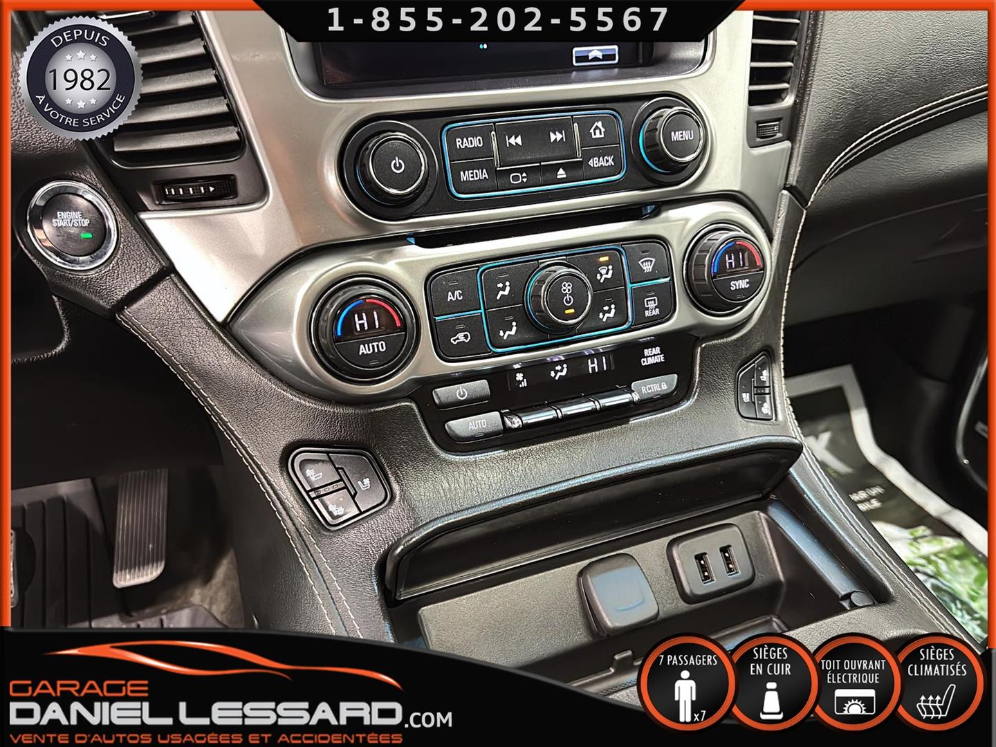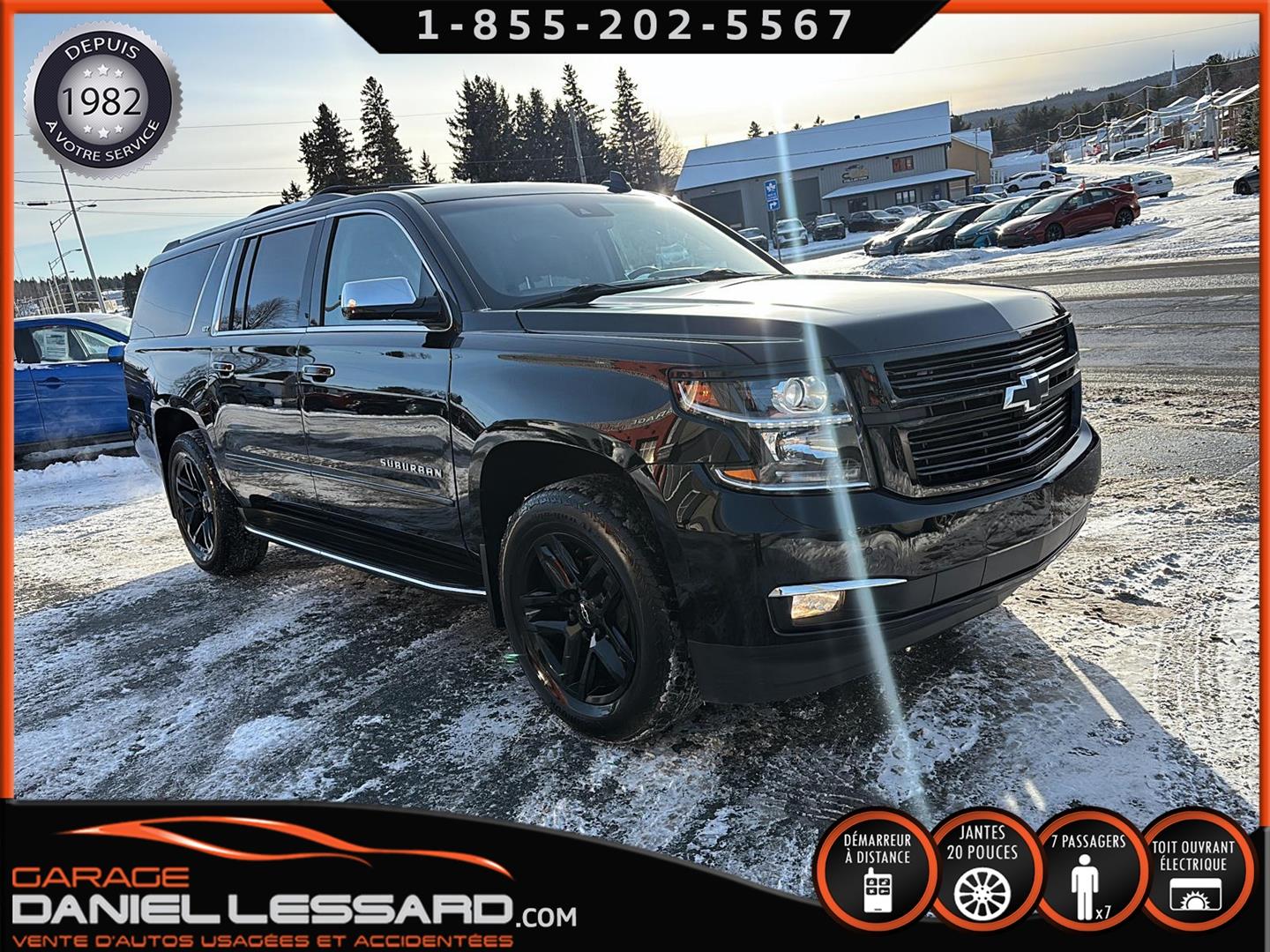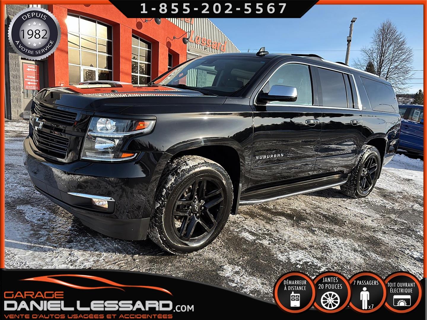 ------------------------------------------------------------------------------------------------------------------------------------------------------------------------------------------------MAGNIFIQUE CHEVROLET SUBURBAN PREMIER LTZ 2017, LA VERSION *PREMIER* AVEC GROUPE LTZ EST LA PLUS ÉQUIPÉ OFFERTE SUR LE MARCHÉ POUR LE SUBURBAN !!! COULEUR NOIR! TRACTION 4X4 AVEC UN PUISSANT MOTEUR 5.3 LITRES V-8, TRANSMISSION AUTOMATIQUE À 6 RAPPORTS, VERSION 7 PASSAGÉS(SIÈGES CAPITAINE) DANS LA RANGÉE DU MILIEU, INTÉRIEUR EN CUIR NOIR LUXUEUX, GROUPE ÉLECTRIQUE COMPLET AVEC LE SIÈGE CONDUCTEUR À DOUBLE MÉMOIRE, TOIT OUVRANT ÉLECTRIQUE, AFFICHAGE SUR GRANDE ÉCRAN DE BORD TACTILE AVEC NAVIGATION GPS D'ORIGINE, CAMERA DE RECUL AVEC SENSORS DE RAPPROCHEMENT ARRIÈRE, SYSTEME DE SON *BOSE* HAUTE GAMME, DÉTECTEUR D'ANGLES MORT, SYSTÈME ALLERTE-COLLISION, VOLANT CHAUFFANT, SIÈGES AVANT CHAUFFANT ET CLIMATISÉ A TRIPLE INTENSITÉ, GROUPE REMORQUAGE COMPLET AVEC FREINS ÉLECTRIQUE D'ORIGINE MONTÉ AU TABLEAU DE BORD, HITCH 2 POUCES AVEC ENTRÉ POUR FILAGE 4/7 BRINS, MODE TOW/HAUL, HAYON ÉLECTRIQUE, COMMANDE MONTÉ AU VOLANT AVEC BLUETOOTH, CRUSE CONTROLE ET BIEN PLUS, AIR CLIMATISÉ DOUBLE ZONE, MARCHE-PIEDS EXTÉRIEUR, RACK DE TOIT LATÉRALE, MULTIPLE PRISES DE TOUTE SORTE (USB, 12 V ET AUTRES), ET BEAUCOUP, BEAUCOUP PLUS ENCORE, LISTE D'ÉQUIPEMENT INTERMINABLE, CHAUSSÉ SUR MAGS 20POUCES AVEC PNEUS HANKOOK DYNAPRO AT2 225/60/20, NOUS AVONS DEUXCLEFS POUR LE VÉHICULE QUI DÉMARRE AU BOUTON PUSHSTART (SUR LE VIDEO IL Y A 3 CLEFS MAIS UNE D'ENTRE ELLE NE FONCTIONNAIT PAS, DONC VIENT VRAIMENT AVEC 2 CLÉS), DÉMARREUR À DISTANCE INTÉGRÉ D'ORIGINE ET ENTRÉ SANS CLEF KEYLESS. VIENS AVEC DES BEAUX TAPIS 4 SAISONS D'ORIGINE, VÉHICULE A VOIR SANS FAUTE, VALEUR DE PLUS DE 100 000$ À L'ACHAT NEUF, BREF UN DEAL !!! RECONSTRUIT, GARANTIE 1MOIS / 1700 KM INCLUSE, ÉCHANGE ACCEPTÉ ET FINANCEMENT DISPONIBLE, PRÊT A PARTIR POUR UNE LIVRAISON RAPIDE INFORMEZ-VOUS AU PRÈS DE VOTRE CONSEILLER POUR PRENDRE RENDEZ-VOUS ET VENIR EN FAIRE L’ESSAI ! ÉGALEMENT POSSIBILITÉ DE GARANTIE PROLONGÉE, A VOIR SANS FAUTE WOW TOUT QU’UN VUS !!!.