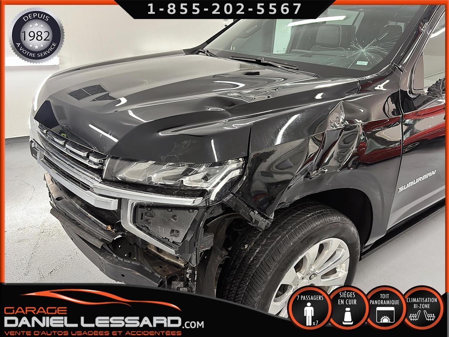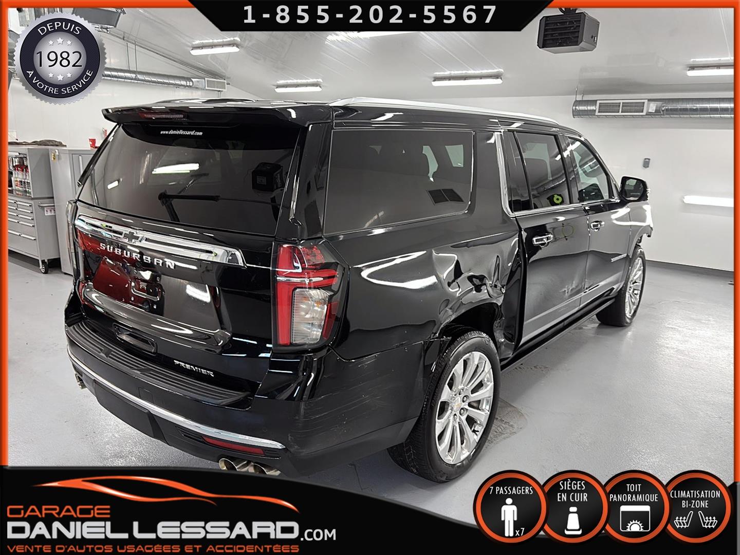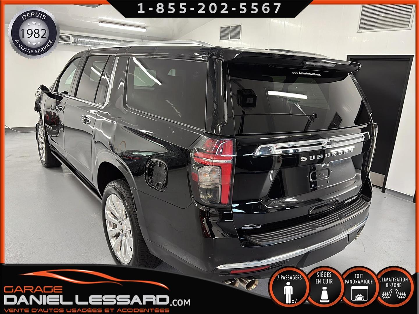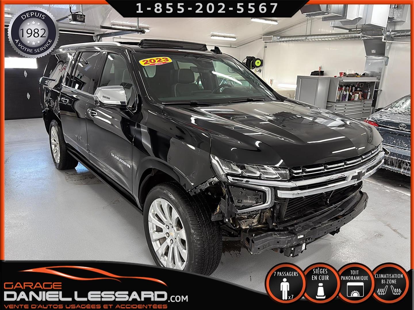 CHEVROLET SUBURBAN 4WD ** PREMIER ** 2023, AVEC LE PREMIUM PACKAGE ( OPTION GM DE 4705$ ) BAS KM, MOTEUR V-8 DE 5.3 LITRES, BUCKET SEAT 7 PLACES, GROUPE ÉLECTRIQUE PLUS QUE COMPLET, BANC AVANT ÉLECTRIQUE CHAUFFANT ET CLIMATISÉ, BANC 2 IÈMES RANGÉ CHAUFFANT, SYSTÈME DE NAVIGATION, RADIO SATELLITE, 2 TÉLIVISION APRÈS LE DOS DES 2 BANCS AVANT ( OPTION GM DE 2295$ ) CAMERA ET SENSOR DE PROXIMITÉ, TOIT OUVRANT PANORAMIQUE, MAGS 22 POUCES POLI ( OPTION GM DE 2280$ ) AVEC PNEU D'ÉTÉ BRIGESTONE 275 / 50 / 22 AVEC 30% D'USURE , MARCHEPIEDS ÉLECTRIQUE ( OPTION GM DE 1995$ ), BLACK EMBLEMS ( OPTION DE 235$ ) ENSEMBLE REMORQUAGE ( MAX TRAILERING PACKAGE ) AVEC MODULE DE FREIN INTÉGRÉ, MODE 2HI, 4 HI ET 4 LO, SYSTÈME DE SON BOSE, 1 CLÉ AVEC DÉMARREUR A DISTANCE ET TAPIS DE TISSUS