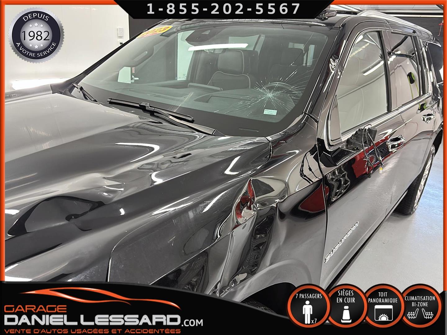 MODÈLE PREMIER + PREMIUM PACKAGE 4WD, VALEUR DE PLUS DE 100 000$ PLUS TAXES NEUF EN 2023 !! 7 PLACES, CUIR, TOIT PANORAMIQUE, 2 TÉLÉVISION ARRIÈRE, BANC VENTILLÉ A L'AVANT, GROUPE REMORQUAGE, MAGS 22 POUCES ET BEAUCOUP PLUS ENCORE, PRÉSENTEMENT ACCIDENTÉ, PLUS DE DÉTAILS ET PHOTOS AU WWW.DANIELLESSARD.COM