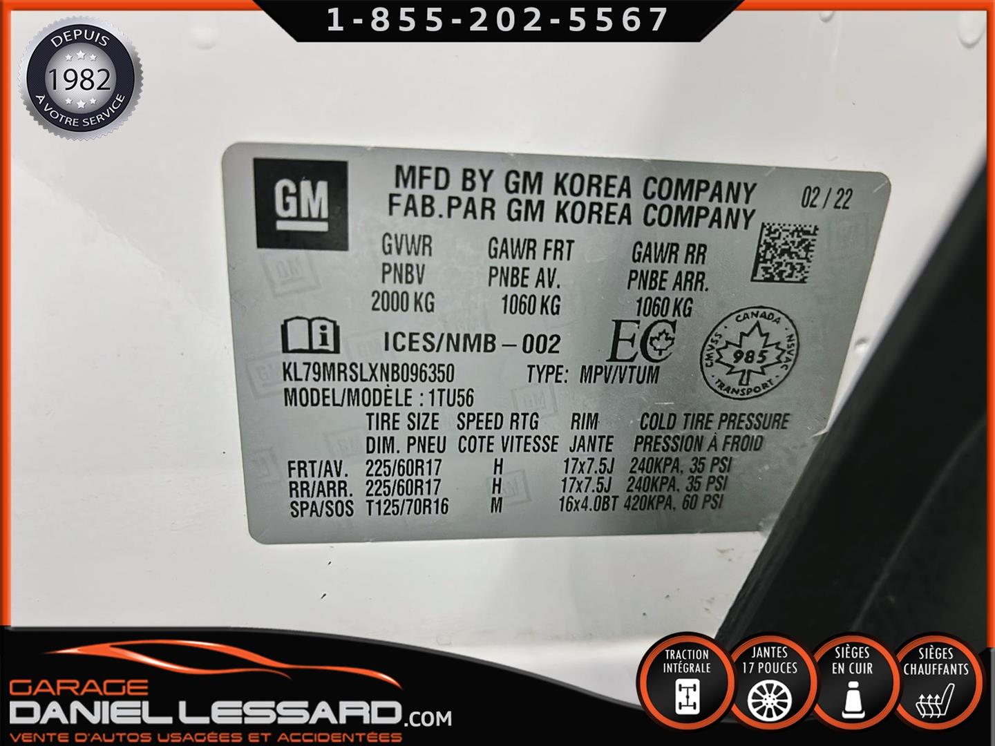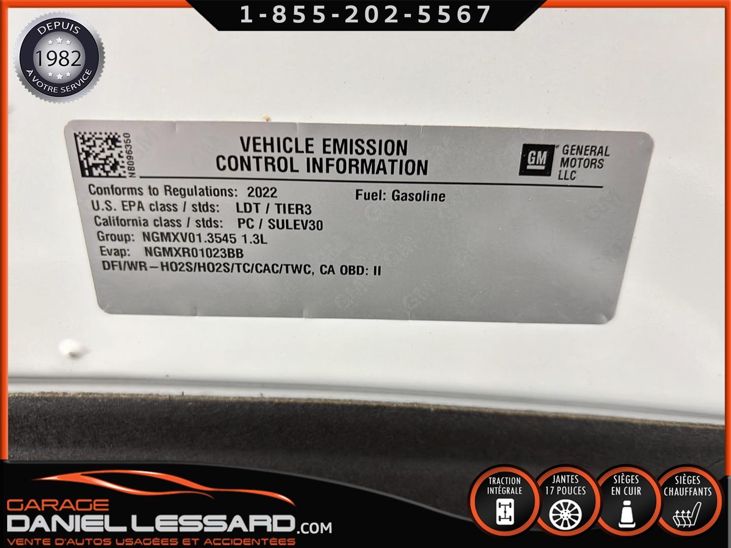 CHEVROLET TRAILBLAZER 2022 MODELE * LT * AVEC SEULEMENT 67. 091 KM AU COMPTEUR, TRACTION INTEGRALE AWD, MOTEUR TRES ECONOMIQUE 3 CYLINDRES 1.3 LITRES TURBO, INTERIEUR EN CUIR NOIR, BANCS AVANT CHAUFFANT, GROUPE ELECTRIQUE COMPLET POUR LE CONDUCTEUR, SYSTEME ALLERTE-COLLISION, AVERTISSEUR CHANGEMENT DE VOIES, AFFICHAGE SUR GRANDE ECRAN DE BORD TACTILE AVEC CAMERA DE RECUL, RADIO COMPATIBLE POUR APPLECARPLAY ET ANDROIDAUTO, PRISES AUX / USB / USB-C ET 12V, COMMANDES MONTÉ AU VOLANT, CRUSE CONTROLE, COMMANDE VOCAL, CONTROLE AUDIO, SYSTEME ARRET-DEMARRAGE AUTOMATIQUE STOP N'GO, RACK DE TOIT LATERALE, ENTRÉ SANS CLEF KEYLESS, VIENT AVEC TAPIS DE TISSUS D'ORIGINE, ANTIPATINAGE, NOUS AVONS UNE SEULE CLEF EN MAIN, DEMARRE AU BOUTON PUSHSTART, DEMARREUR A DISTANCE INTÉGRÉ D'ORIGINE, ET BIEN PLUS ENCORE BEAU PETIT VUS COMPLET, FIABLE ET ECONOMIQUE, CHAUSSÉ SUR PNEUS D'ÉTÉ Z-MAX 225 / 60 / 17 MONTÉ SUR MAGS 17 POUCES, TOUTES LES PHOTOS ET DETAILS DISPONIBLE AU WWW.DANIELLESSARD.COM, FINANCEMENT DISPONIBLE !