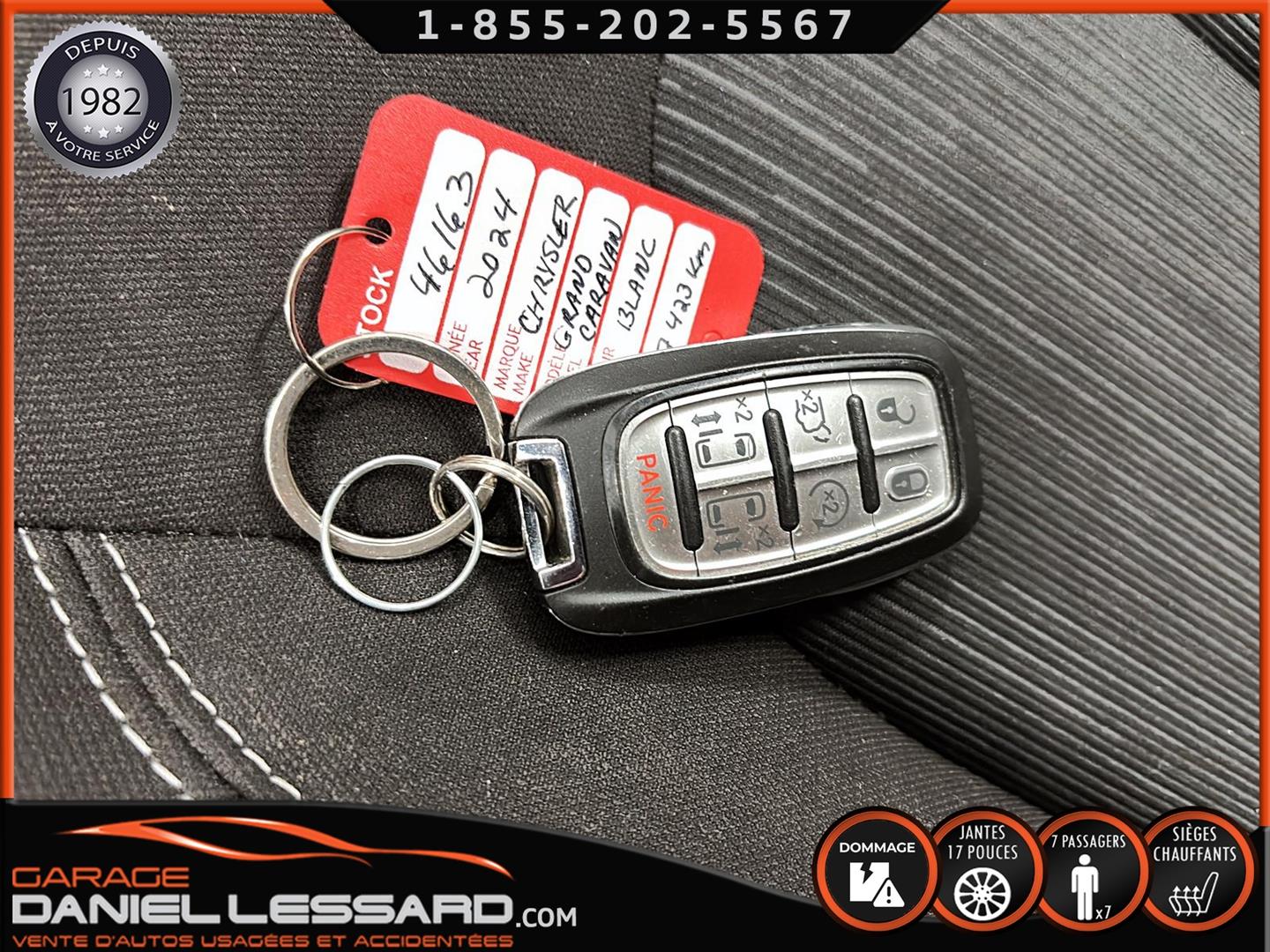 CHRYLSER GRAND CARAVAN SXT 2024, MOTEUR V6 PENTASTAR 3,6 L AVEC TECHNOLOGIE D'ARRÊT/DÉMARRAGE AUTOMATIQUE (ESS), TRANSMISSION AUTOMATIQUE À 9 RAPPORTS, JANTES EN ALUMINIUM TECH SILVER DE 17 POUCES ET PNEUS YOKOHAMA AVID 235/65R17, SIÈGES DE 2E ET 3E RANGÉES STOW 'N GO RABATTABLES DANS LE PLANCHER AVEC RANGEMENT INTÉGRÉ ET FONCTION EASY TILT, SIÈGES AVANT CHAUFFANTS, CLIMATISATION À TROIS ZONES AVEC RÉGLAGE MANUEL DE LA TEMPÉRATURE, VOLANT CHAUFFANT GAINÉ DE CUIR, COMPATIBILITÉ ANDROID AUTO ET APPLE CARPLAY, HAYON ÉLECTRIQUE, CAMÉRA DE RECUL PARKVIEW, SYSTÈME MULTIMÉDIA UCONNECT 5 AVEC ÉCRAN TACTILE DE 7 POUCES, 7 PLACES ASSISES, NOUS AVONS SEULEMENT UNE CLÉ.