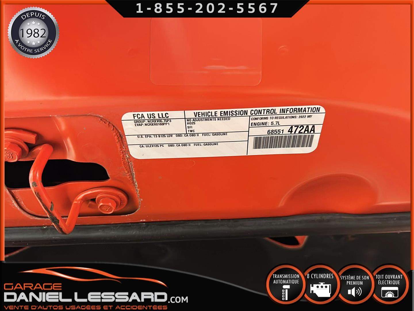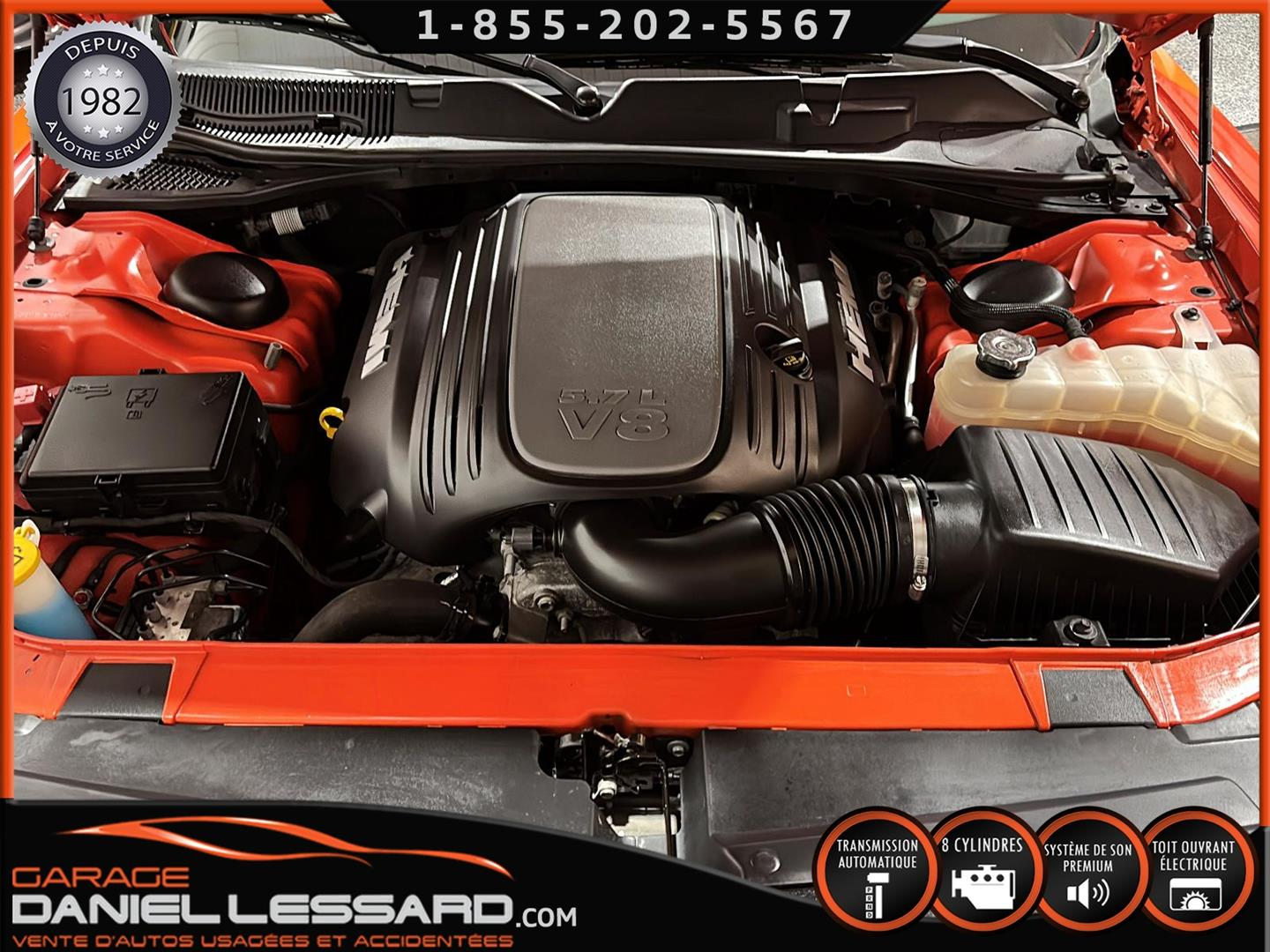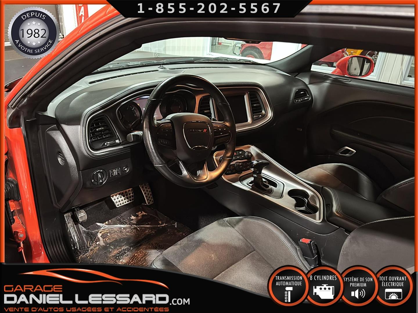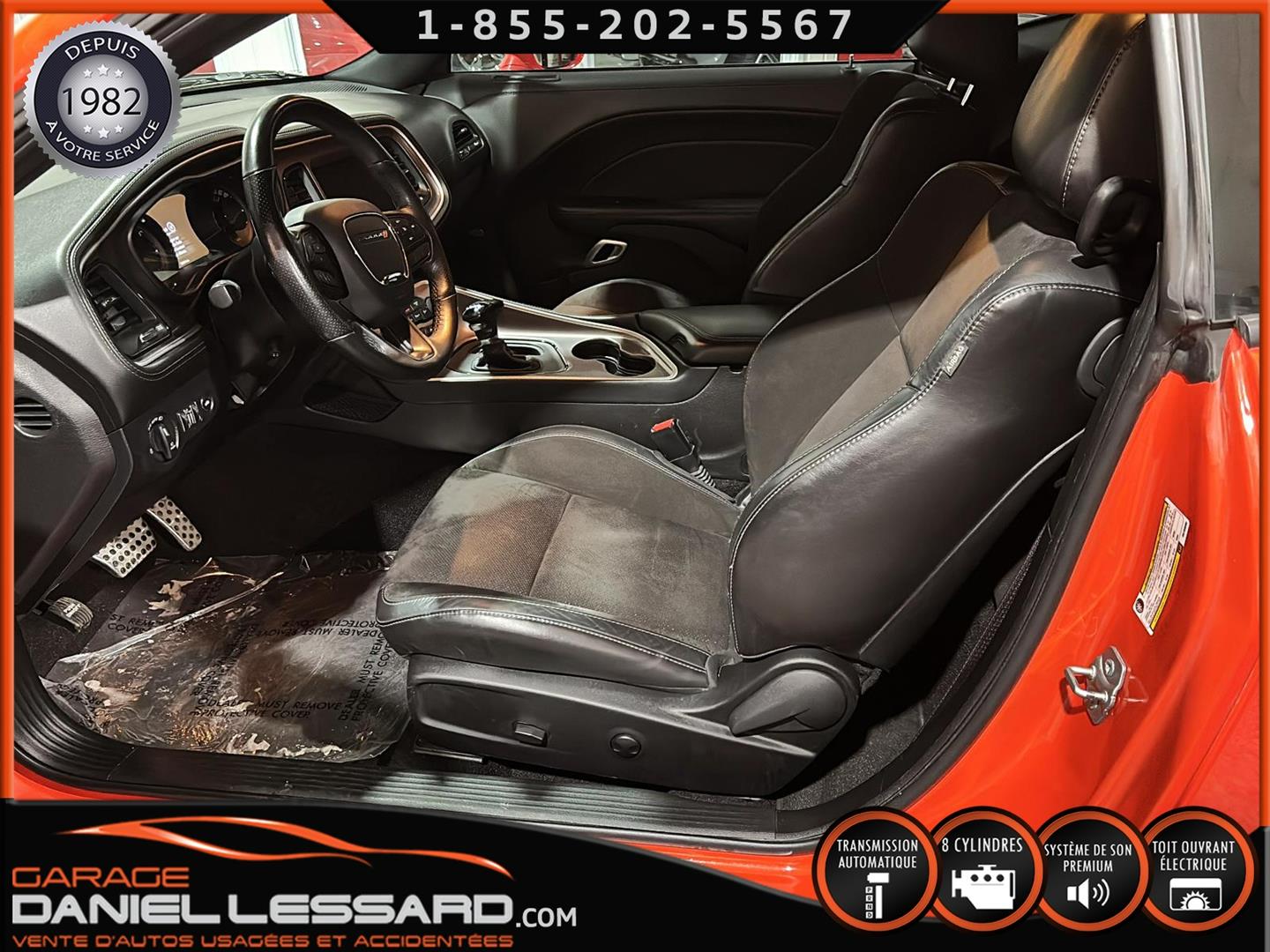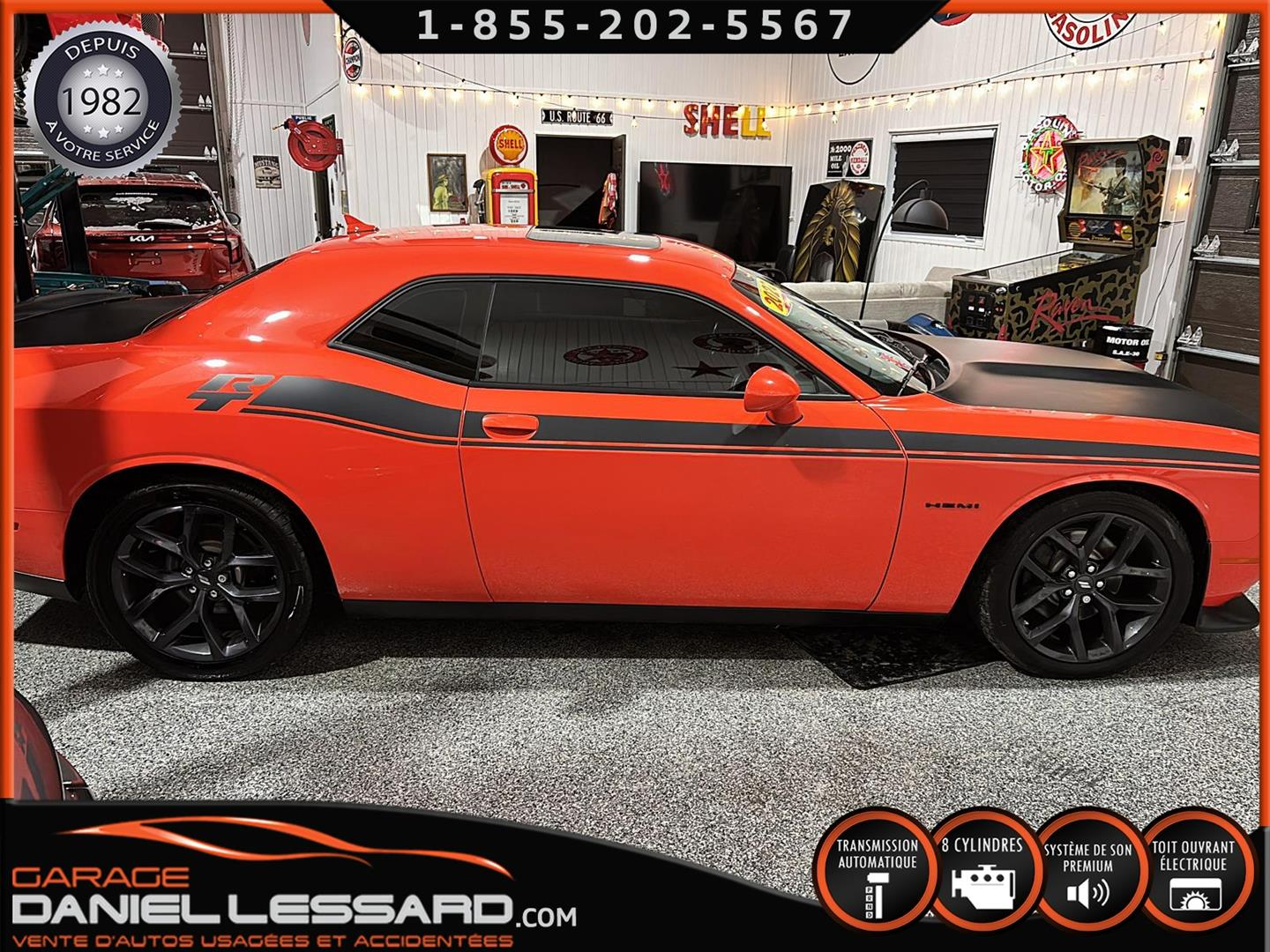 DODGE CHALLENGER R-T, DE COULEUR GO MANGO, PLUS GROUP, ENSEMBLE BLACKTOP, MOTEUR HEMI DE 5.7 LITRES, TRANSMISSION AUTOMATIQUE 8 VITESSES, GEAR RATIO 3.07, MAG 20" AUX QUATRE ROUE GOODYEAR EAGLE RS-A À L'AVANT ET TROCMAX X-PRIVILO À L'ARRIÈRE 245/45/20, ÉCRAN TACTILEDE 8.4" AVEC UCONNECT 4C, SYSTÈME DE NAVIGATION, DÉTECTEUR D'ANGLE MORT, TOIT OUVRANT, SYSTÈME AUDIO À SIX HAUTS-PARLEURS DE MARQUE ALPINE, SIÈGES VENTILÉ ET CHAUFFANT, DODGE PERFORMANCE PAGES, VOLANT CHAUFFANT, ANCIEN VÉHICULE VOLÉ ET RETROUVER PAS VGA, NOUS AVONS 1 CLÉ ET LE DÉMARREUR À DISTANCE DE COMPAGNIE, IL A ÉTÉ ENTIÈREMENT INSPECTÉ PAR NOUS À SONT ARRIVER SUR PLACE, CETTE VOITURE SPORT VIENT AVEC UNE GARANTIE DE 6 MOIS/ 10 000 KM DE NOTRE PART. LA DATE DE MISE EN SERVICE EST LE 31 AOÛT 2022, VOIR AVEC LE CONCESSIONNAIRE SI LA GARANTIE EST APPLICABLE SUR LE VÉHICULE CHANGEMENT D'HUILE A ÉTÉ EFFECTUÉ ET TOUS LES ENTRETIENS SONT À JOUR,VÉHICULE PRÊT À PARTIR ET NOUS OFFRONS LE FINANCEMENT.