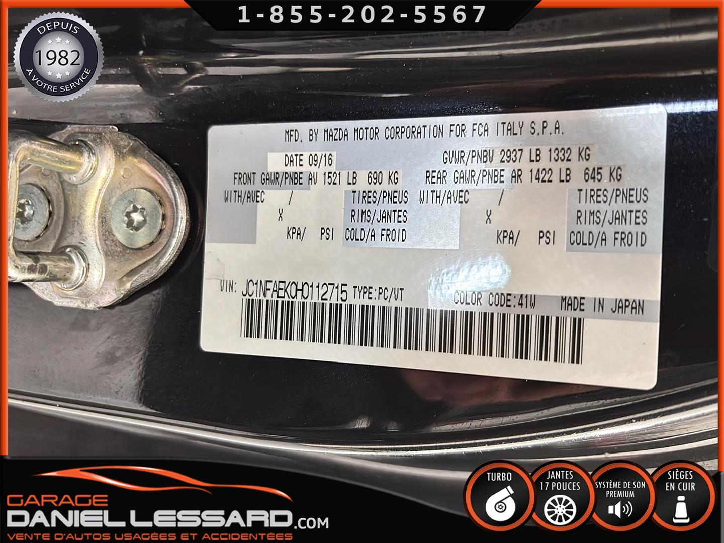 FIAT 124 SPIDER, ABARTH EDITION, CONVERTIBLE DEUX PORTES, MOTEUR 1.4 LITRES TURBO, TRANSMISSION AUTOMATIQUE 6 VITESSES, SIÈGES SPORT EN CUIR ET CHAUFFANT, SYSTÈME AUDIO À 9 HAUTS PARLEUR DE MARQUE BOSE, MAG 17" SUR PNEUS COOPER RS3-G1 205/45/17, SYSTÈME D'ANGLES MORTS, SUSPENSION SPORT, CAMERA DE RECULE, LAVE-PHARES, NOUS AVONS SEULEMENT 1 CLÉ
