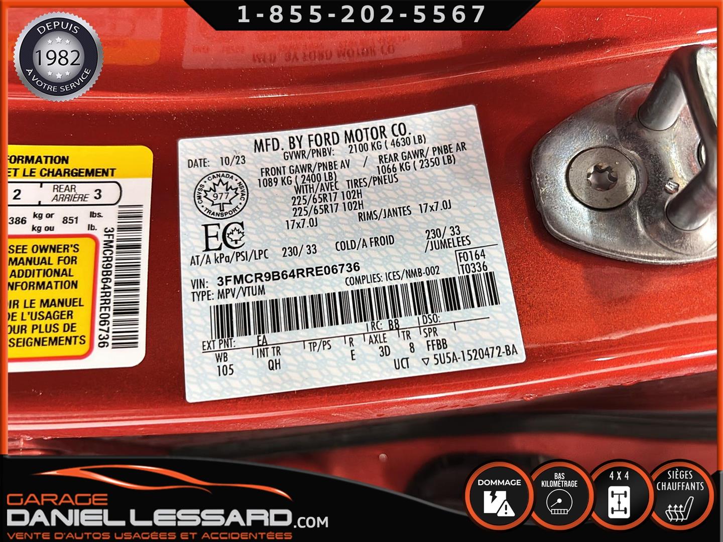 CONTACTEZ L'UN DE NOS CONSEILLERS QUALIFIÉS POUR PLUS DE DÉTAILS ! PLUSIEURS VÉHICULES DE TOUTES MARQUES DISPONIBLES AU WWW.DANIELLESSARD.COM, LA PLACE POUR MAGASINER VOTRE VÉHICULE JAMAIS ACCIDENTÉ, RÉPARÉ OU ENDOMMAGÉ. PLUS DE 100 VÉHICULES DISPONIBLES. ARRIVAGES QUOTIDIENS !!! FINANCEMENT ET GARANTIE PROLONGÉE DISPONIBLES ! NOUS REPRENONS LES ÉCHANGES. NOUS AVONS UN LARGE RÉSEAU DE CARROSSIERS EXPERTS À VOTRE DISPOSITION POUR VOTRE SERVICE DE RÉPARATION CLÉ EN MAIN. NOS VÉHICULES PRÊTS À PARTIR SONT INSPECTÉS AU COMPLET PAR NOUS ET LA SAAQ, VENDUS AVEC GARANTIE. NOUS SOMMES OUVERTS DU LUNDI AU VENDREDI 8:00 À 17:00 ET LE SAMEDI AU 9:00 À 12:00. VISITEZ NOTRE PAGE FACEBOOK ! AU PLAISIR DE VOUS RENCONTRER!.