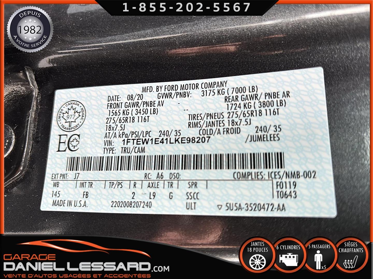 MAGNIFIQUE FORD F-150 XLT SPORT 4X4 2020 DE COULEUR GRIS CHARBON AVEC BAS KM AU COMPTEUR ! EDITION CREWCAB AVEC LES 4 GRANDES PORTES, BOITE DE 5.5 PIEDS AVEC ECHELLE INTÉGRÉ DANS LE PANNEAU FACILITANT L'ACCÈS DANS LA BOITE, MOTEUR PERFORMANT ECOBOOST 3.5 LITRES V-6, TRACTION 4X4, TRANSMISSION AUTOMATIQUE À 10 RAPPORTS, RATIO L9 DONC UN 3,55, MUNIE DE BALLON AIR A L'ARRIERE TRES BIEN FAIT, CAMION PRET POUR LA ROULOTTE OU VOS CHARGEMENT, VERSION XLT SPORT BIEN ÉQUIPÉ AVEC INTERIEUR EN TISSUS GRIS CHARBON, GROUPE ELECTRIQUE COMPLET POUR LE CONDUCTEUR, BANCS AVANT CHAUFFANT A TRIPLE INTENSITÉ, AFFICHAGE SUR GRANDE ÉCRAN DE BORD TACTILE AVEC CAMERA DE RECUL ET SENSORS DE RAPPROCHEMENT ARRIERE, RADIO COMPATIBLE AVEC APPLECARPLAY, MIROIRS CHAUFFANT, GROUPE REMORQUAGE AVEC HITCH ET FILAGE 4/7 BRINS, AIDE POUR TRAILER BACKUP A ROULETTE, FREINS ELECTRIQUE D'ORIGINE MONTÉ AU TABLEAU DE BORD, MARCHE-PIEDS EXTERIEUR, FOGLIGHTS, TAPIS DE TISSUS D'ORIGINE, PRISES 110 V / 12 V / USB, COMMANDE MONTÉ AU VOLANT AVEC BLUETOOTH, COMMANDE VOCAL, CRUSE CONTROLE ET CONTROLE AUDIO, STOP N' GO, ANTIPATINAGE, RADIO AM / FM / XM, MAGS AVEC PNEUS D'ÉTÉ MICHELIN 275 / 65 / 18 AVEC 20% D'USURE, 3 CLÉ AVEC DEMARREUR A DISTANCE INTÉGRÉ D'ORIGINE, TAPIS DE TISSUS ET BIEN PLUS ENCORE, BEAU CAMION TRES BIEN MONTÉ,