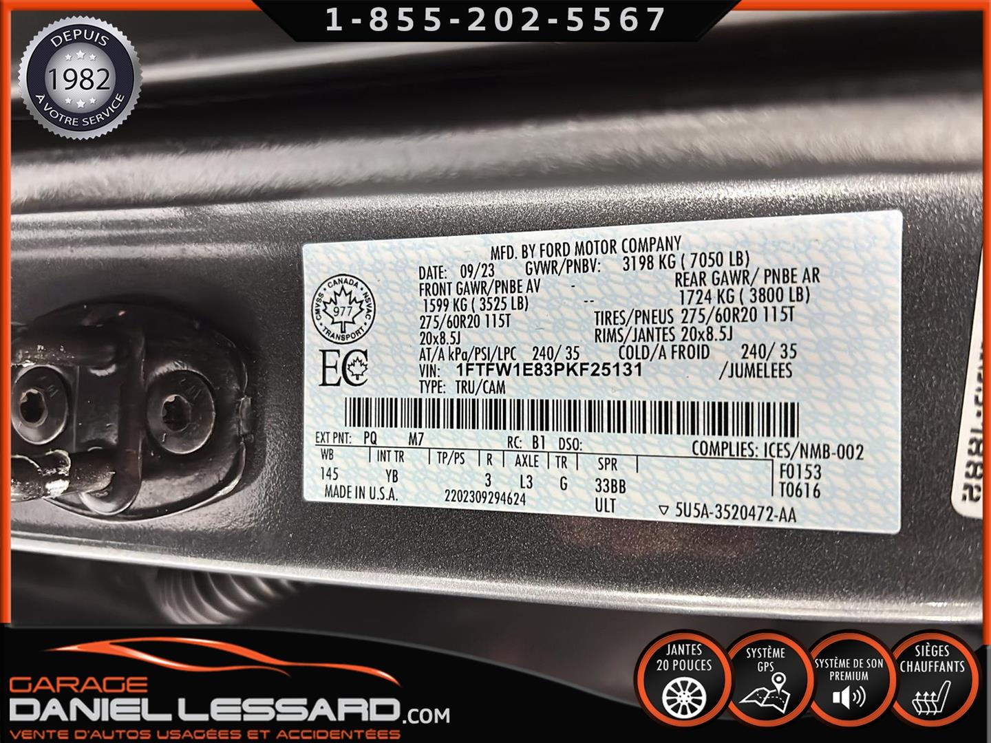 FORD F-150 XLT, EDITION HERITAGE 2023, SUPERCREW AVEC UNE BOITE DE 5.7', MOTEUR ECOBOOST DE 3.5 LITRES, TRANSMISSION AUTOMATIQUE 10 VITESSES, RAPPORT DE PONT ARRIÈRE 3.31, MAG 20" SUR PNEUS ANTARES GRIP 60 ICE HOMOLOGER 275/60/20, ESNSEMBLE REMORQUAGE, FORD CO-PILOT360, TOILE RIGIDE, BULLET LINAR, MARCHEPIEDS, SYSTÈME AUDIO B&O, PRISE 4000W, SYSTÈME DE NAVIGATION, NOUS AVONS SEULEMENT 1 CLÉ, CAMION QUI À COUTER PLUS DE 78 000$.