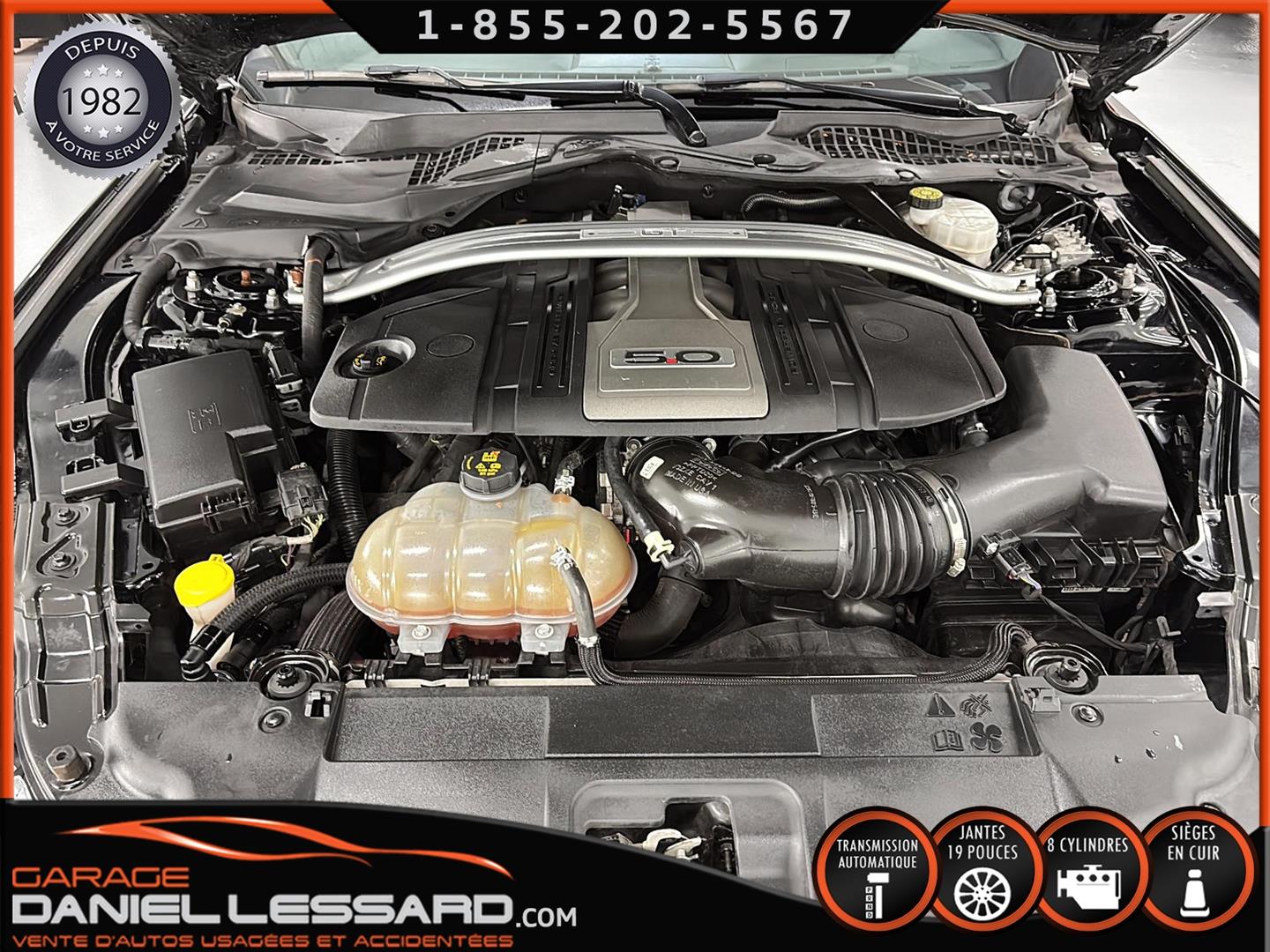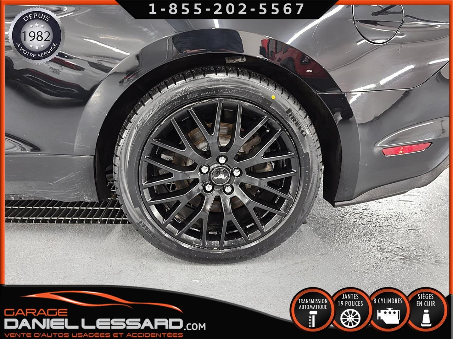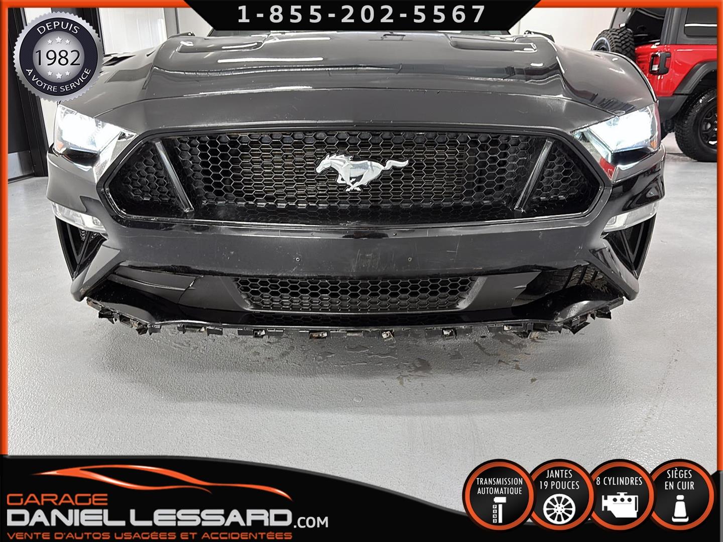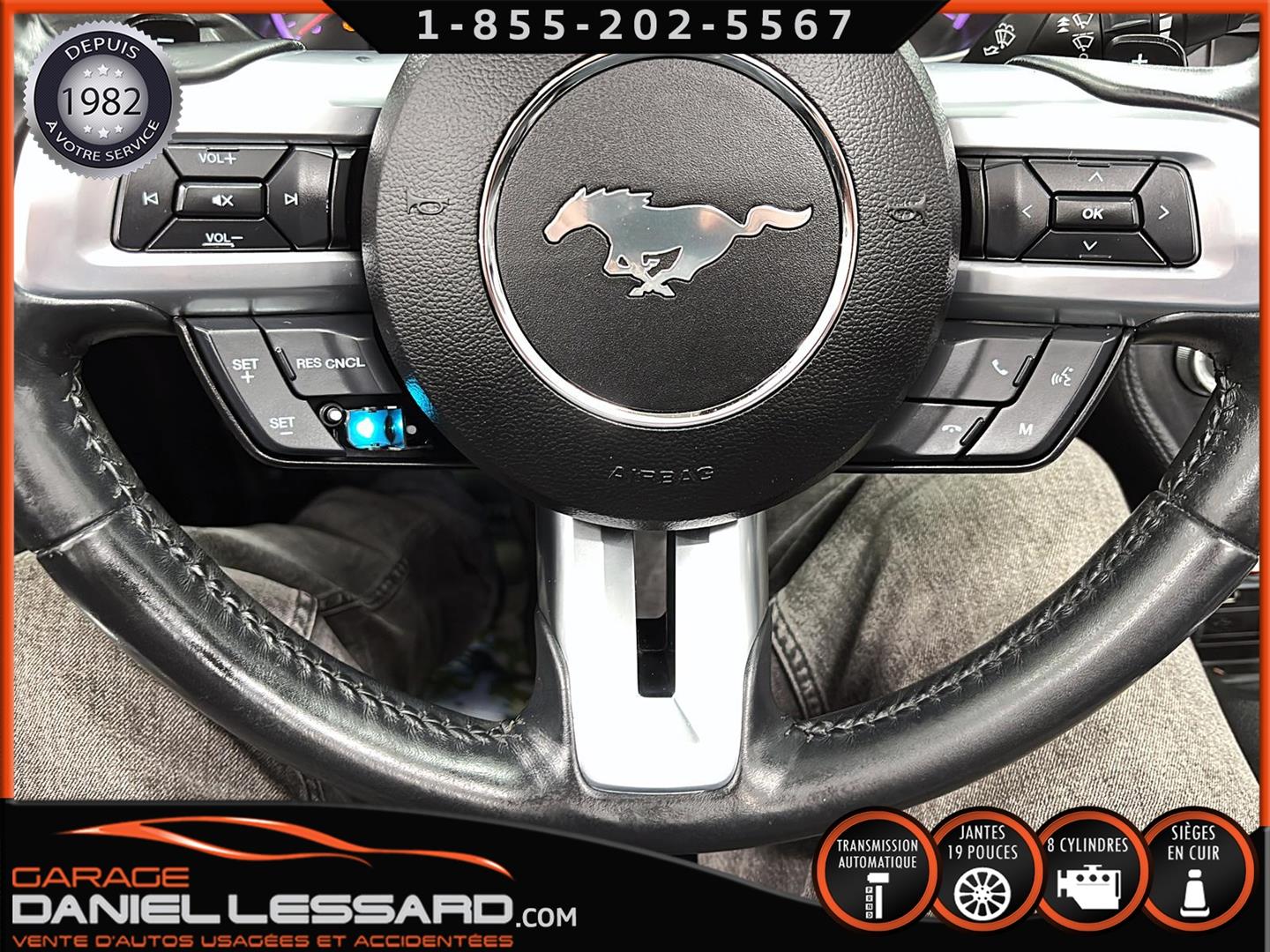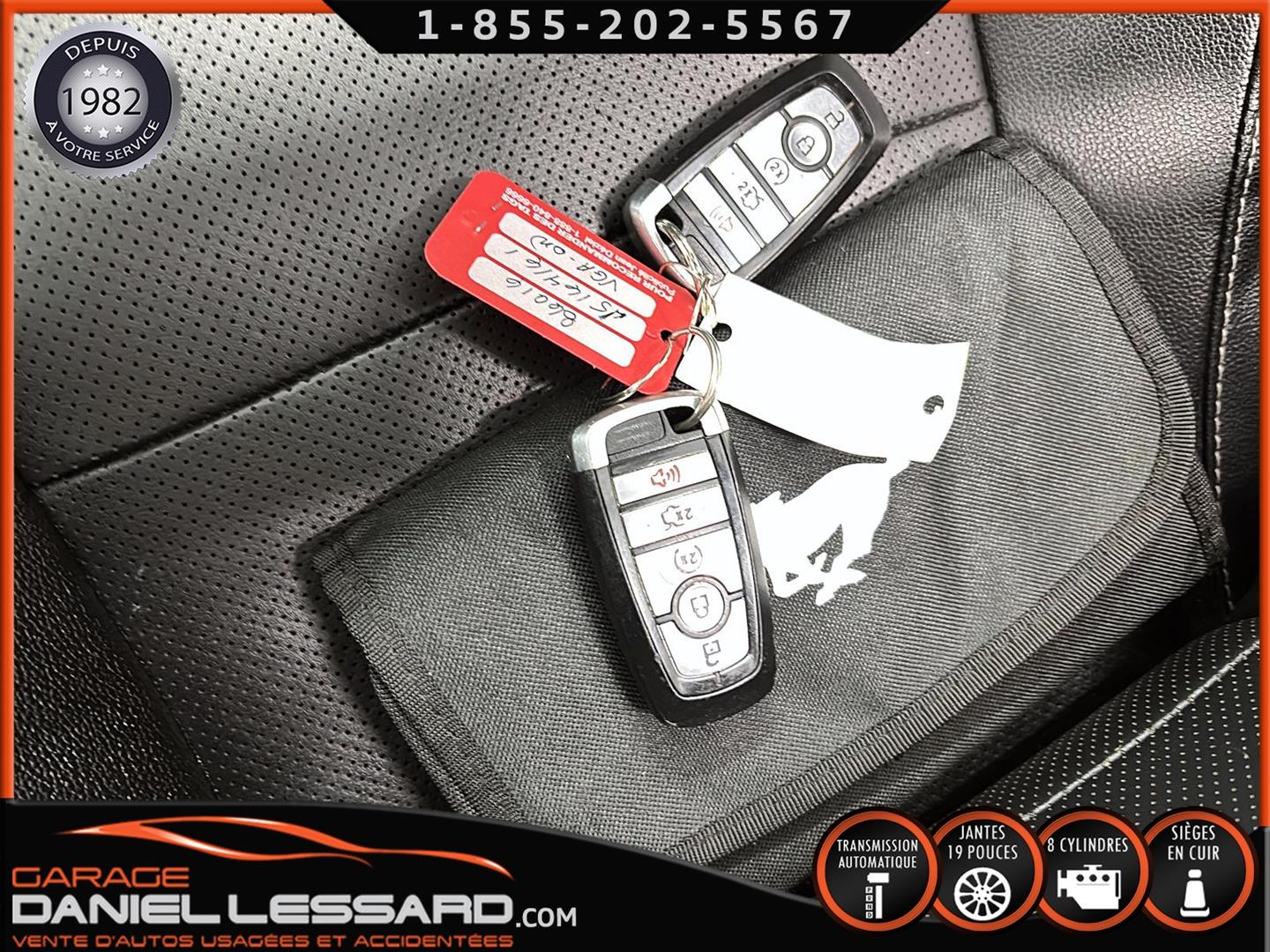 FORD MUSTANG GT PREMIUM AVEC LE PACK PERFORMANCE QUI OFFRE UN SPLITTER AVANT UNIQUE, UNE BARRE ANTI-RAPPROCHEMENT PEINTE EN ARGENT, UN RADIATEUR PLUS GRAND, UNE BARRE ANTIROULIS ARRIÈRE RENFORCÉE, DES RESSORTS AVANT RENFORCÉS, UN RÉGLAGE DE CHÂSSIS UNIQUE, UN RENFORT DE BERCEAU MOTEUR, DES ÉTRIERS DE FREINS AVANT BREMBO, DES JANTES EN ALUMINIUM PEINTES EN NOIR ÉBÈNE DE 19" X 9" À L'AVANT ET DE 19" X 9,5" À L'ARRIÈRE AVEC DES PNEUS ÉTÉ 255/40R19 À L'AVANT ET 275/40R19 À L'ARRIÈRE, MONTÉS SUR DES PIRELLI PZERO AS-PLUS NEUFS, UNE DIRECTION À ASSISTANCE ÉLECTRIQUE UNIQUE, UN RÉGLAGE ABS ET UN CONTRÔLE ÉLECTRONIQUE DE STABILITÉ, DES GARNITURES DE TABLEAU DE BORD EN ALUMINIUM BROSSÉ, ENSEMBLE DE JAUGES (PRESSION D'HUILE ET DÉPRESSION), DIFFÉRENTIELS À ENGRENAGES HÉLICOÏDAUX AUTOMATIQUES TORSEN 3.55, SIÈGES AVANT GARNIS DE CUIR, SIÈGES AVANT CHAUFFANTS ET VENTILÉS, MODES DE CONDUITE SÉLECTIONNABLES AVEC BLOC DE 4 INTERRUPTEURS À BASCULE (NORMAL, SPORT+, CIRCUIT, DRAG STRIP, NEIGE/PLUIE), CLIMATISATION AUTOMATIQUE ÉLECTRONIQUE BIZONE, EXHAUST MBRP AVEC RESONATEUR DELETE, DEUX CLÉS AVEC LE MANUEL DU PROPRIÉTAIRE