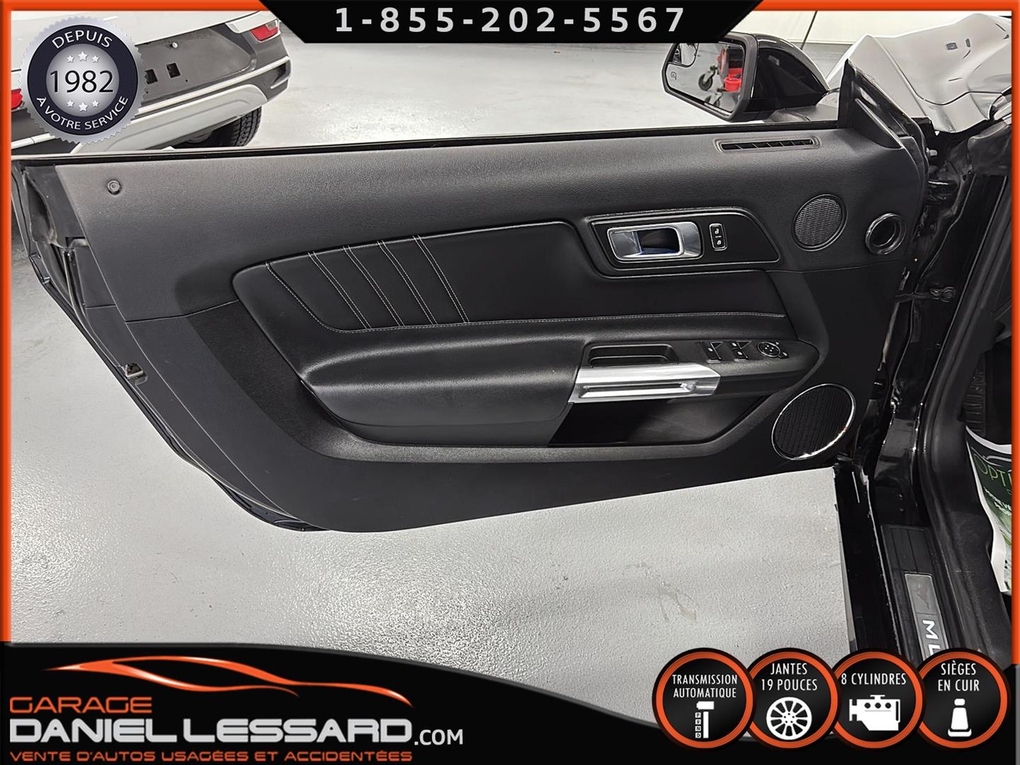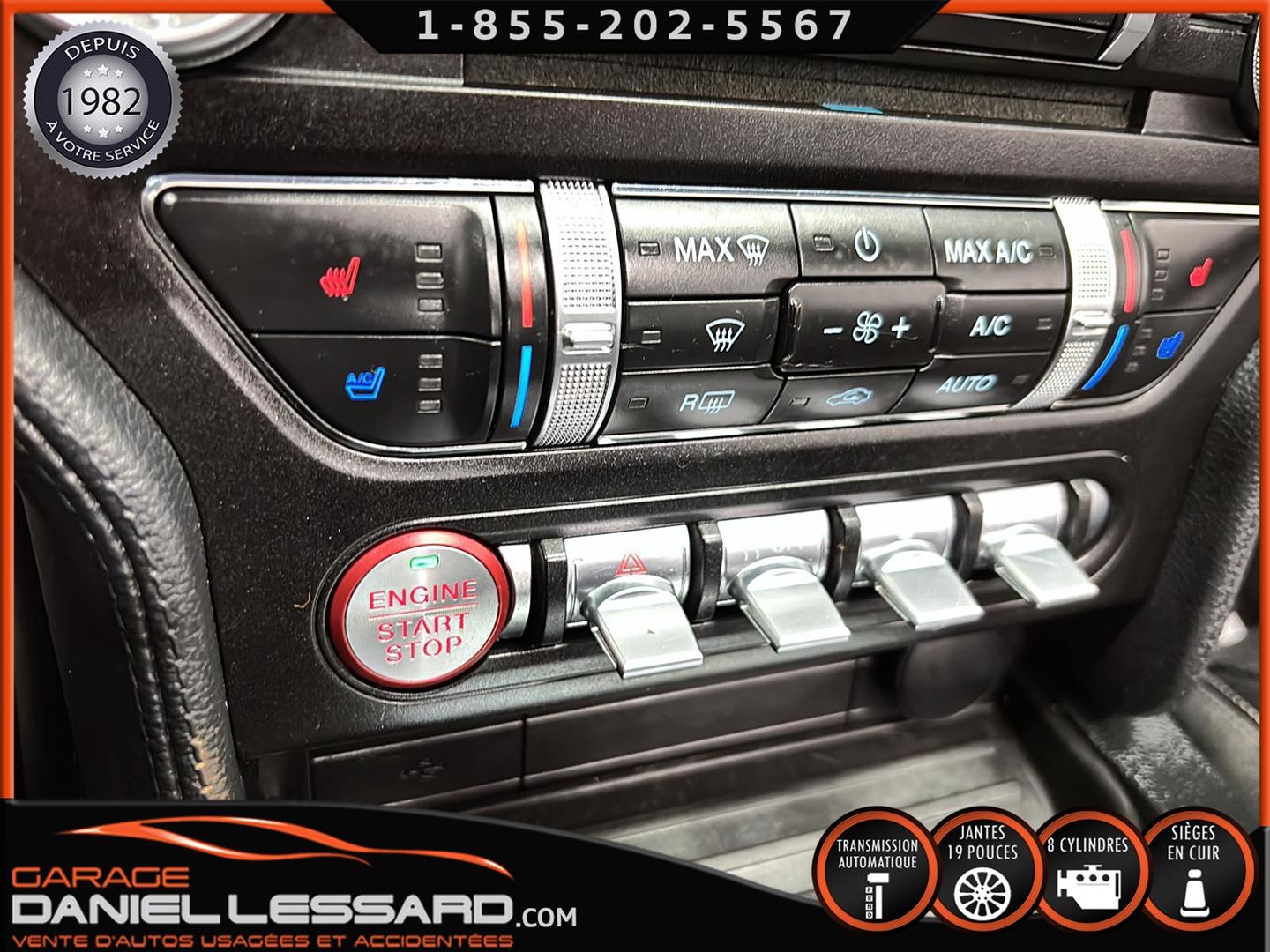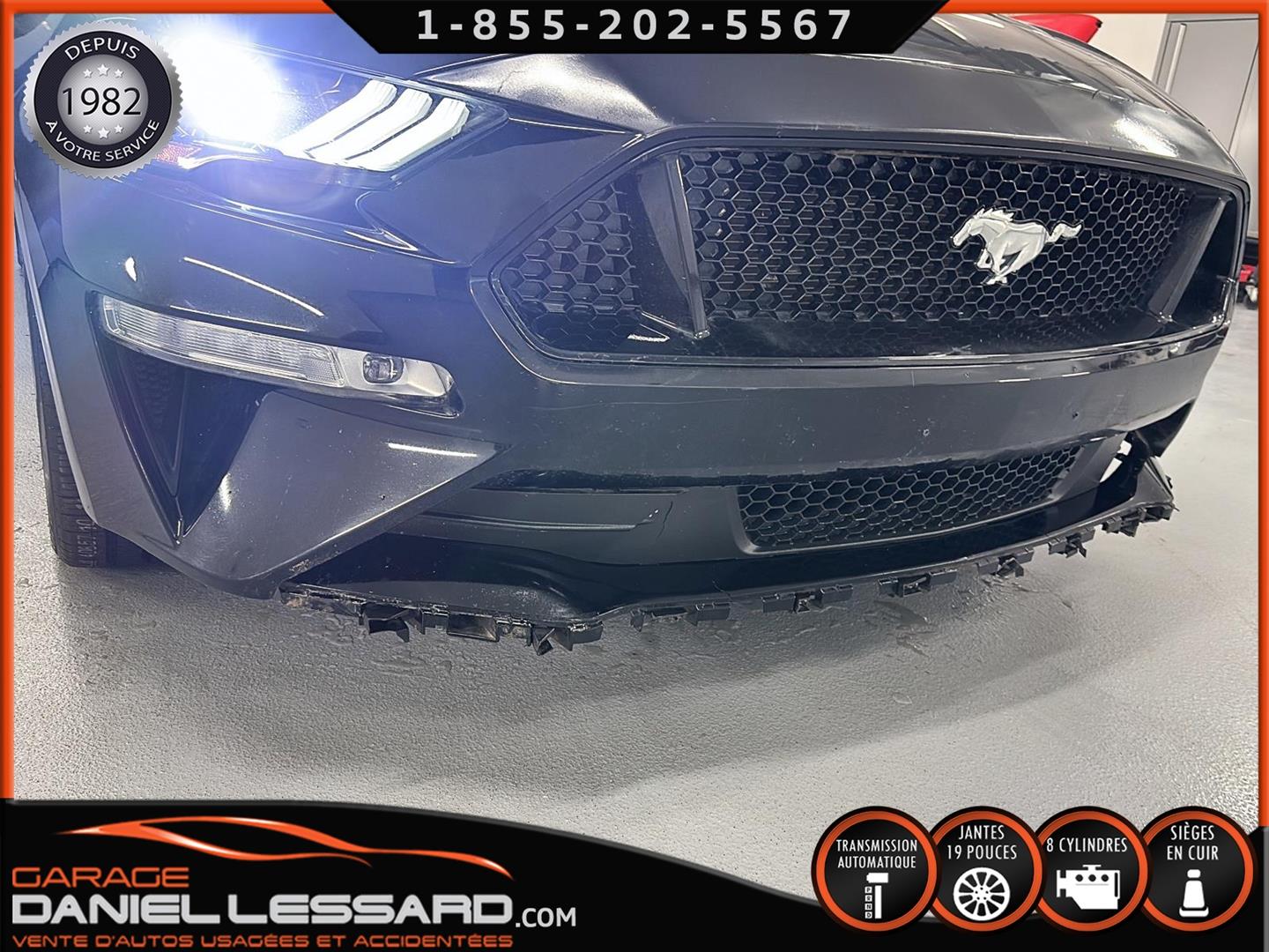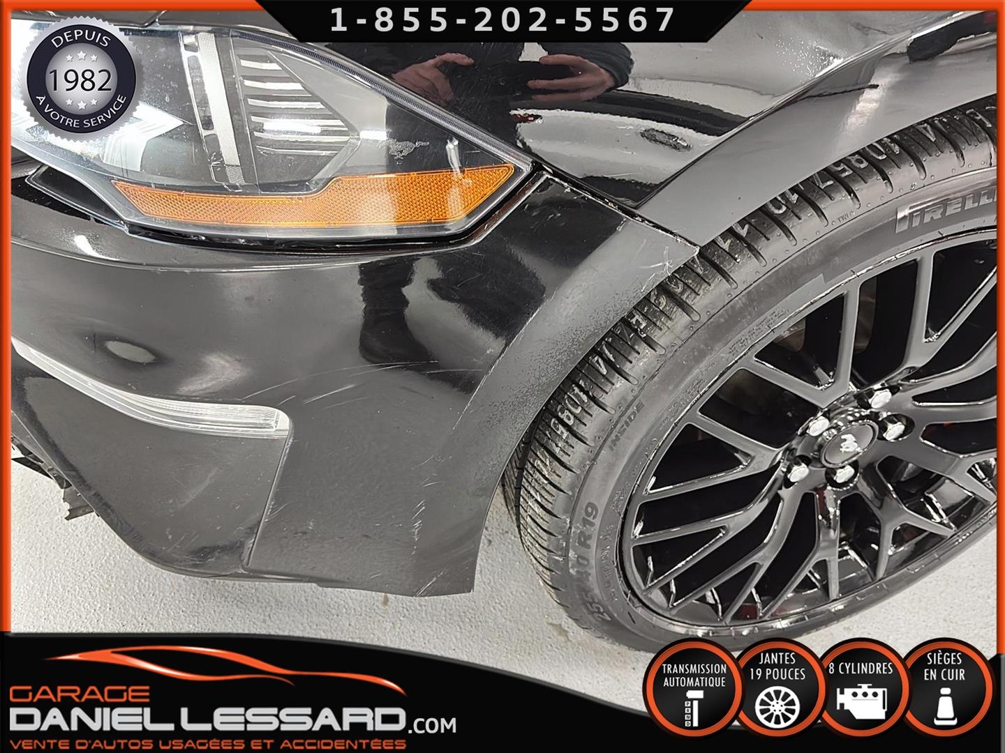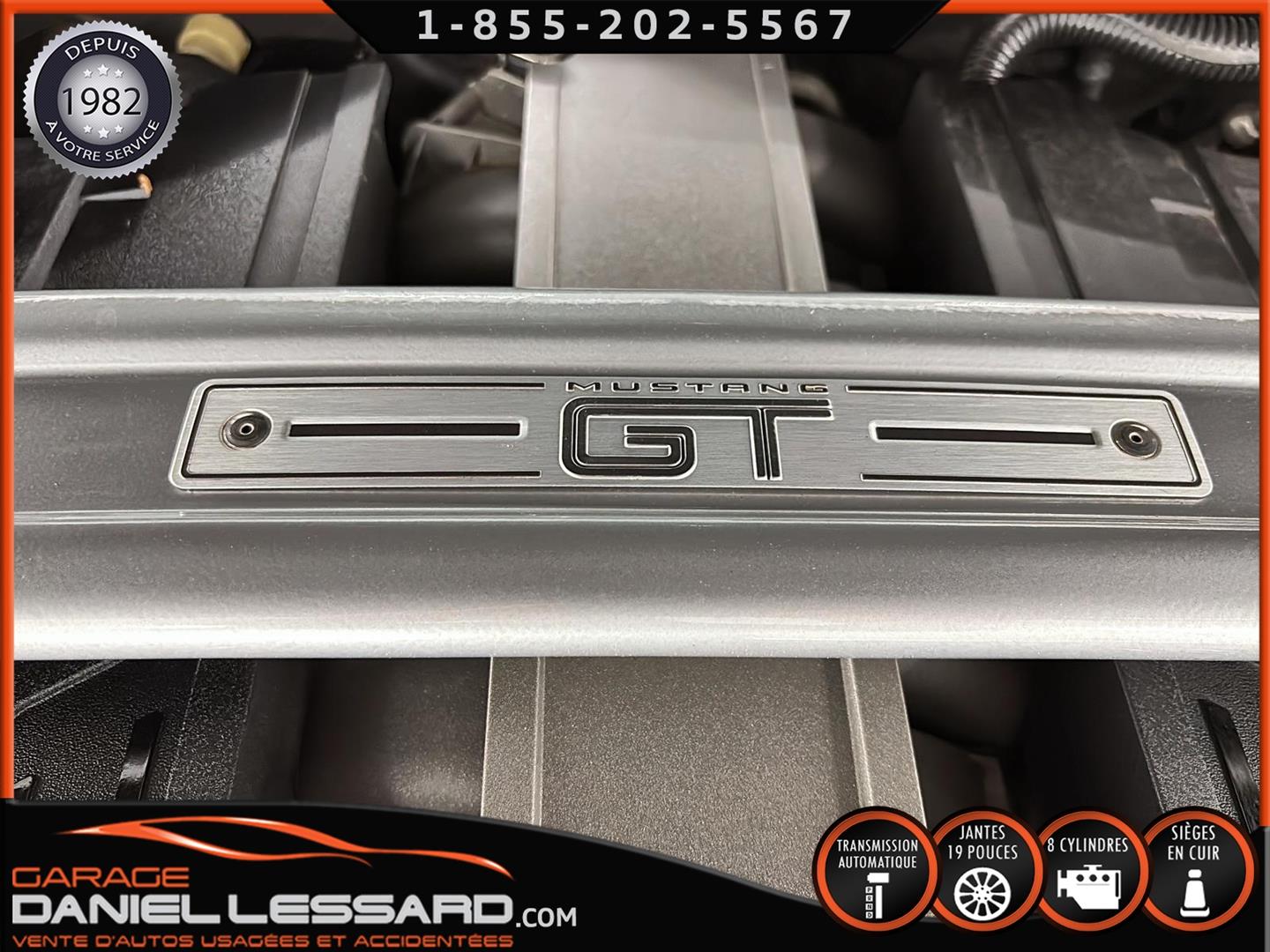 FORD MUSTANG GT PREMIUM AVEC LE PACK PERFORMANCE QUI OFFRE UN SPLITTER AVANT UNIQUE, UNE BARRE ANTI-RAPPROCHEMENT PEINTE EN ARGENT, UN RADIATEUR PLUS GRAND, UNE BARRE ANTIROULIS ARRIÈRE RENFORCÉE, DES RESSORTS AVANT RENFORCÉS, UN RÉGLAGE DE CHÂSSIS UNIQUE, UN RENFORT DE BERCEAU MOTEUR, DES ÉTRIERS DE FREINS AVANT BREMBO, DES JANTES EN ALUMINIUM PEINTES EN NOIR ÉBÈNE DE 19" X 9" À L'AVANT ET DE 19" X 9,5" À L'ARRIÈRE AVEC DES PNEUS ÉTÉ 255/40R19 À L'AVANT ET 275/40R19 À L'ARRIÈRE, MONTÉS SUR DES PIRELLI PZERO AS-PLUS NEUFS, UNE DIRECTION À ASSISTANCE ÉLECTRIQUE UNIQUE, UN RÉGLAGE ABS ET UN CONTRÔLE ÉLECTRONIQUE DE STABILITÉ, DES GARNITURES DE TABLEAU DE BORD EN ALUMINIUM BROSSÉ, ENSEMBLE DE JAUGES (PRESSION D'HUILE ET DÉPRESSION), DIFFÉRENTIELS À ENGRENAGES HÉLICOÏDAUX AUTOMATIQUES TORSEN 3.55, SIÈGES AVANT GARNIS DE CUIR, SIÈGES AVANT CHAUFFANTS ET VENTILÉS, MODES DE CONDUITE SÉLECTIONNABLES AVEC BLOC DE 4 INTERRUPTEURS À BASCULE (NORMAL, SPORT+, CIRCUIT, DRAG STRIP, NEIGE/PLUIE), CLIMATISATION AUTOMATIQUE ÉLECTRONIQUE BIZONE, EXHAUST MBRP AVEC RESONATEUR DELETE, DEUX CLÉS AVEC LE MANUEL DU PROPRIÉTAIRE