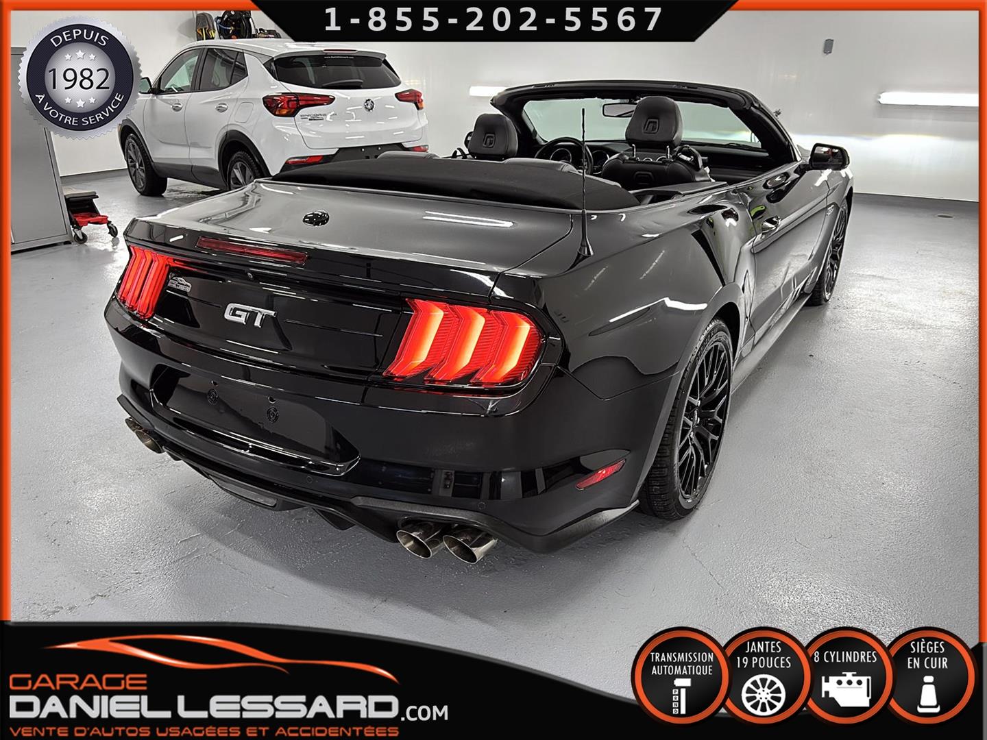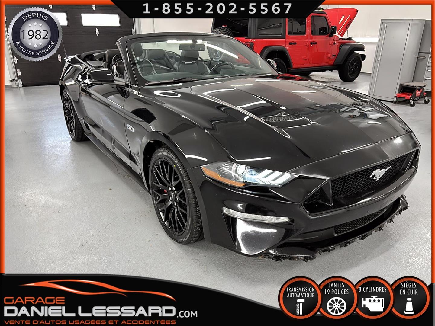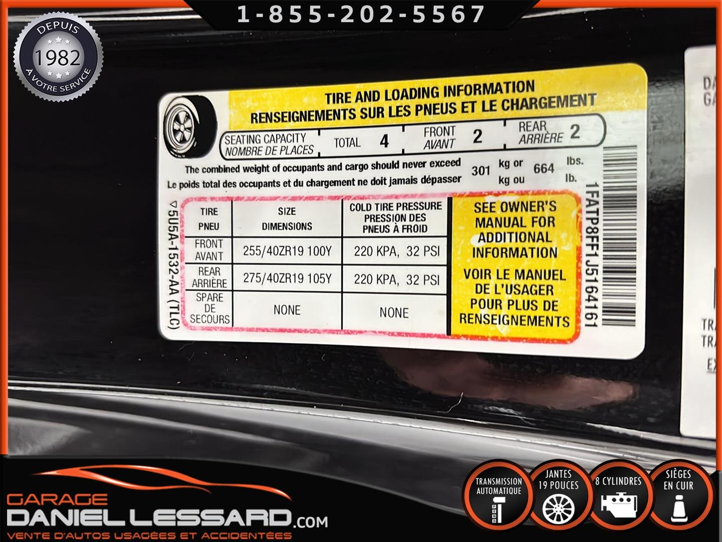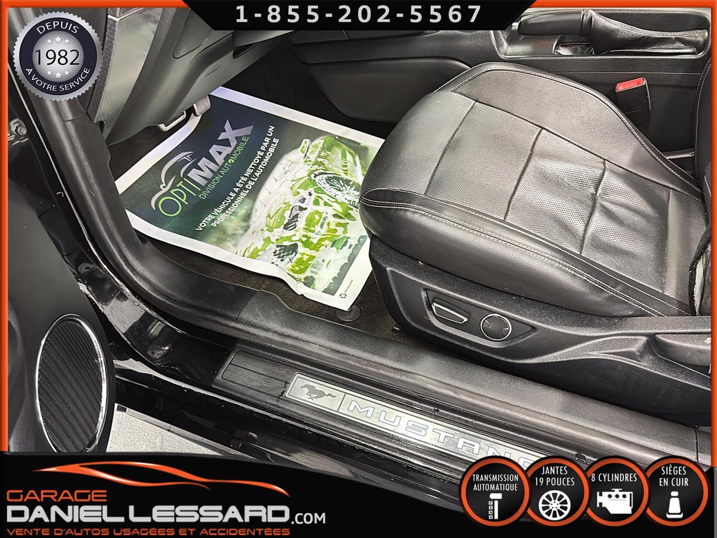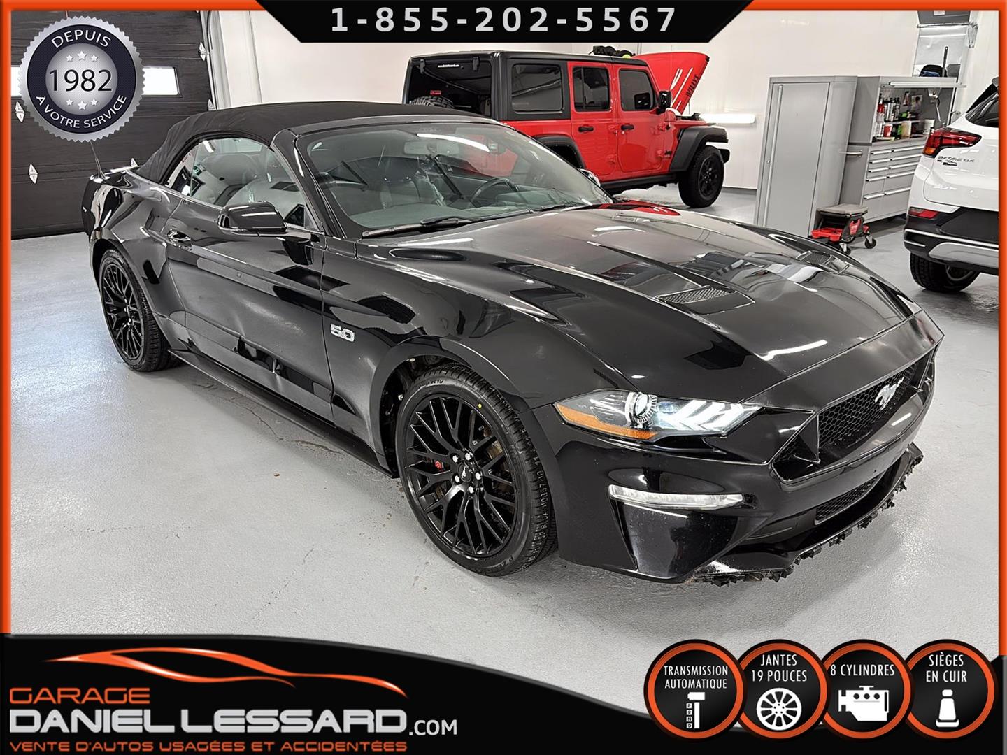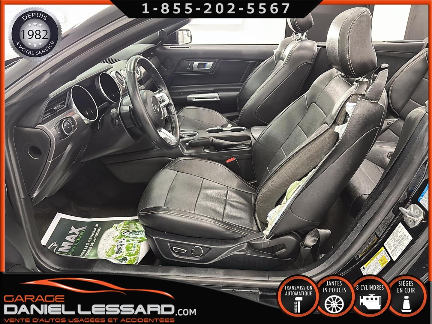 FORD MUSTANG GT PREMIUM AVEC LE PACK PERFORMANCE QUI OFFRE UN SPLITTER AVANT UNIQUE, UNE BARRE ANTI-RAPPROCHEMENT PEINTE EN ARGENT, UN RADIATEUR PLUS GRAND, UNE BARRE ANTIROULIS ARRIÈRE RENFORCÉE, DES RESSORTS AVANT RENFORCÉS, UN RÉGLAGE DE CHÂSSIS UNIQUE, UN RENFORT DE BERCEAU MOTEUR, DES ÉTRIERS DE FREINS AVANT BREMBO, DES JANTES EN ALUMINIUM PEINTES EN NOIR ÉBÈNE DE 19" X 9" À L'AVANT ET DE 19" X 9,5" À L'ARRIÈRE AVEC DES PNEUS ÉTÉ 255/40R19 À L'AVANT ET 275/40R19 À L'ARRIÈRE, MONTÉS SUR DES PIRELLI PZERO AS-PLUS NEUFS, UNE DIRECTION À ASSISTANCE ÉLECTRIQUE UNIQUE, UN RÉGLAGE ABS ET UN CONTRÔLE ÉLECTRONIQUE DE STABILITÉ, DES GARNITURES DE TABLEAU DE BORD EN ALUMINIUM BROSSÉ, ENSEMBLE DE JAUGES (PRESSION D'HUILE ET DÉPRESSION), DIFFÉRENTIELS À ENGRENAGES HÉLICOÏDAUX AUTOMATIQUES TORSEN 3.55, SIÈGES AVANT GARNIS DE CUIR, SIÈGES AVANT CHAUFFANTS ET VENTILÉS, MODES DE CONDUITE SÉLECTIONNABLES AVEC BLOC DE 4 INTERRUPTEURS À BASCULE (NORMAL, SPORT+, CIRCUIT, DRAG STRIP, NEIGE/PLUIE), CLIMATISATION AUTOMATIQUE ÉLECTRONIQUE BIZONE, EXHAUST MBRP AVEC RESONATEUR DELETE, DEUX CLÉS AVEC LE MANUEL DU PROPRIÉTAIRE
