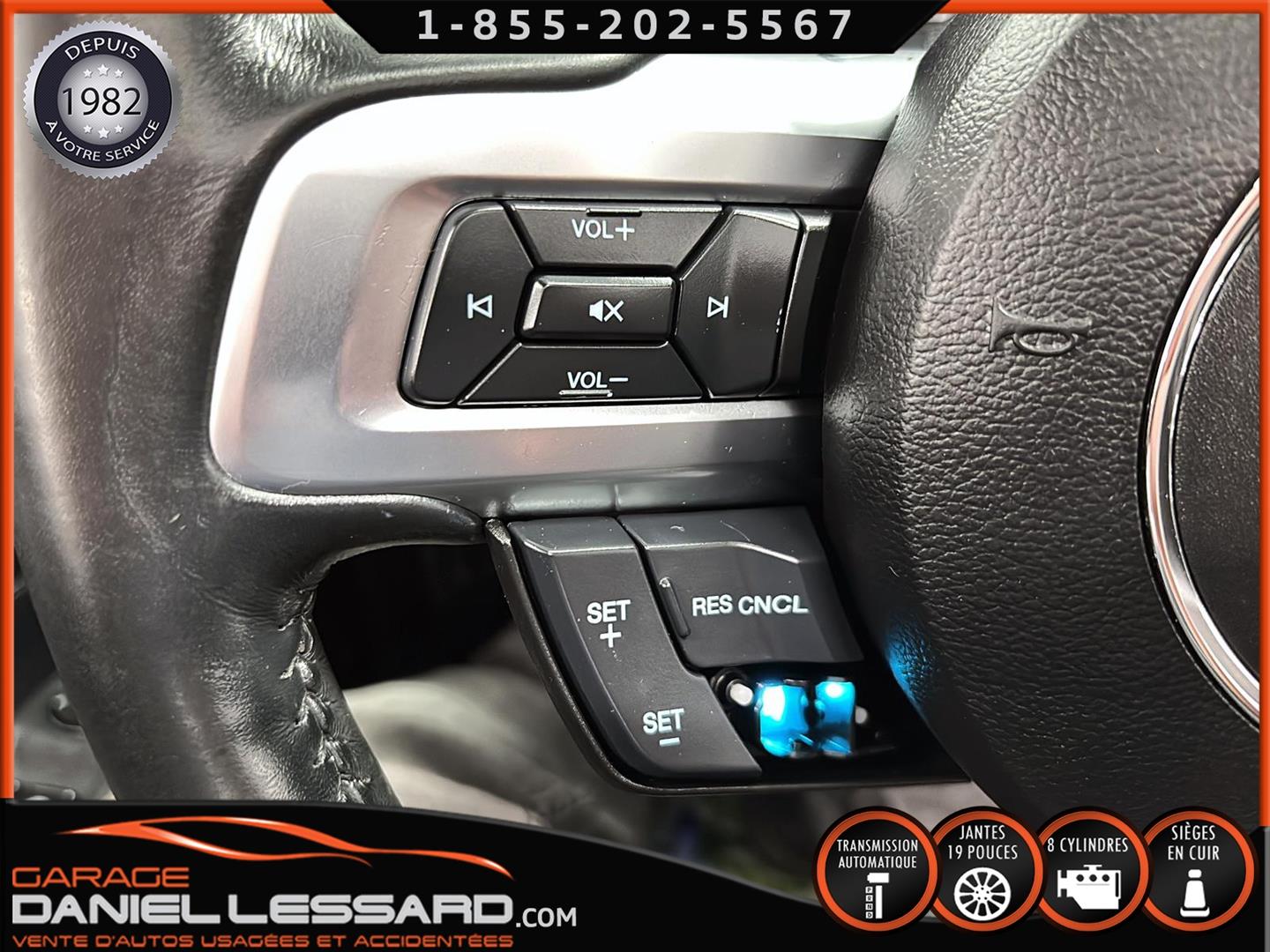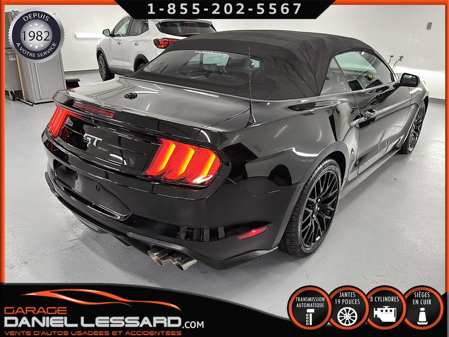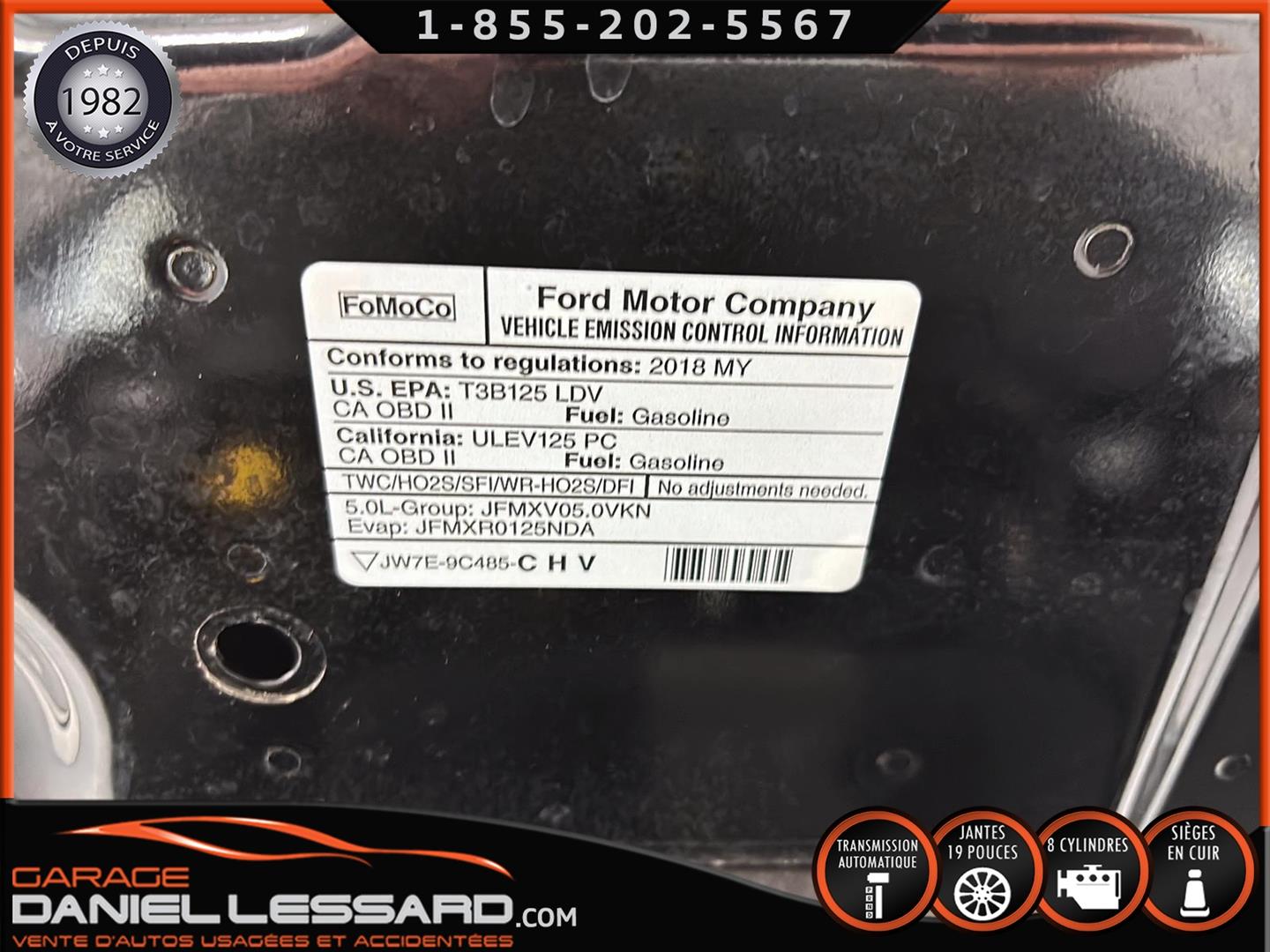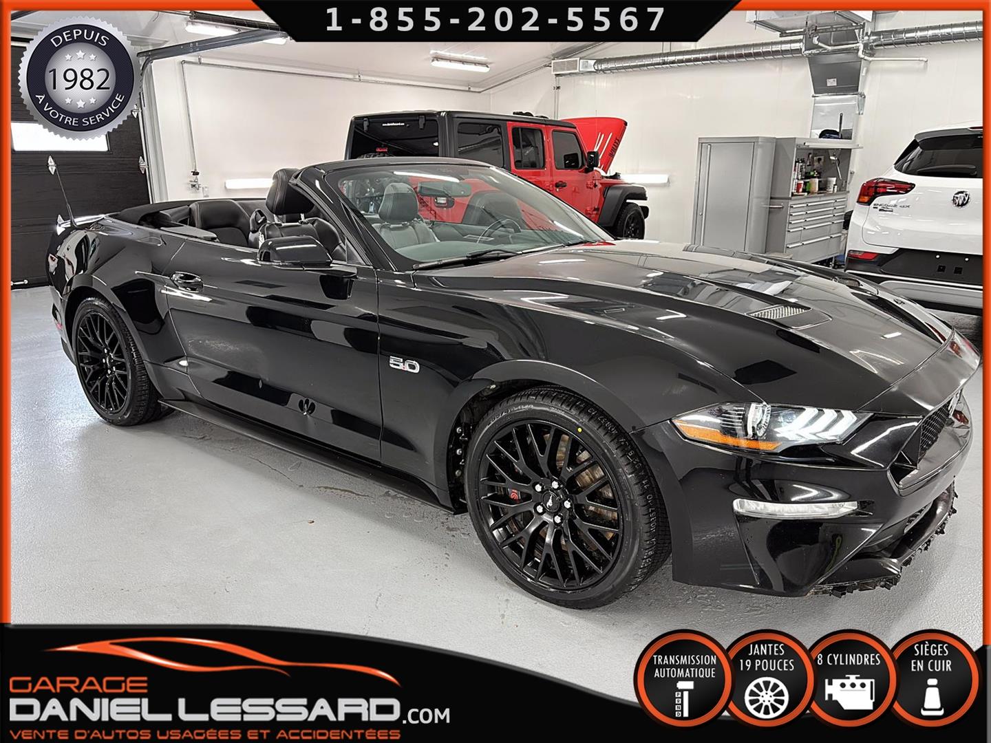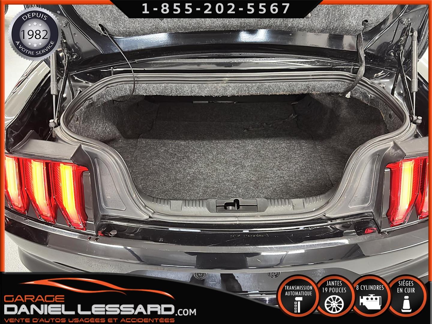 FORD MUSTANG GT PREMIUM AVEC LE PACK PERFORMANCE QUI OFFRE UN SPLITTER AVANT UNIQUE, UNE BARRE ANTI-RAPPROCHEMENT PEINTE EN ARGENT, UN RADIATEUR PLUS GRAND, UNE BARRE ANTIROULIS ARRIÈRE RENFORCÉE, DES RESSORTS AVANT RENFORCÉS, UN RÉGLAGE DE CHÂSSIS UNIQUE, UN RENFORT DE BERCEAU MOTEUR, DES ÉTRIERS DE FREINS AVANT BREMBO, DES JANTES EN ALUMINIUM PEINTES EN NOIR ÉBÈNE DE 19" X 9" À L'AVANT ET DE 19" X 9,5" À L'ARRIÈRE AVEC DES PNEUS ÉTÉ 255/40R19 À L'AVANT ET 275/40R19 À L'ARRIÈRE, MONTÉS SUR DES PIRELLI PZERO AS-PLUS NEUFS, UNE DIRECTION À ASSISTANCE ÉLECTRIQUE UNIQUE, UN RÉGLAGE ABS ET UN CONTRÔLE ÉLECTRONIQUE DE STABILITÉ, DES GARNITURES DE TABLEAU DE BORD EN ALUMINIUM BROSSÉ, ENSEMBLE DE JAUGES (PRESSION D'HUILE ET DÉPRESSION), DIFFÉRENTIELS À ENGRENAGES HÉLICOÏDAUX AUTOMATIQUES TORSEN 3.55, SIÈGES AVANT GARNIS DE CUIR, SIÈGES AVANT CHAUFFANTS ET VENTILÉS, MODES DE CONDUITE SÉLECTIONNABLES AVEC BLOC DE 4 INTERRUPTEURS À BASCULE (NORMAL, SPORT+, CIRCUIT, DRAG STRIP, NEIGE/PLUIE), CLIMATISATION AUTOMATIQUE ÉLECTRONIQUE BIZONE, EXHAUST MBRP AVEC RESONATEUR DELETE, DEUX CLÉS AVEC LE MANUEL DU PROPRIÉTAIRE