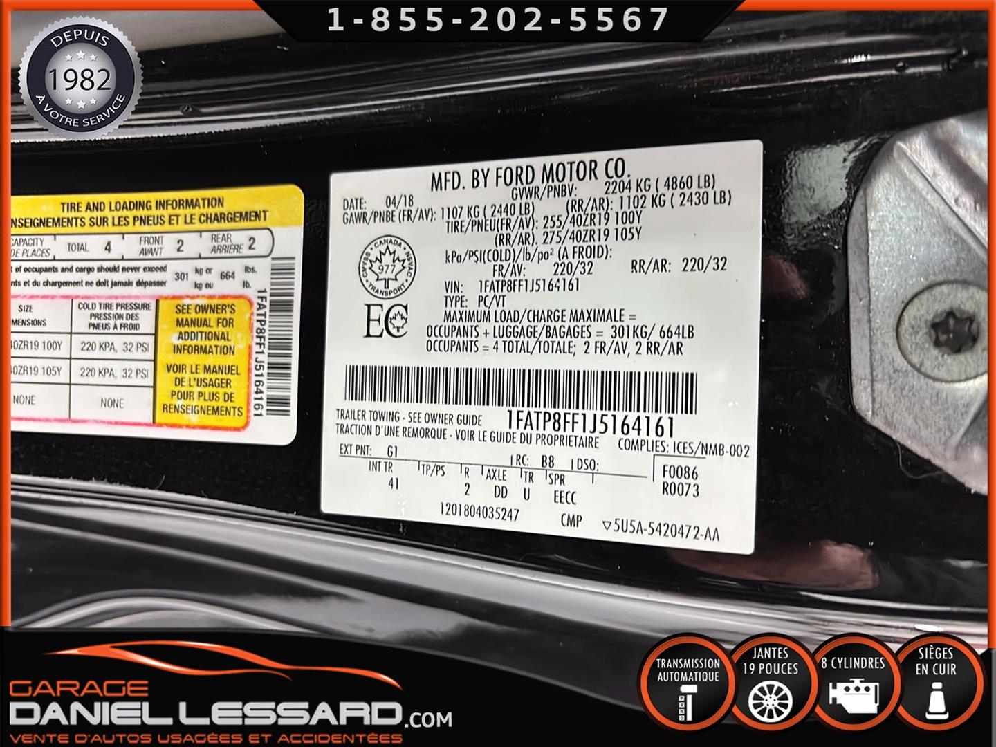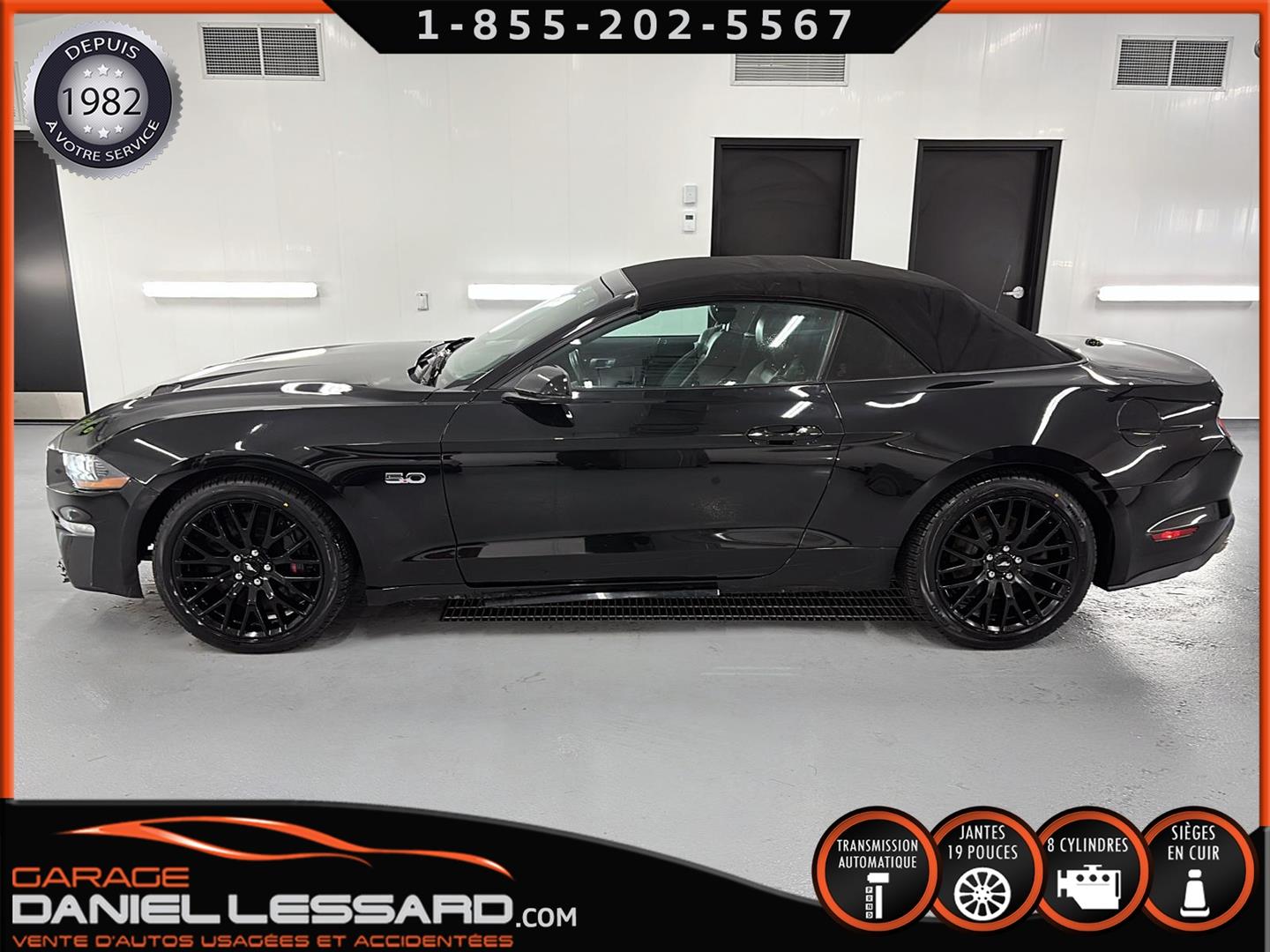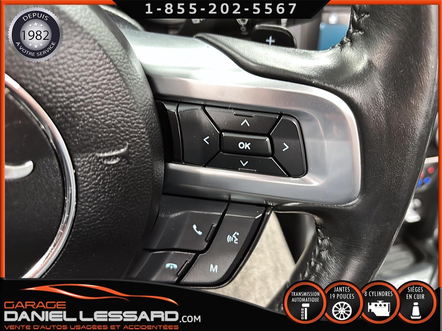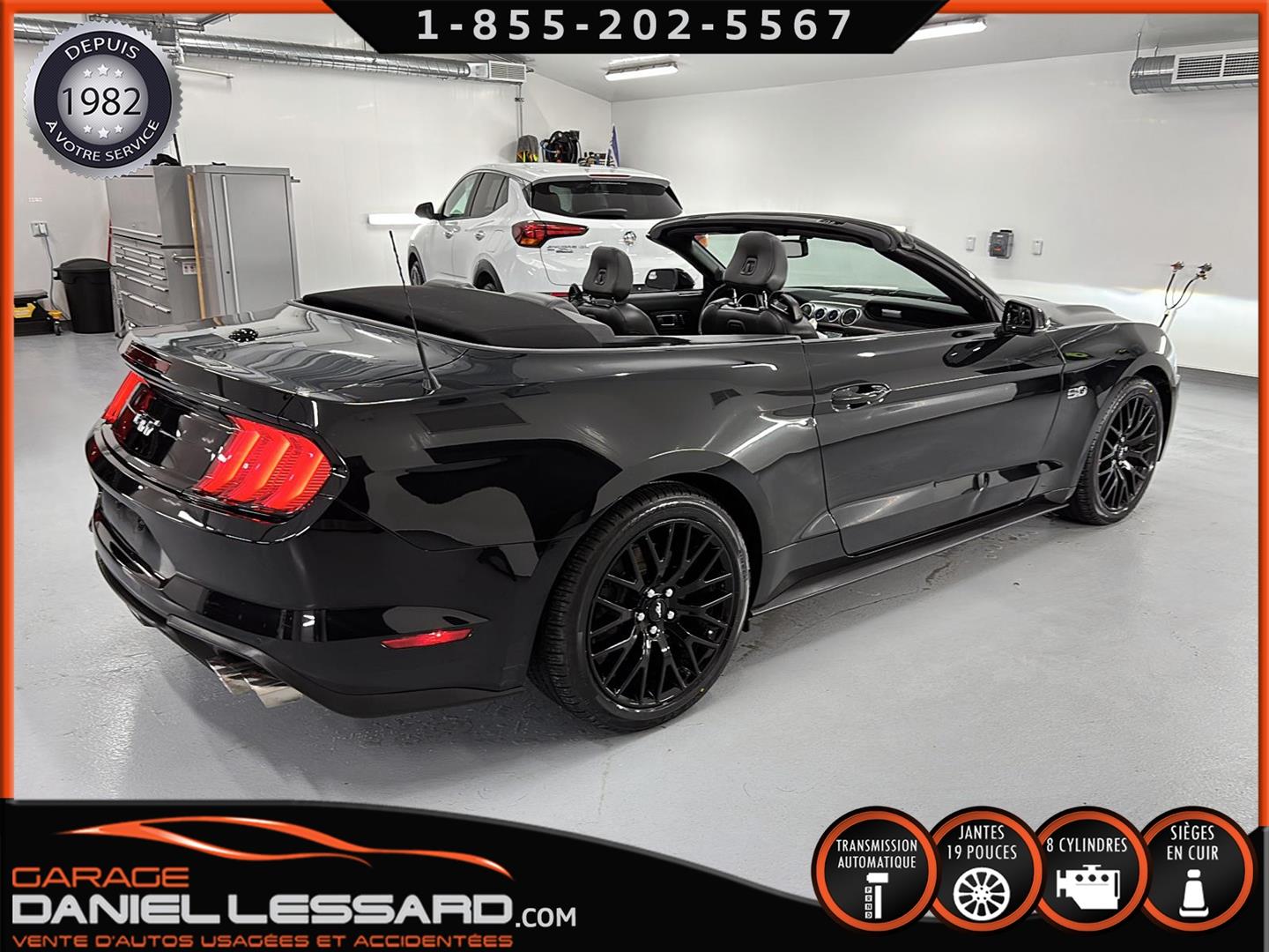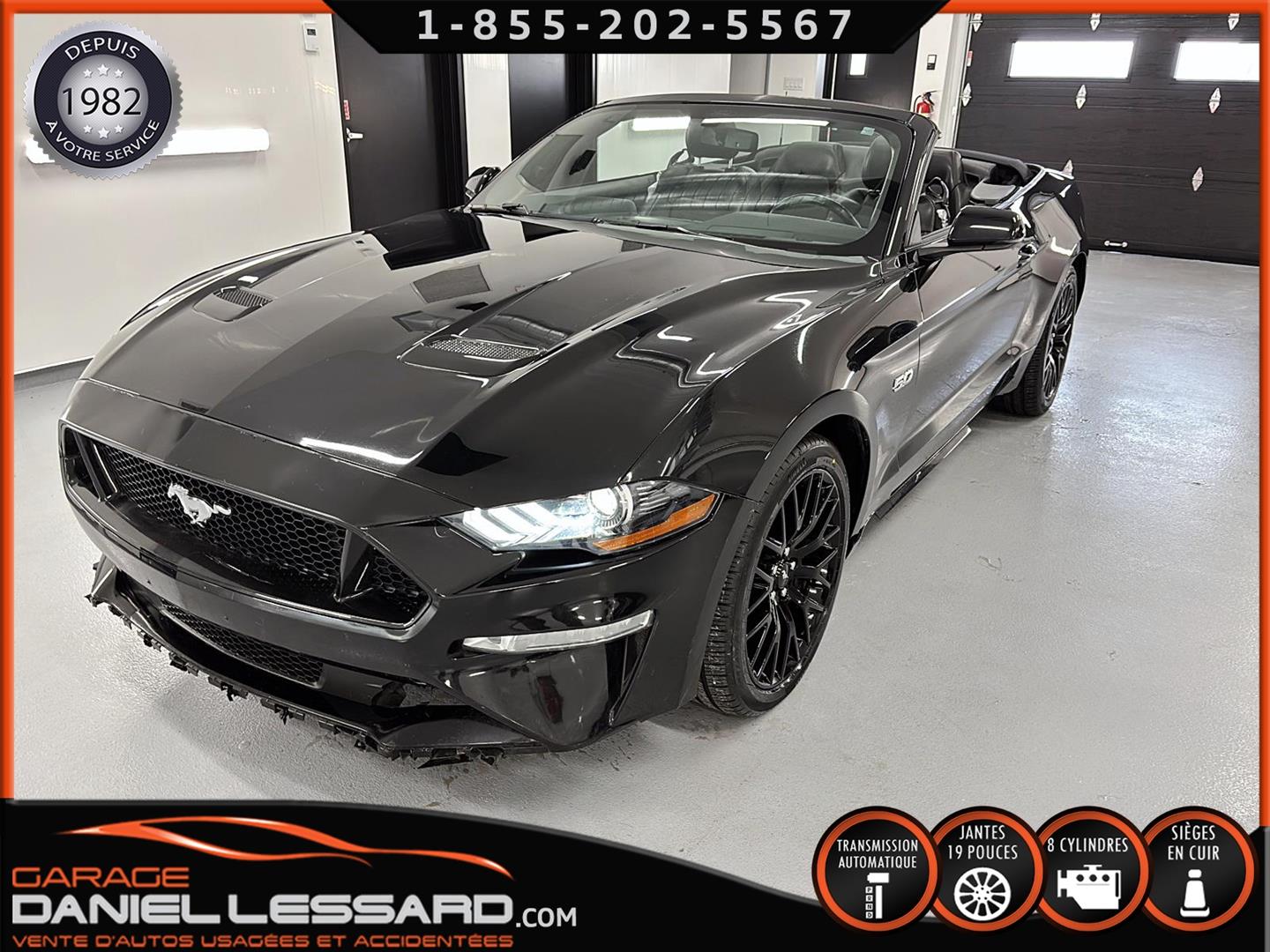 FORD MUSTANG GT PREMIUM AVEC LE PACK PERFORMANCE QUI OFFRE UN SPLITTER AVANT UNIQUE, UNE BARRE ANTI-RAPPROCHEMENT PEINTE EN ARGENT, UN RADIATEUR PLUS GRAND, UNE BARRE ANTIROULIS ARRIÈRE RENFORCÉE, DES RESSORTS AVANT RENFORCÉS, UN RÉGLAGE DE CHÂSSIS UNIQUE, UN RENFORT DE BERCEAU MOTEUR, DES ÉTRIERS DE FREINS AVANT BREMBO, DES JANTES EN ALUMINIUM PEINTES EN NOIR ÉBÈNE DE 19" X 9" À L'AVANT ET DE 19" X 9,5" À L'ARRIÈRE AVEC DES PNEUS ÉTÉ 255/40R19 À L'AVANT ET 275/40R19 À L'ARRIÈRE, MONTÉS SUR DES PIRELLI PZERO AS-PLUS NEUFS, UNE DIRECTION À ASSISTANCE ÉLECTRIQUE UNIQUE, UN RÉGLAGE ABS ET UN CONTRÔLE ÉLECTRONIQUE DE STABILITÉ, DES GARNITURES DE TABLEAU DE BORD EN ALUMINIUM BROSSÉ, ENSEMBLE DE JAUGES (PRESSION D'HUILE ET DÉPRESSION), DIFFÉRENTIELS À ENGRENAGES HÉLICOÏDAUX AUTOMATIQUES TORSEN 3.55, SIÈGES AVANT GARNIS DE CUIR, SIÈGES AVANT CHAUFFANTS ET VENTILÉS, MODES DE CONDUITE SÉLECTIONNABLES AVEC BLOC DE 4 INTERRUPTEURS À BASCULE (NORMAL, SPORT+, CIRCUIT, DRAG STRIP, NEIGE/PLUIE), CLIMATISATION AUTOMATIQUE ÉLECTRONIQUE BIZONE, EXHAUST MBRP AVEC RESONATEUR DELETE, DEUX CLÉS AVEC LE MANUEL DU PROPRIÉTAIRE
