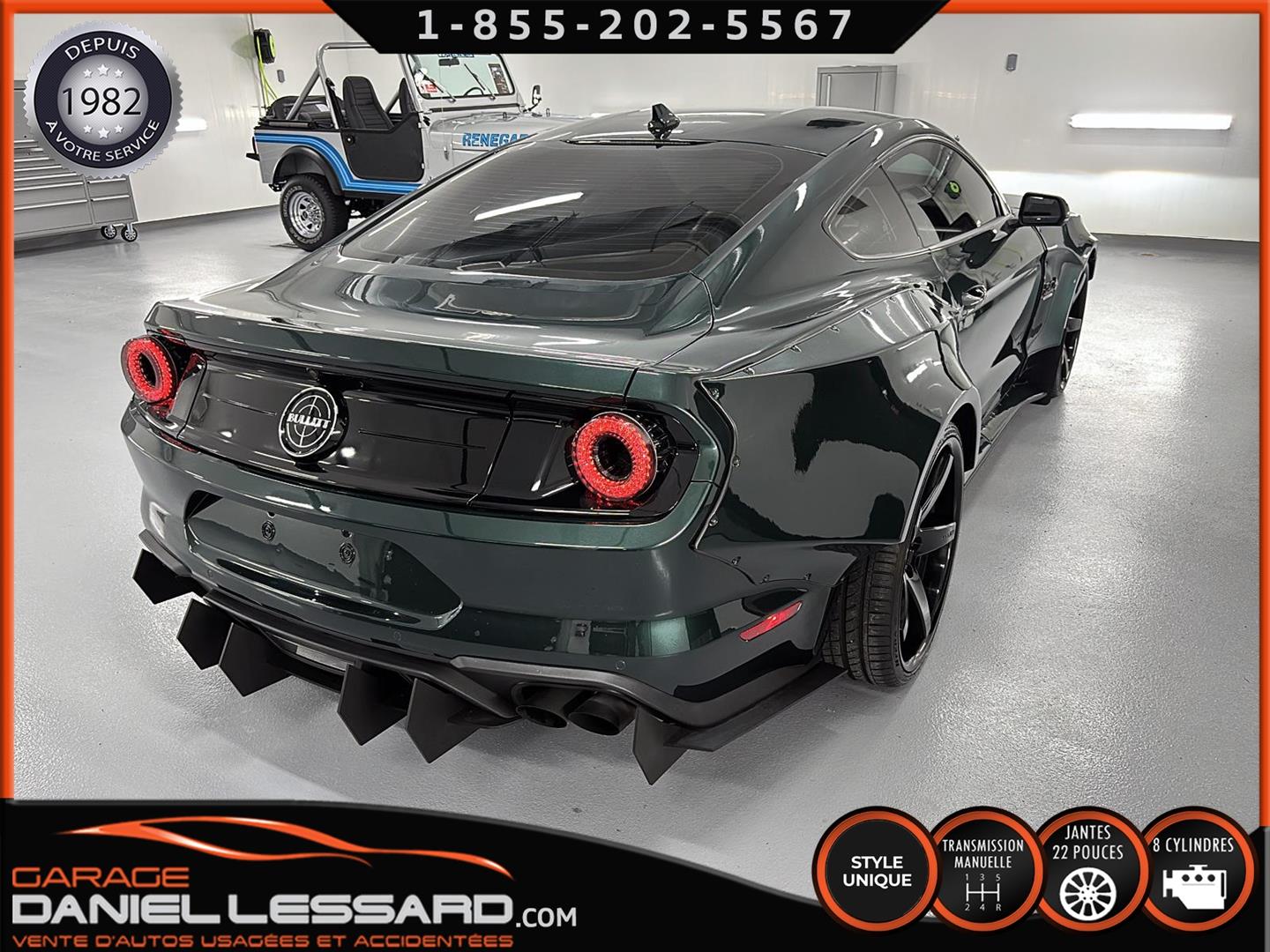 FORD MUSTANG BUILLITT FASTBACK 2020, ENSEMBLE CUSTOM WIDEBODY 9 POUCES À L'AVANT ET 10 POUCES À L'ARRIÈRE, VÉHICULE MODIFIER FAIT SUR MESURE PAR CHRISTIAN VIGNEAULT LE SEUL ET L'UNIQUE AU MONDE, PUISSANT ET LÉGENDAIRE MOTEUR COYOTE5.0 LITRES V-8 AVEC L’AJOUT DU SUPERCHARGER WHIPPLE MODEL D-231-69 3.0L STAGE 2 SUPERCHARGER KIT QUI DÉVELOPPE 825 HP ET 655 LB-FT TORQUE AU GAZ DE POMPE 93, TRANSMISSION MANUELLE 6 VITESSES, FREINS BREMBO HAUTE PERFORMANCE DU SHELBY GT350, VITRES TEINTÉS, HOOD CERVINI, LUMIERE ARRIRE STYLE GT40, MAGS ASANTI BLACK LABEL, 22" DE TOUTE BEAUTÉ SUR PNEUS D'ÉTÉ NEXEN 295/25/22 AU 4 COIN, PNEUS ARRIERE NEUF, LOOK UNIQUE AU MONDE, AUCUNE MENTION SUR L'IMMATRICULATION, PAS VGA, NOUS AVONS UNE SEULE CLÉ EN MAIN, LE VÉHICULE À ÉTÉ ENTIÈREMENT INSPECTÉ PAR NOUS SUR PLACE ET PAR LE CONCESSIONNAIRE FORD DE NOTRE RÉGION TOUS LES ENTRETIENS SONT À JOUR, GARANTIE LÉGALE DE 3 MOIS / 5000 KM DE NOTRE PART, POSSIBILITÉ DE GARANTIE PROLONGÉE, VÉHICULE À VOIR. DISPONIBLE DÈS MAINTENANT. BEAUCOUP D'AJOUTS CUSTOM UNIQUE ET SURTOUT ÉNORMÉMENT DE TEMPS INVESTI.