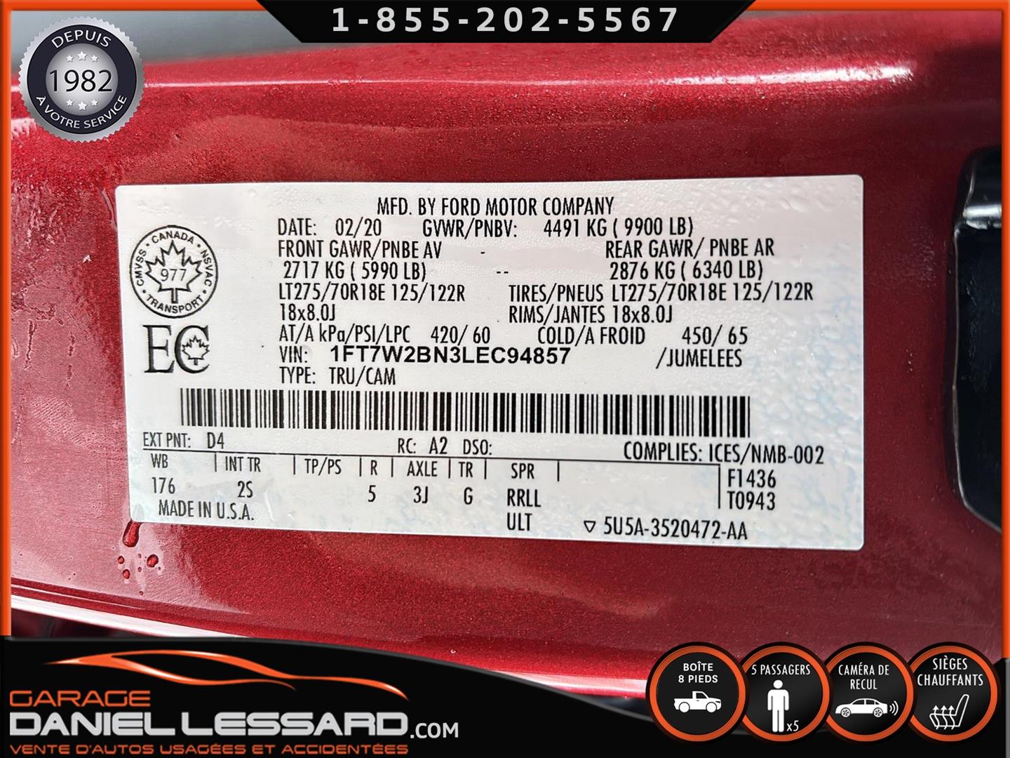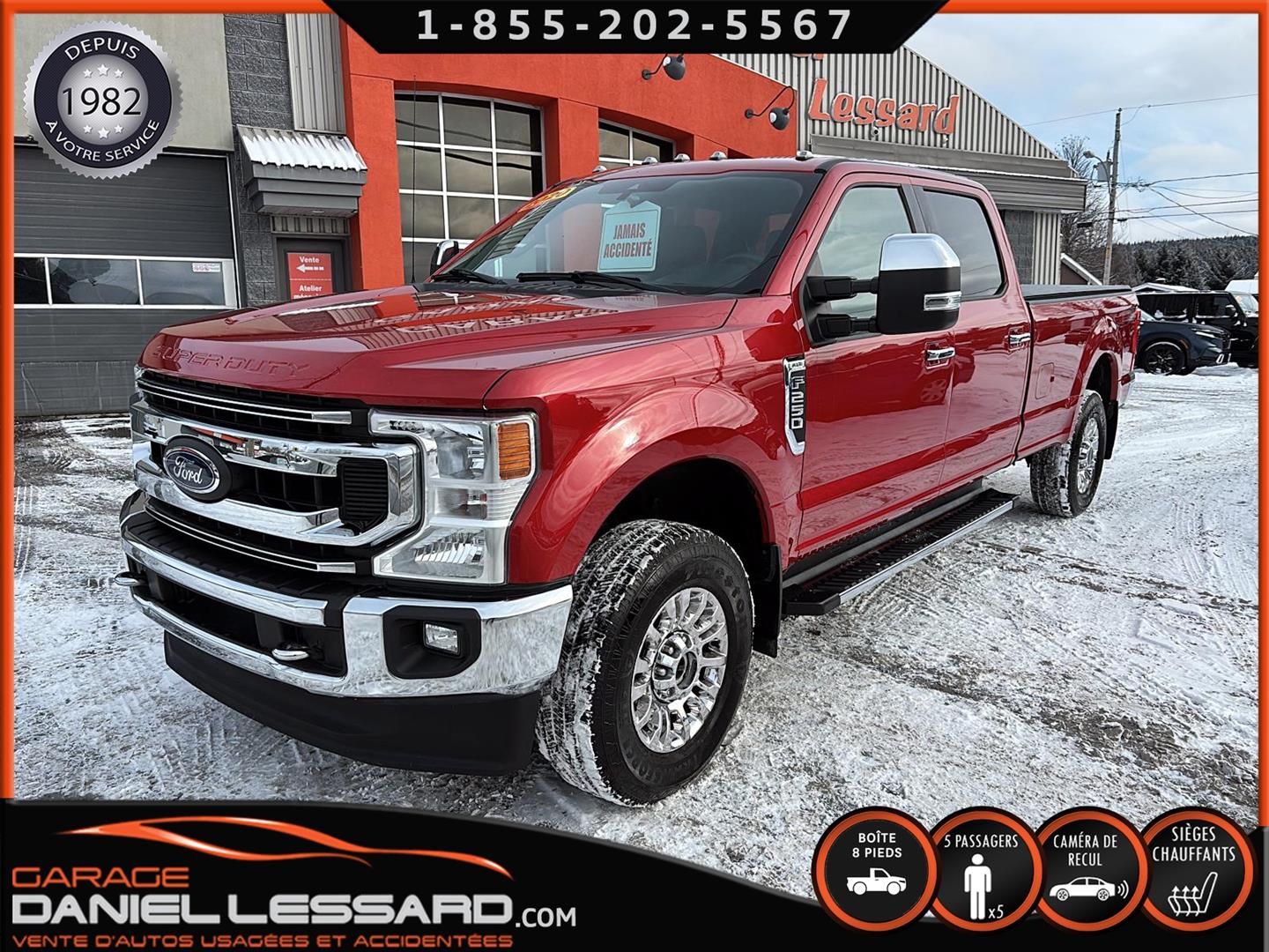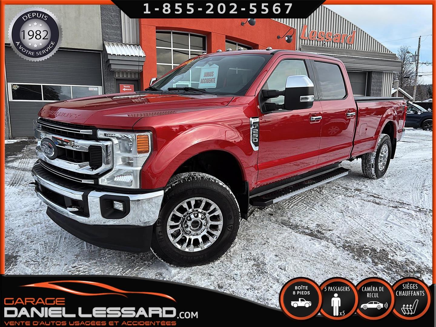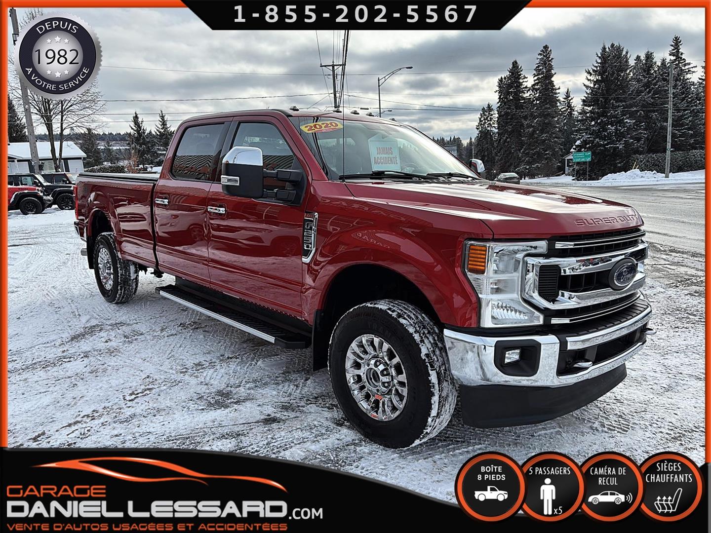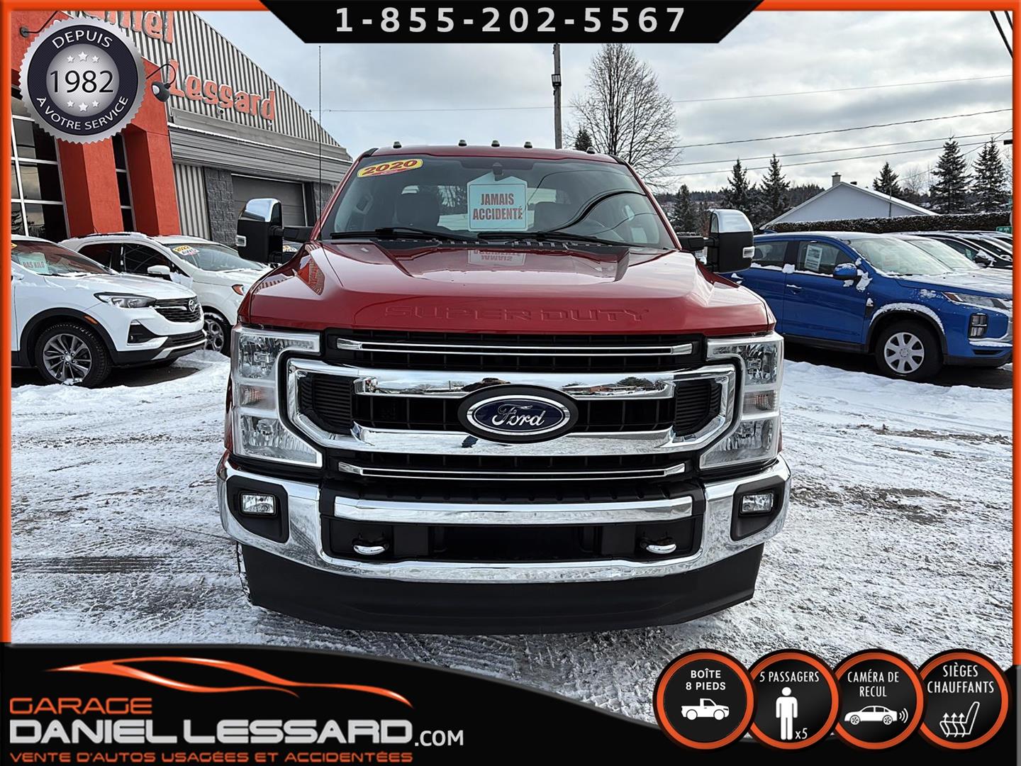 SUPERBE FORD F-250 XLT 2020 DE COULEUR D4 RAPID RED METALLIC TINTED COLOR AVEC 34600 KM AU COMPTEUR, PNBV DE 4491KG , 4X4, PUISSANT MOTEUR A ESSENCE GODZILLA 7,3 LITRES V-8, TRANSMISSION AUTOMATIQUE A 10 RAPPORTS, RATIO DE 3J UN 3,55, EDITION CREWCAB AVEC LES 4 GRANDES PORTES ET LA LONGUE BOITE DE 8 PIEDS AVEC LE TAIL GATE STEP, FOND DE BOITE EN ENDUIT AVEC ENSEMBLE DE PRÉAMÉNAGEMENT POUR L'INSTALLATION DE L'ENSEMBLE D'ATTELAGE DE REMORQUE DECOMPAGNIE ET TOILE SOUPLE SUR BOITE, INTERIEUR EN TISSUS GRIS, CONSOLE DU CENTRE FIXE CAMION A 5PLACES , SIEGE CONDUCTEUR ÉLECTRIQUE, SIEGE AVANT CHAUFFANT, VITRES ET MIROIRS ÉLECTRIQUE, CAMERA DE RECUL, SONAR DE RECUL, RADIO AM / FM, AIR CLIMATISÉ, GROUPE REMORQUAGE, AIDE A URECUL, BRAKE CONTRÔLE FREINS ÉLECTRIQUE D'ORIGINE, MIROIR AVEC ANGLE MORT, FILAGE 4 ET 7 BRINS, GRANDS MIROIRS DE REMORQUAGE EXTENSIBLE, PREAMENAGER POUR SELETTE, MULTIPLE PRISE AUX AU PLAFOND, PRISES 12 V / 110 V / USB, COMMANDE MONTÉ AU VOLANT AVEC BLUETOOTH, COMMANDE VOCAL, CONTRÔLE AUDIO ET PLUS ENCORE, CHAUSSÉ SUR PNEUS LT FIRESTONE TRANSFORCE HT2 LT275 / 70 / 18 MONTÉ SUR ROUES D'ORIGINE, FOND DE PLANCHER EN TISSUS AVEC TAPIS DE CAOUTCHOUC, MARCHE PIED TUBULAIRE FORD, NOUS AVONS EN MAIN 2 CLEF, DISPONIBLE DÈS MAINTENANT A VOIR SANS FAUTE.