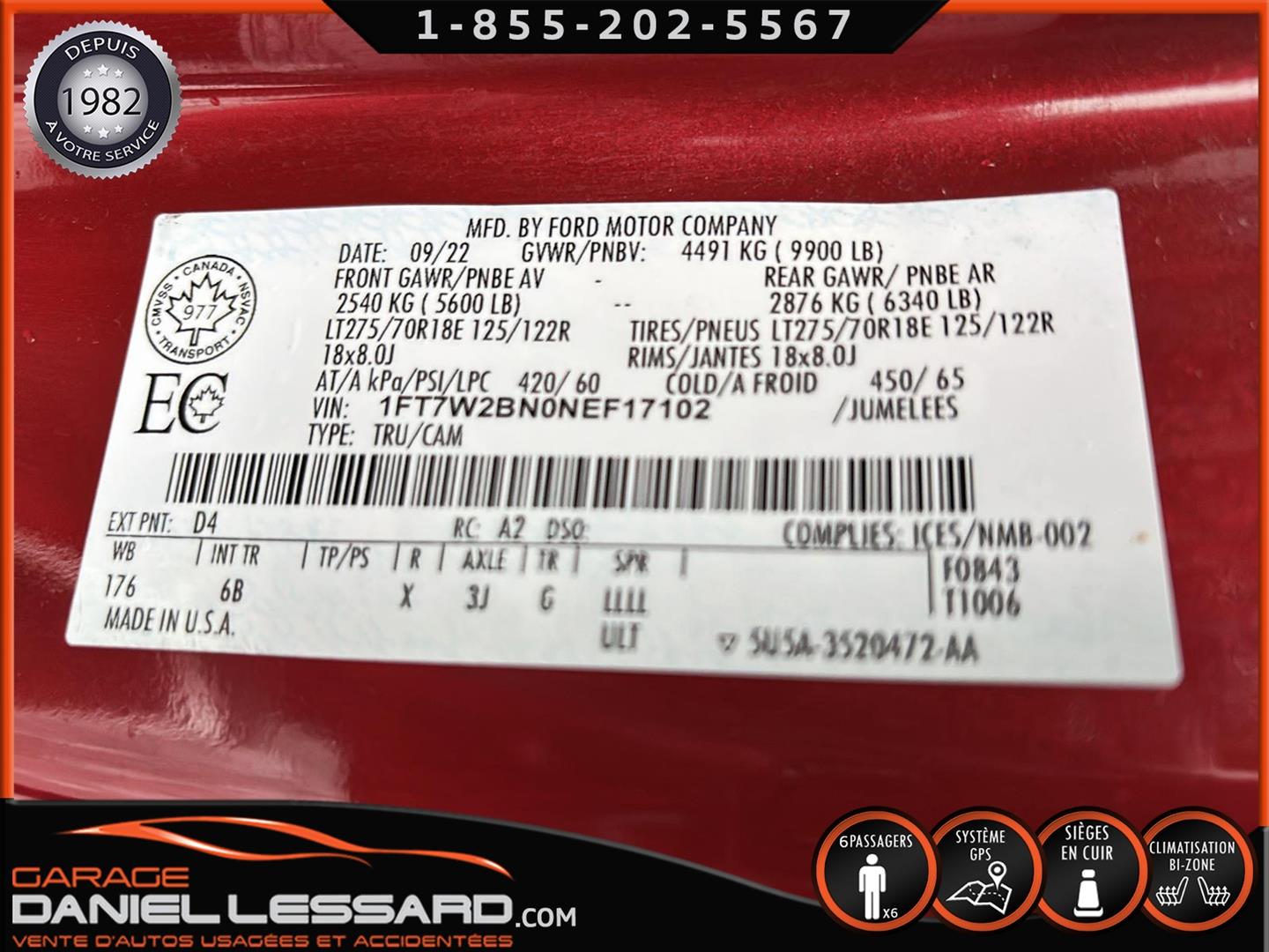 FORD F-250 CREW CAB 4 X 4 ** LARIAT ** 2022, BOITE DE 8 PIEDS, MOTEUR 7.3 LITRES AU GAZ, INTÉRIEUR EN CUIR, 6 PLACES, BANC AVANT ÉLECTRIQUE CHAUFFANT ET CLIMATISÉ, NAVIGATION, CAMERA, PÉDALIER AJUSTABLE, CONTROL AUDIO, TÉLÉPHONIQUE ET CRUISE CONTROL AU VOLANT, LUMIÈRE A BRUME, CLIMATISATION 2 ZONES, MAGS AVEC PNEU D'HIVER NOKIA LT 275 / 70 / 18 AVEC 50%, MIRROIR REMORQUAGE, GROUPE REMORQUAGE, GARDE BOUE, BACK GLASS COULISSANTE, 1 SEUL CLÉ ET MANUEL DU PROPRIÉTAIRE
