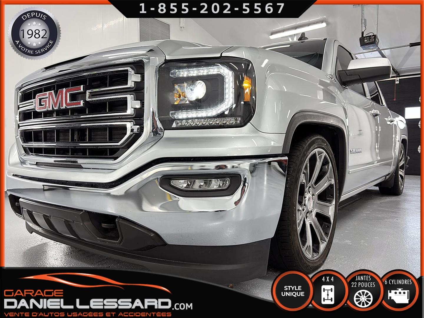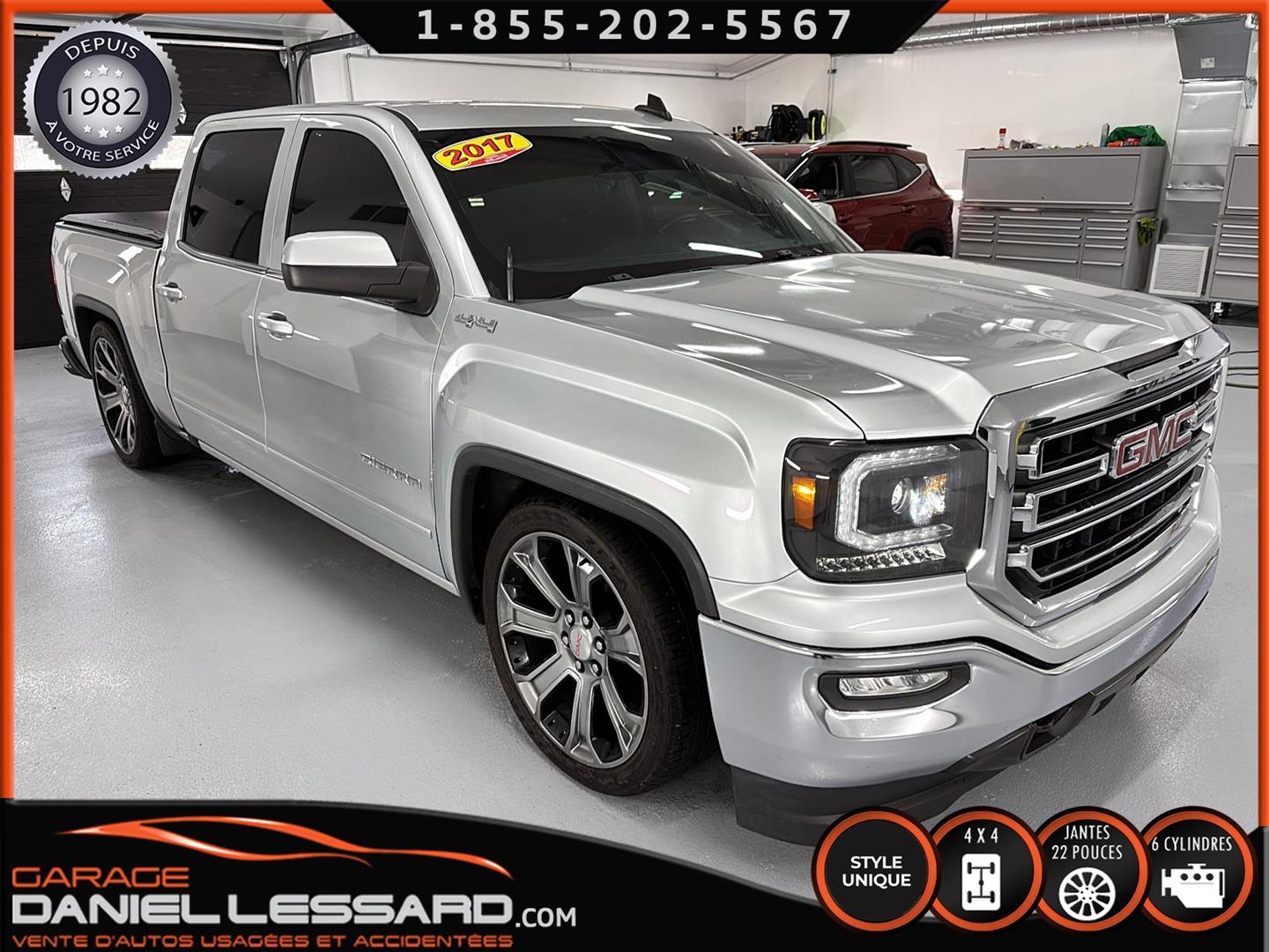 GMC SIERRA 1500 SLE 2017, ***LOW RIDER***, COULEUR SWITCHBLADE SILVER METALIC, DROPPER 4" À L'AVANT ET 6" À L'ARRIÈRE, KIT COMPLET DE MARQUE DJM SUSPENSION, VITRE TEINTER, CREWCAB AVEC UNE BOITE DE 5'8", MAG 22" SUR PNEUS ZETA IMPERO 275/40/22, SYSTÈME DE NAVIGATION, CHARGEUR SANS FILS, HOMELINK, BLUETOOTH, TAPIS WEATHER TECH, TOILE SOUPLE, CLIMATISATION BIZONE, SIÈGES CHAUFFANT À L'AVANT, NOUS AVONS LES DEUX CLÉS, CAMION PRÊT À PARTIR.