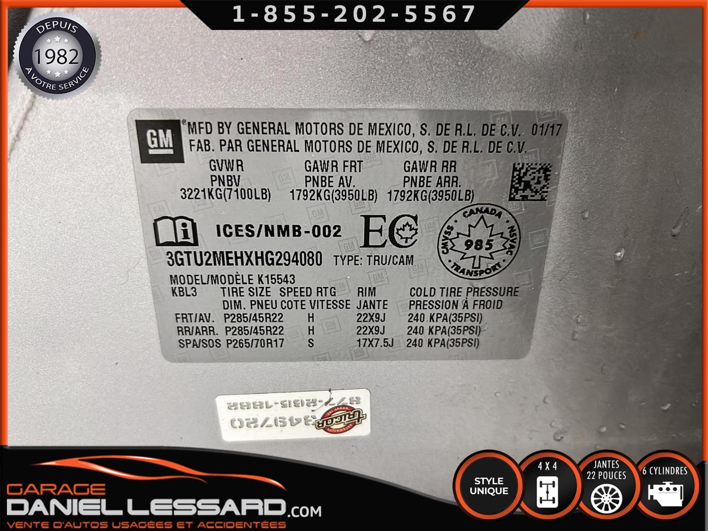 VRAIMENT TRÈS BEAU CAMION REPRIS EN ÉCHANGE, AYANT DÉJÀ ÉTÉ LÉGÈREMENT ACCIDENTÉ INDIQUE * RECONSTRUIT * (VOIR LES PHOTOS AVANT RÉPARATION) . IL A ÉTÉ ENTIÈREMENT INSPECTÉ PAR LA SAAQ ET PAR NOUS À SONT ARRIVER SUR PLACE, IL VIENT AVEC UNE GARANTIE DE 1 MOIS/ 1700 KM DE NOTRE PART. CHANGEMENT D'HUILE A ÉTÉ EFFECTUÉ ET TOUS LES ENTRETIENS SONT À JOUR, EN EXCELLENTE CONDITION, NE RESTERA PAS LONGTEMPS DISPONIBLE
