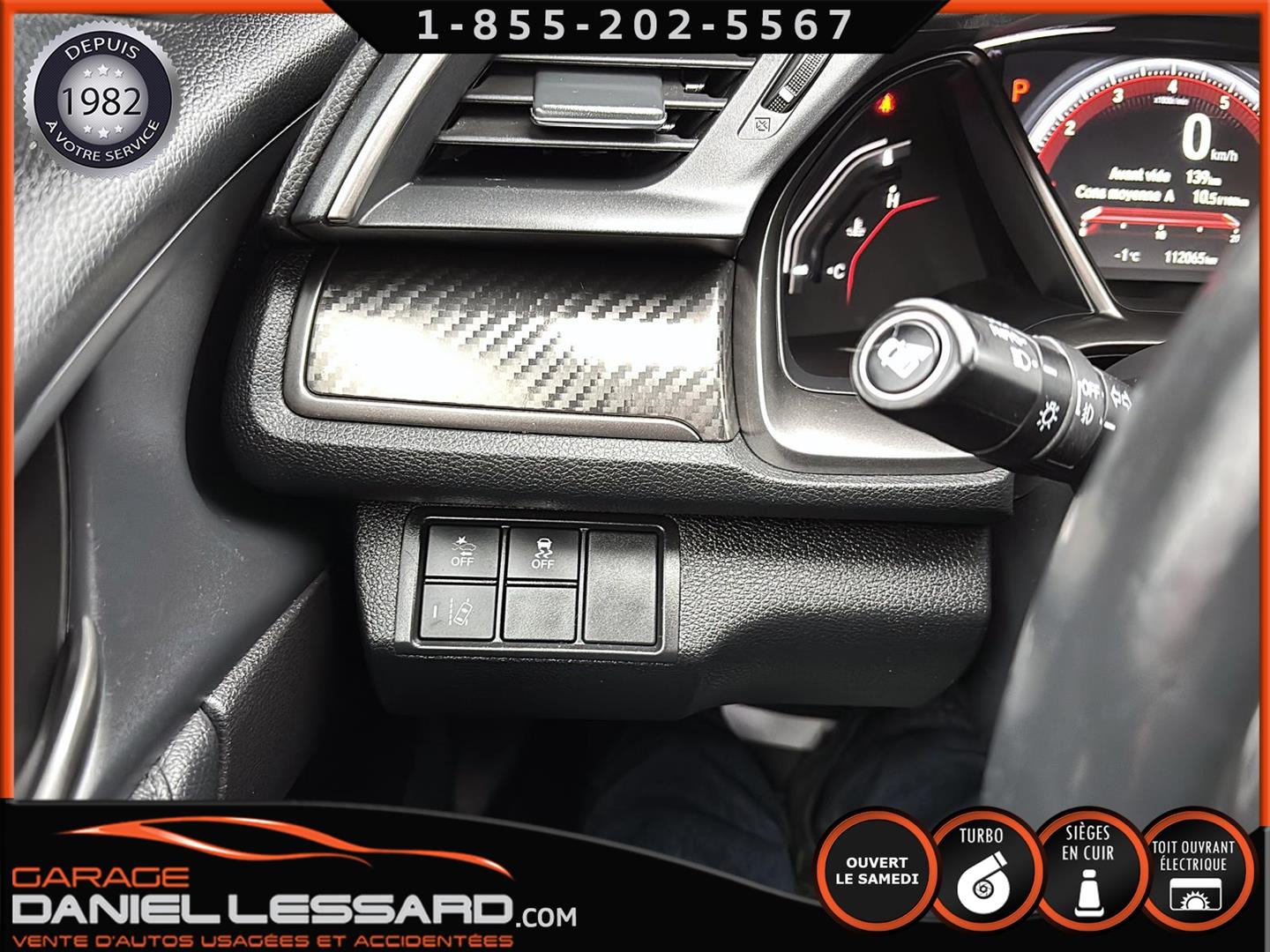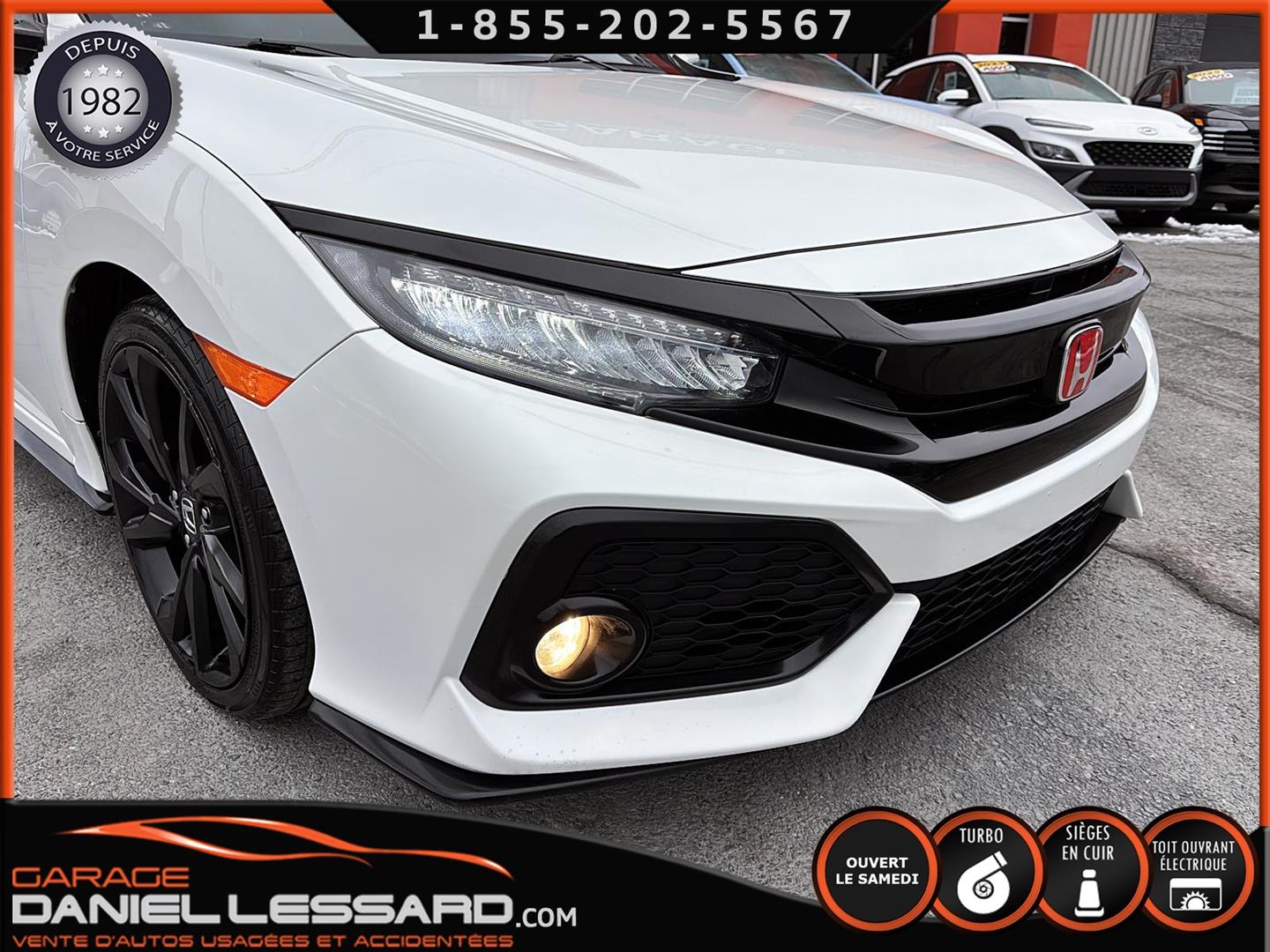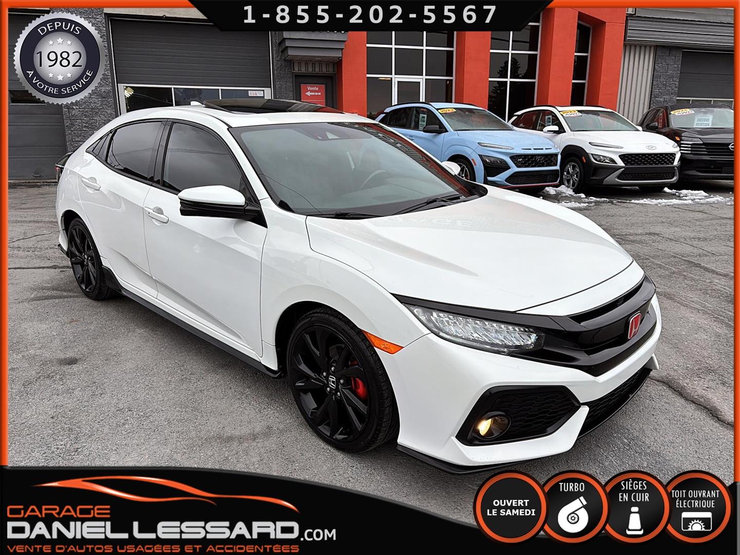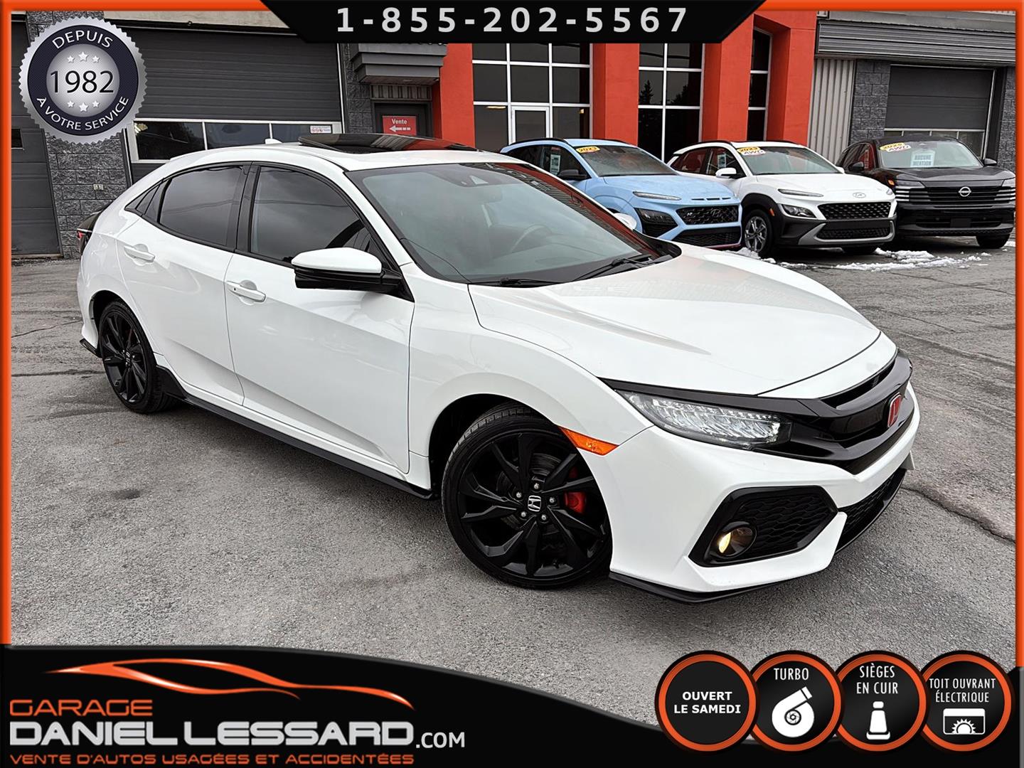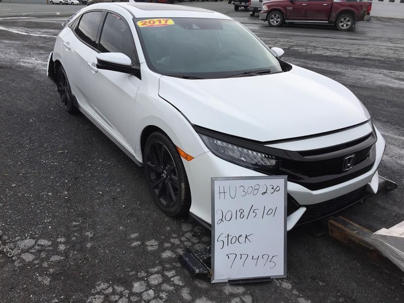 HONDA CIVIC 4 PORTES À HAYON HBK *SPORT TOURING* 2017, BLANC PERLE, TRANSMISSION AUTOMATIQUE AVEC PADDLE SHIFT AU VOLANT, TOIT OUVRANT, MOTEUR 1.5 LITRES TURBO, INTÉRIEUR EN CUIR AVEC BANC AVANT ET ARRIÈRE CHAUFFANT, LES 2 SIÈGES AVANT SONT ÉLECTRIQUES, LE SIÈGE CONDUCTEUR À 8 RÉGLAGES ET PASSAGER AVANT À 4 RÉGLAGES, SYSTÈME DE NAVIGATION GPS D'ORIGINE, RADIO SATELLITE XM, CAMÉRA DE RECUL ET ANGLE MORT, ÉCRAN TACTILE, SYSTÈME D'ALERTE COLLISION ET ASSISTANCE AU FREINAGE, SYSTÈME D'AVERTISSEMENT DE CHANGEMENT DE VOIE, RÉTROVISEUR ÉLECTROCHIMIQUE, CLIMATISATION 2 ZONES DIGITALE, PHARE AVANT AU DEL, LUMIÈRE À BRUME, PORT USB ET AUXILIAIRE, MODE ÉCO, TRACTION CONTROL, DÉMARRAGE À BOUTON POUSSOIR, SYSTÈME APPLE CARPLAY / ANDROID AUTO, CONNECTIVITÉ WI – FI, RECHARGE SANS FIL POUR APPAREIL COMPATIBLE, RAIN SENSOR, CRUISE ADAPTATIF MONTÉ AU VOLANT, VITRES TEINTÉES, MOULURE DE BAS DE PORTE ET JUPE NOIR PEINTES, MAGS AVEC PNEU D'ÉTÉ MOMO M3 225 / 40 / 18 USÉE A 50%, AILERON, VITRE TEINTÉ, 1 CLÉ INTELLIGENTE AVEC DÉMARREUR À DISTANCE ** LES MAGS ONT ÉTÉ REPEINT, PETITE IMPERFECTION AU PARE CHOC ARRIERE **