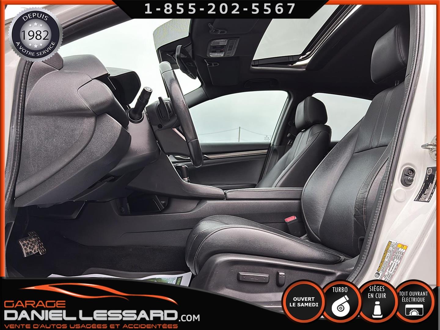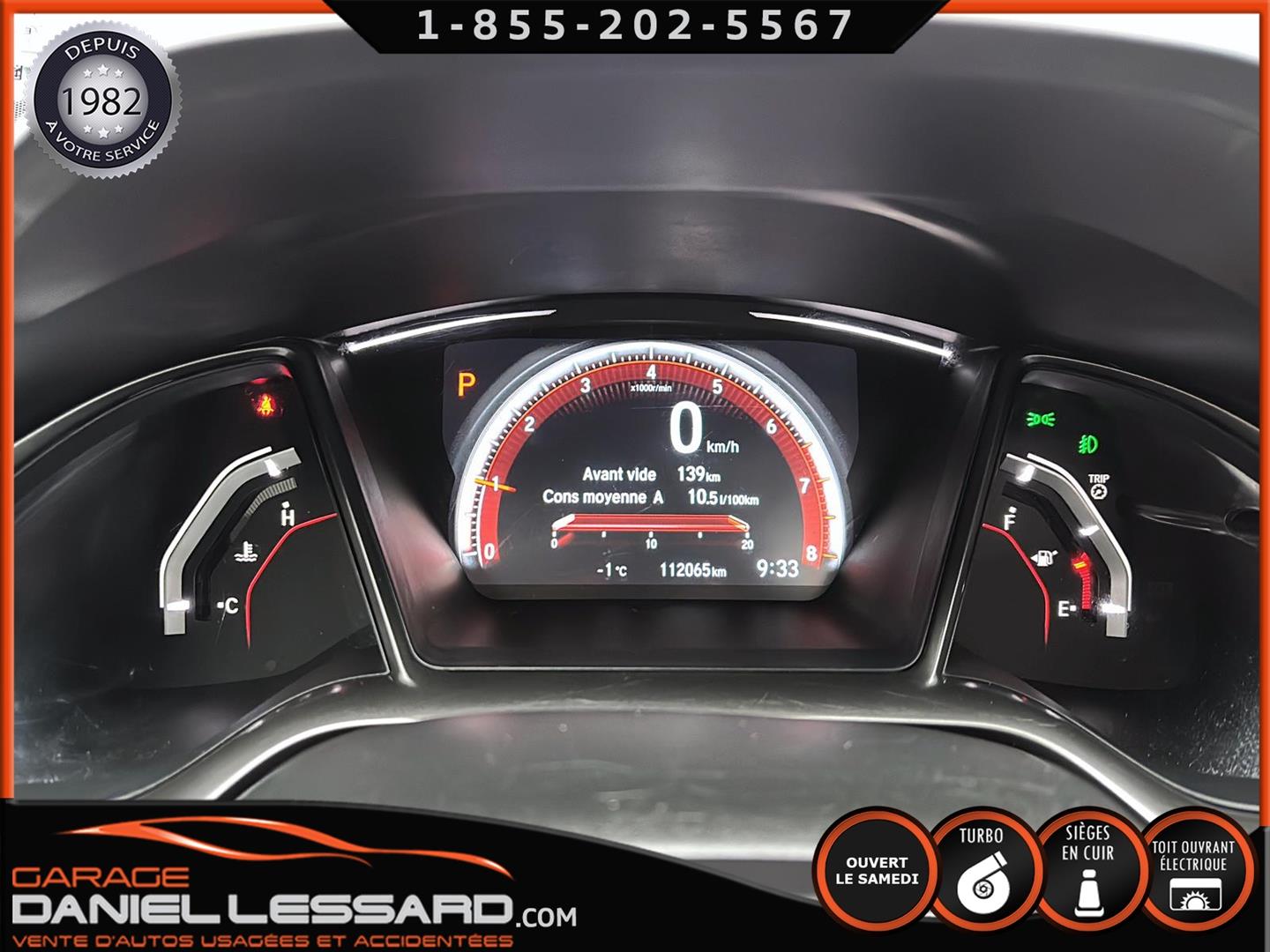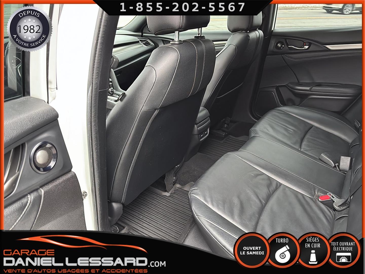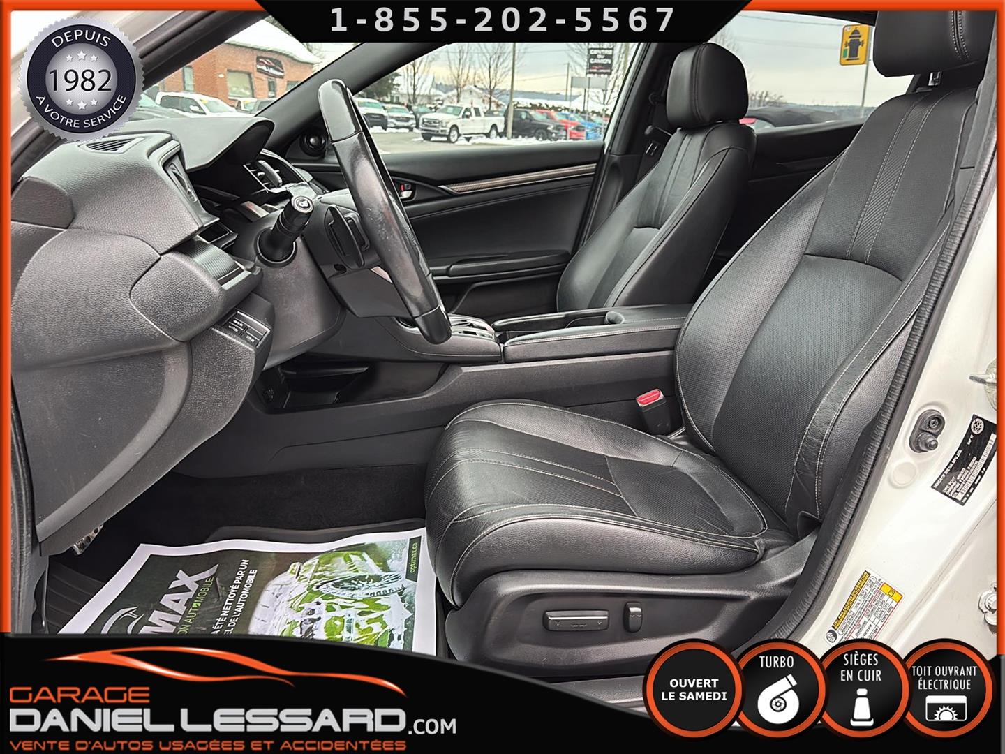 HONDA CIVIC 4 PORTES À HAYON HBK *SPORT TOURING* 2017, BLANC PERLE, TRANSMISSION AUTOMATIQUE AVEC PADDLE SHIFT AU VOLANT, TOIT OUVRANT, MOTEUR 1.5 LITRES TURBO, INTÉRIEUR EN CUIR AVEC BANC AVANT ET ARRIÈRE CHAUFFANT, LES 2 SIÈGES AVANT SONT ÉLECTRIQUES, LE SIÈGE CONDUCTEUR À 8 RÉGLAGES ET PASSAGER AVANT À 4 RÉGLAGES, SYSTÈME DE NAVIGATION GPS D'ORIGINE, RADIO SATELLITE XM, CAMÉRA DE RECUL ET ANGLE MORT, ÉCRAN TACTILE, SYSTÈME D'ALERTE COLLISION ET ASSISTANCE AU FREINAGE, SYSTÈME D'AVERTISSEMENT DE CHANGEMENT DE VOIE, RÉTROVISEUR ÉLECTROCHIMIQUE, CLIMATISATION 2 ZONES DIGITALE, PHARE AVANT AU DEL, LUMIÈRE À BRUME, PORT USB ET AUXILIAIRE, MODE ÉCO, TRACTION CONTROL, DÉMARRAGE À BOUTON POUSSOIR, SYSTÈME APPLE CARPLAY / ANDROID AUTO, CONNECTIVITÉ WI – FI, RECHARGE SANS FIL POUR APPAREIL COMPATIBLE, RAIN SENSOR, CRUISE ADAPTATIF MONTÉ AU VOLANT, VITRES TEINTÉES, MOULURE DE BAS DE PORTE ET JUPE NOIR PEINTES, MAGS AVEC PNEU D'ÉTÉ MOMO M3 225 / 40 / 18 USÉE A 50%, AILERON, VITRE TEINTÉ, 1 CLÉ INTELLIGENTE AVEC DÉMARREUR À DISTANCE ** LES MAGS ONT ÉTÉ REPEINT, PETITE IMPERFECTION AU PARE CHOC ARRIERE **